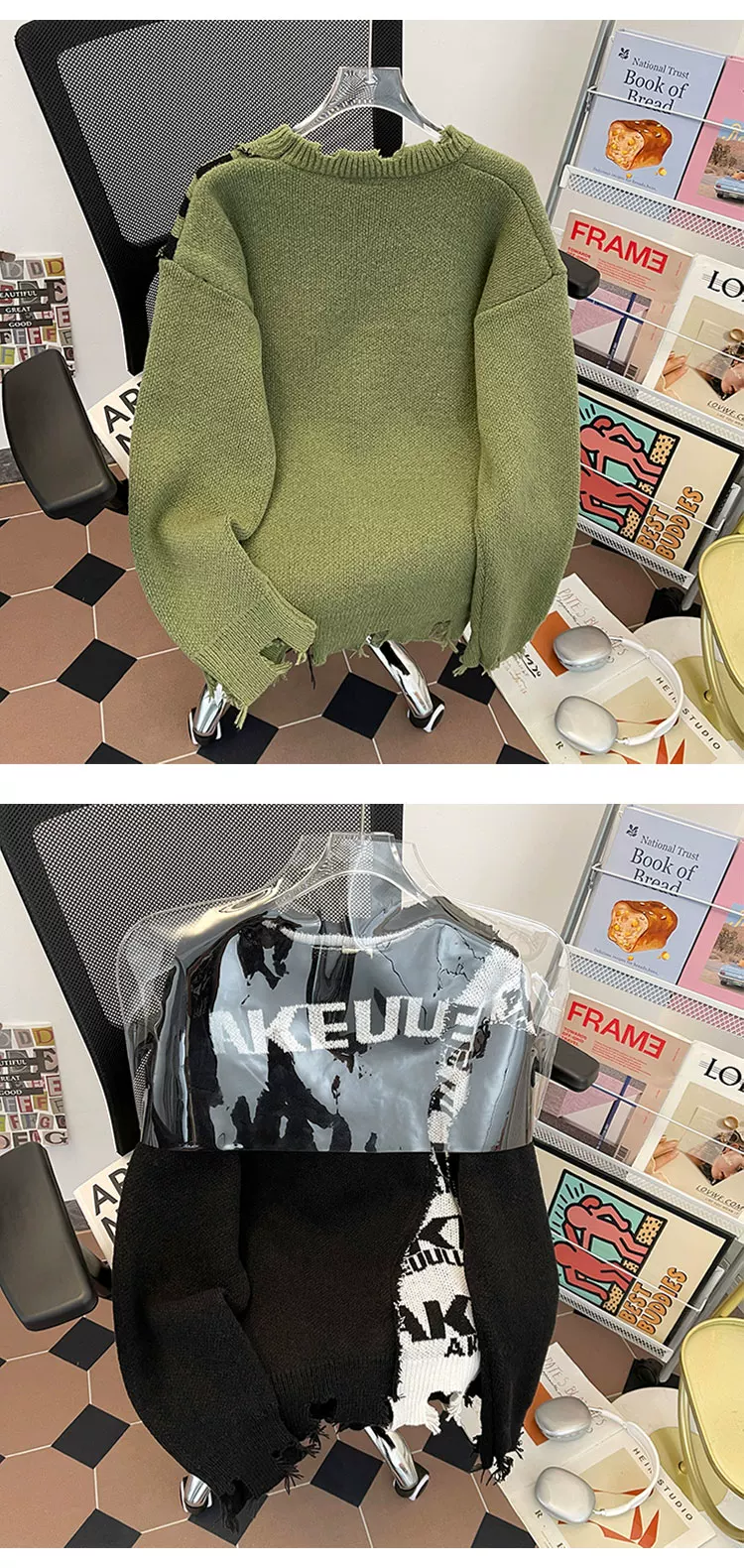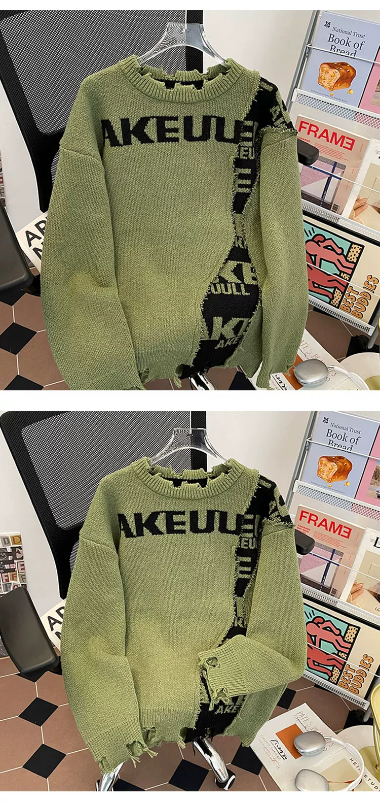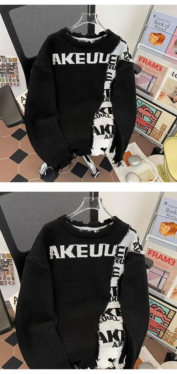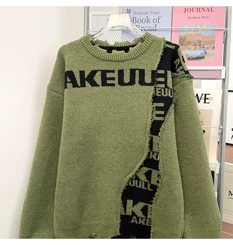 - Áo len nam phối màu chắp vá phong cách bụi bặm, áo len cổ tròn dáng rộng thời thượng thu đông, áo len chui đầu kiểu Mỹ thoải mái.