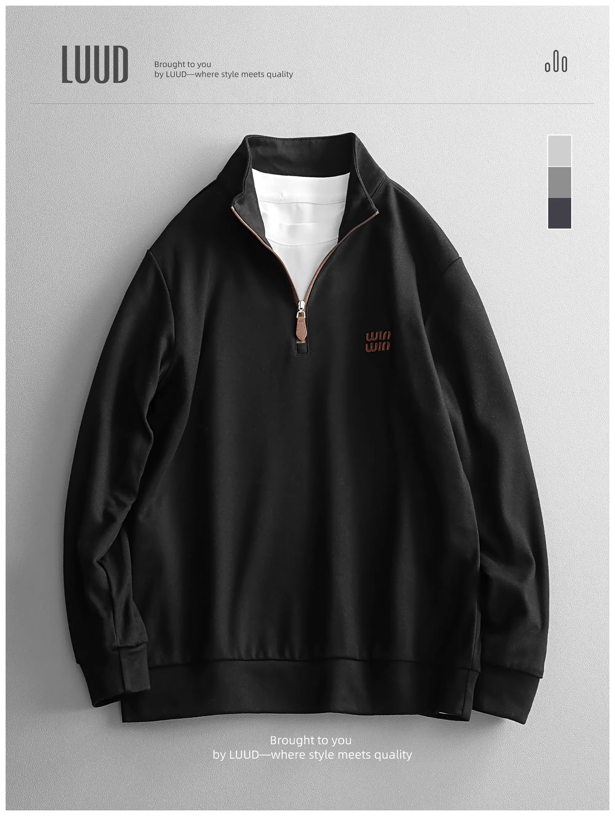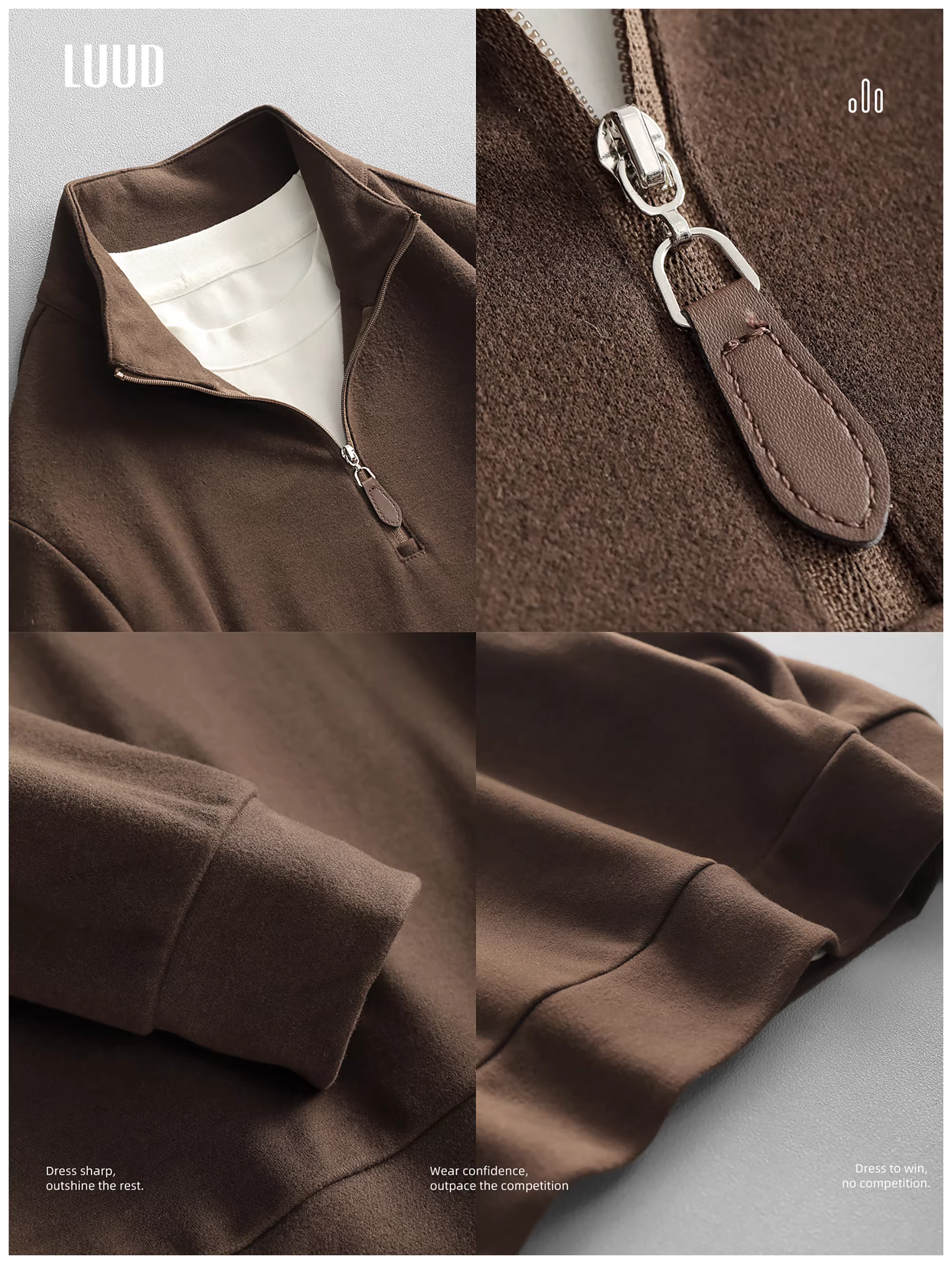 - Áo len nửa khóa kéo cao cấp LUUD chất liệu nhung giữ nhiệt dành cho nam, mẫu mới 2025, kiểu dáng ôm body, thời trang, thương hiệu nổi tiếng, cổ đứng.
