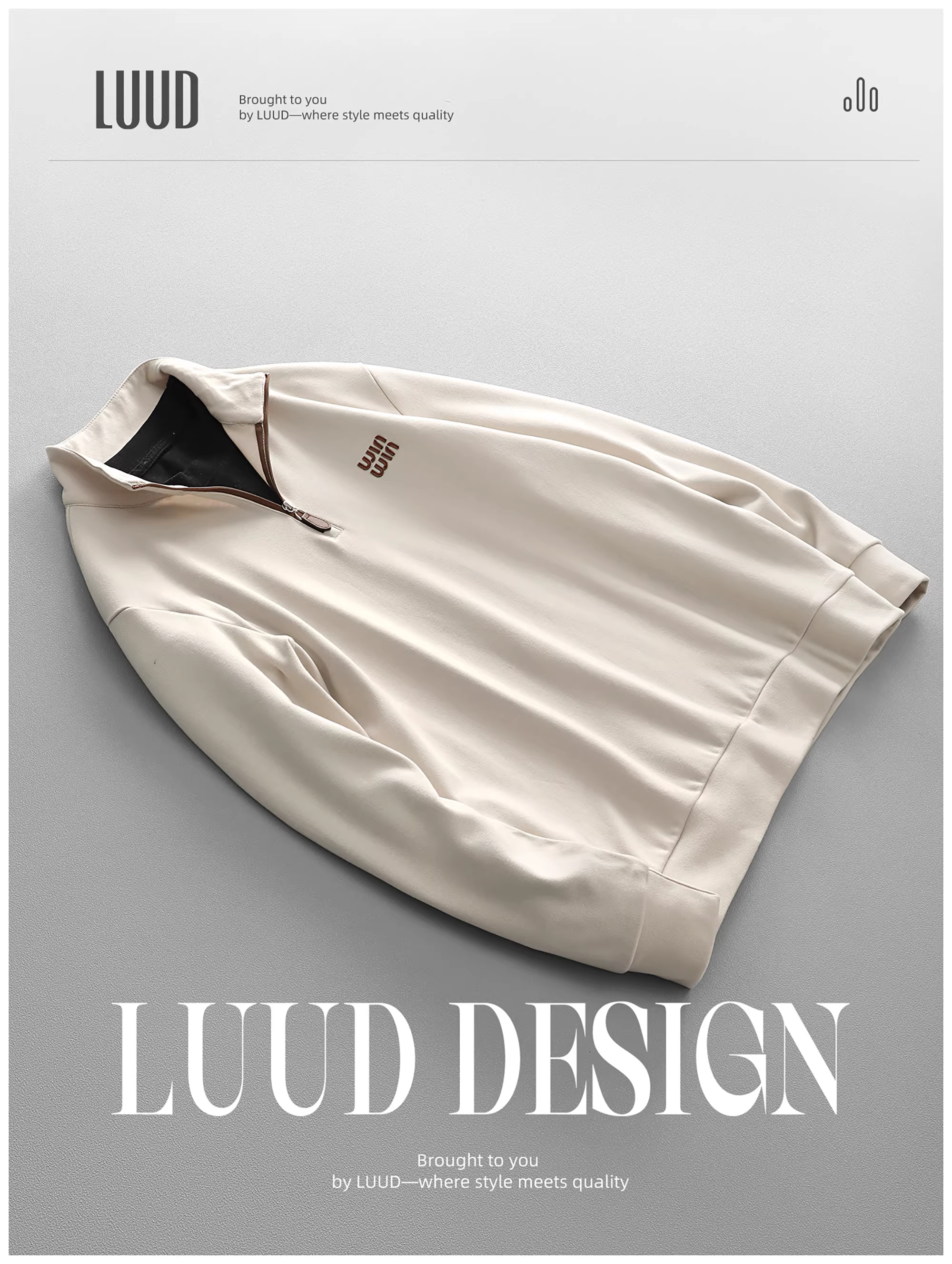 Áo len nửa khóa kéo cao cấp LUUD chất liệu nhung giữ nhiệt dành cho nam, mẫu mới 2025, kiểu dáng ôm body, thời trang, thương hiệu nổi tiếng, cổ đứng.