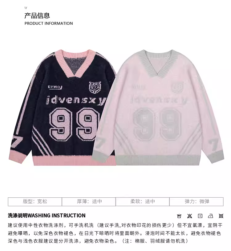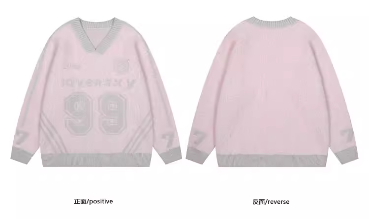 - Áo len thể thao phối màu hồng đen kiểu Mỹ cổ điển K787 dành cho nam và nữ, áo len cổ V phong cách blockcore dành cho cặp đôi