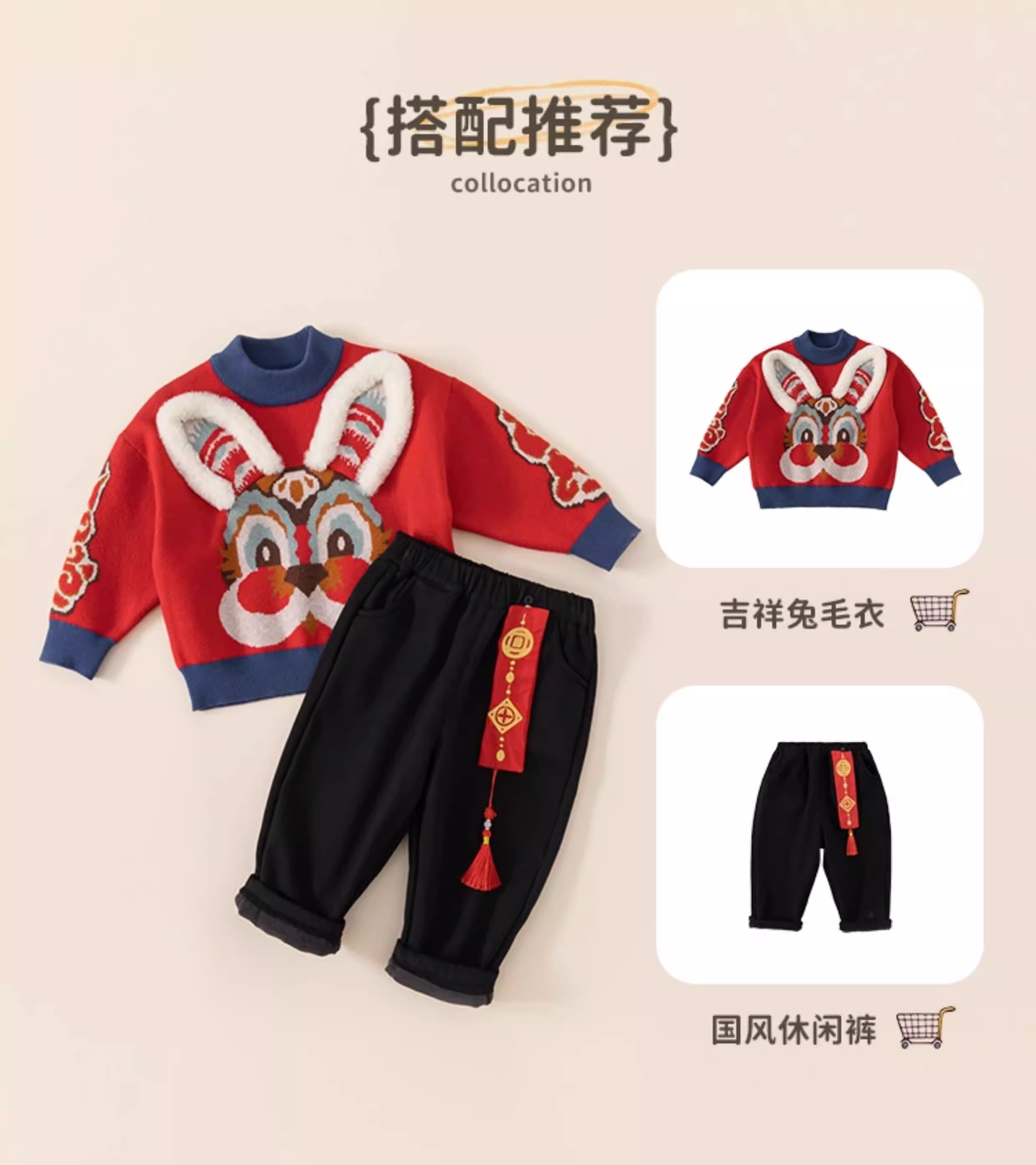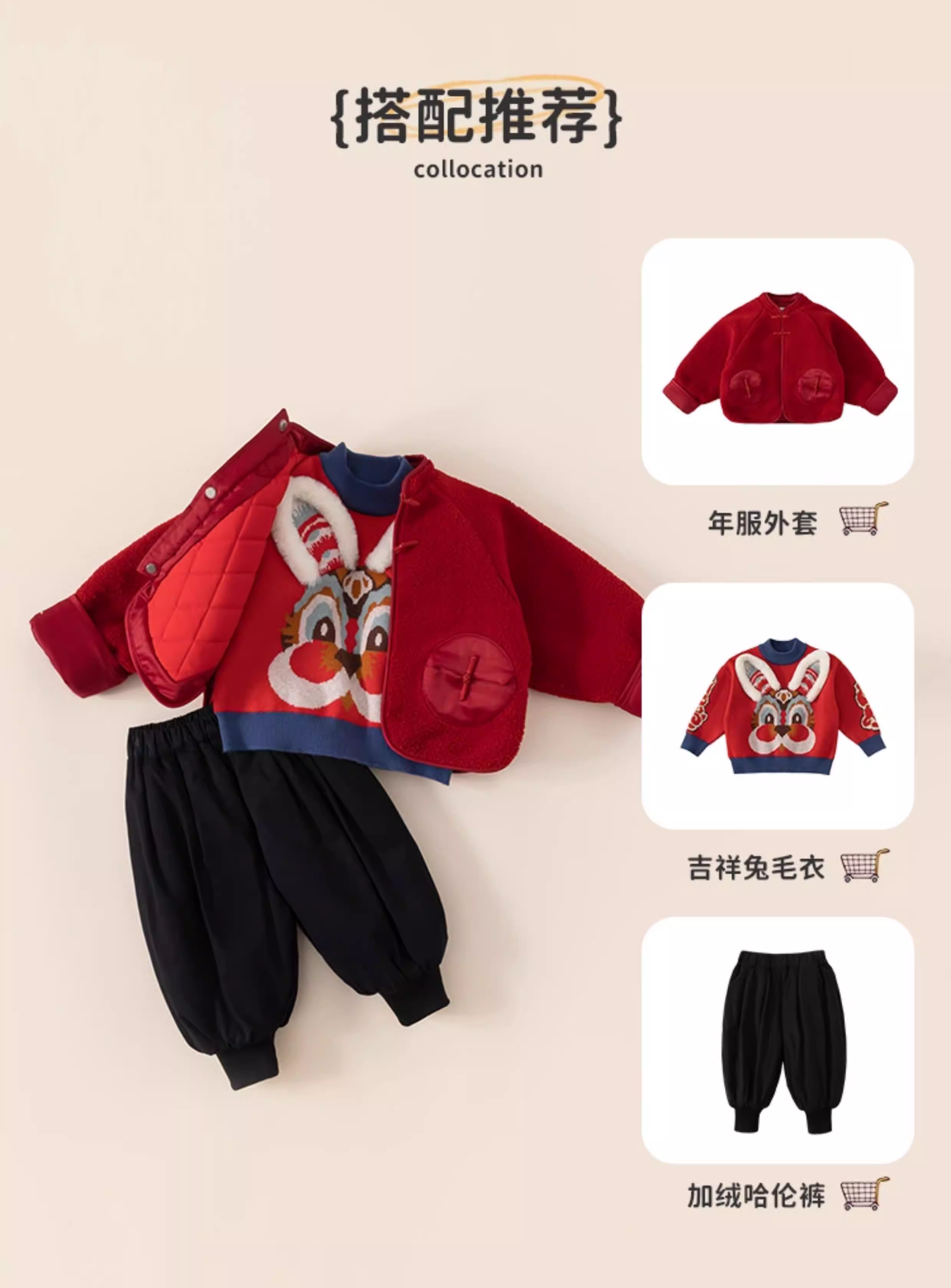 - Áo len trẻ em Hanfu Xuân Thu 2025 kiểu mới Áo len bé trai màu đỏ Quần áo bé gái phong cách Trung Hoa mới Áo kiểu dân tộc cho bé