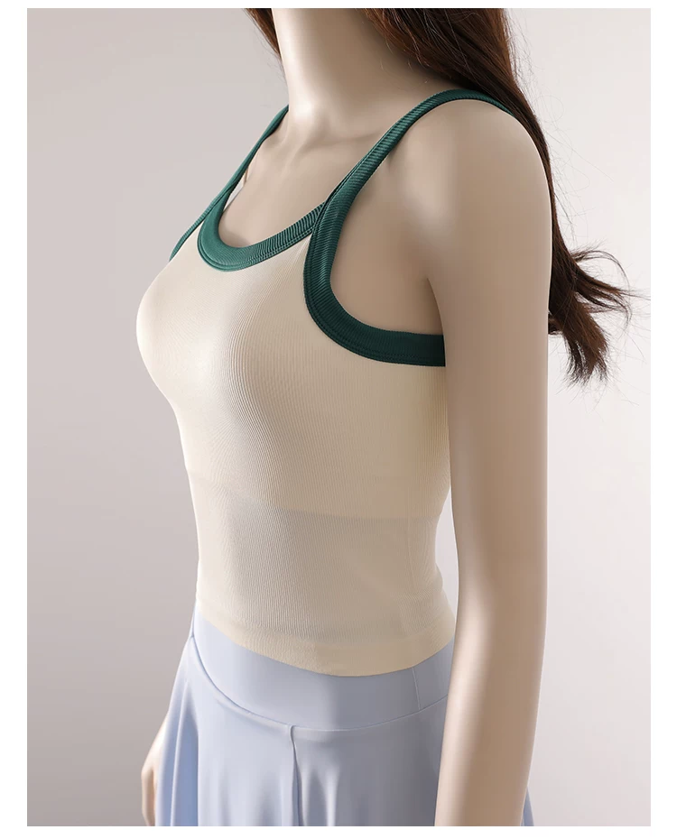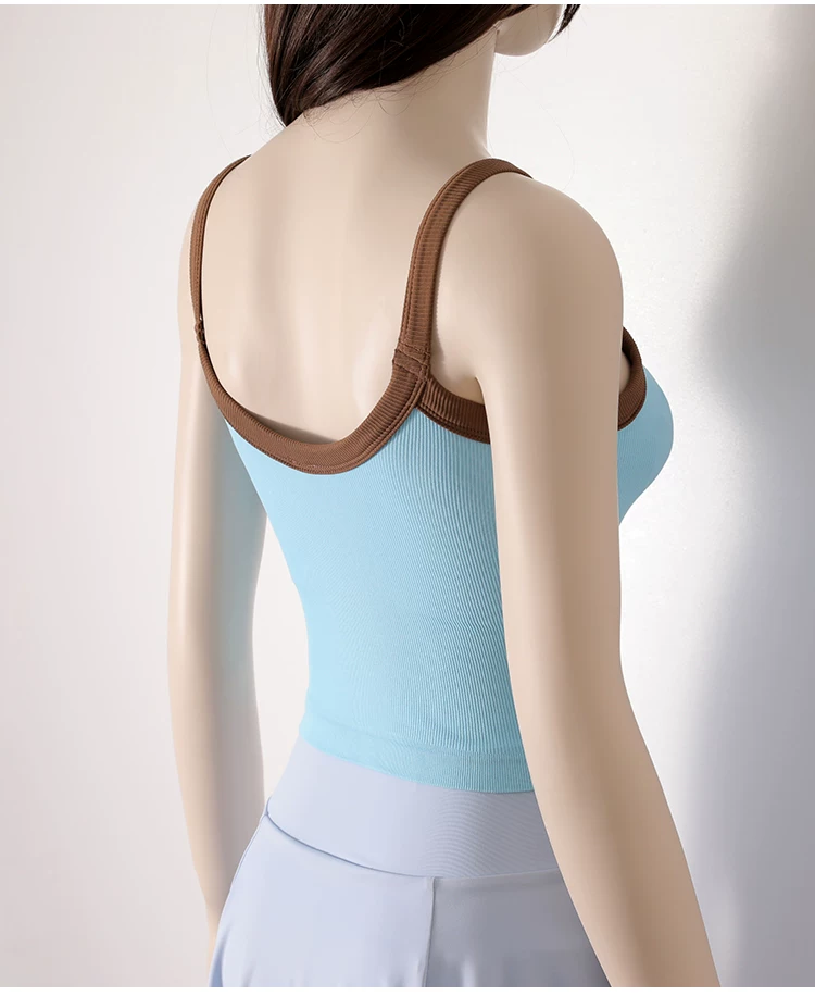 - Áo lót ngực liền thân chống sốc phối màu, kiểu cổ halter dành cho nữ, áo ngắn ôm sát gợi cảm, quyến rũ cho mùa hè.