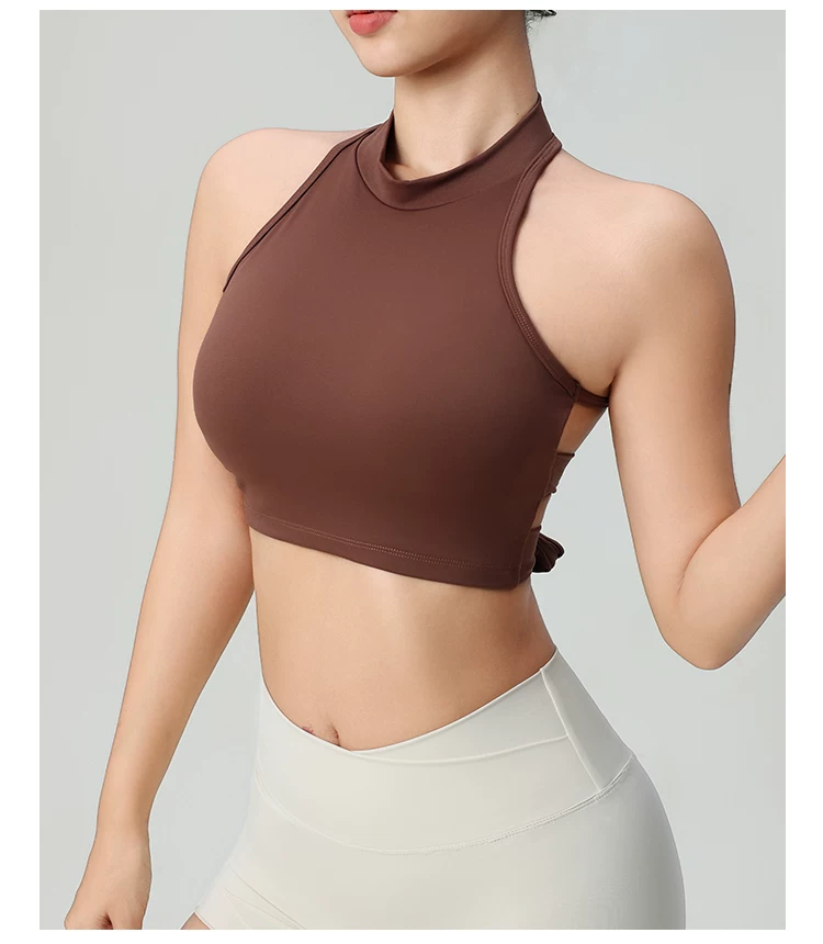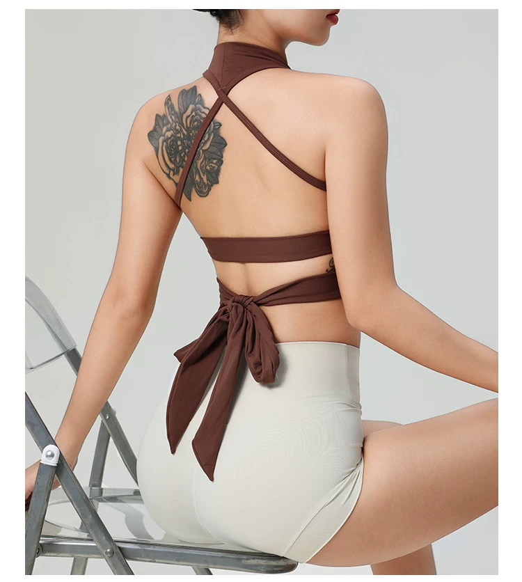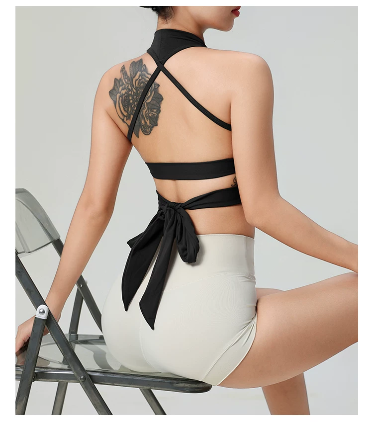 - Áo ngực tập yoga dây đeo gợi cảm, không lưng, dành cho nữ, áo thể thao liền thân, chống sốc, nhanh khô, dùng cho tập luyện Pilates và thể dục.