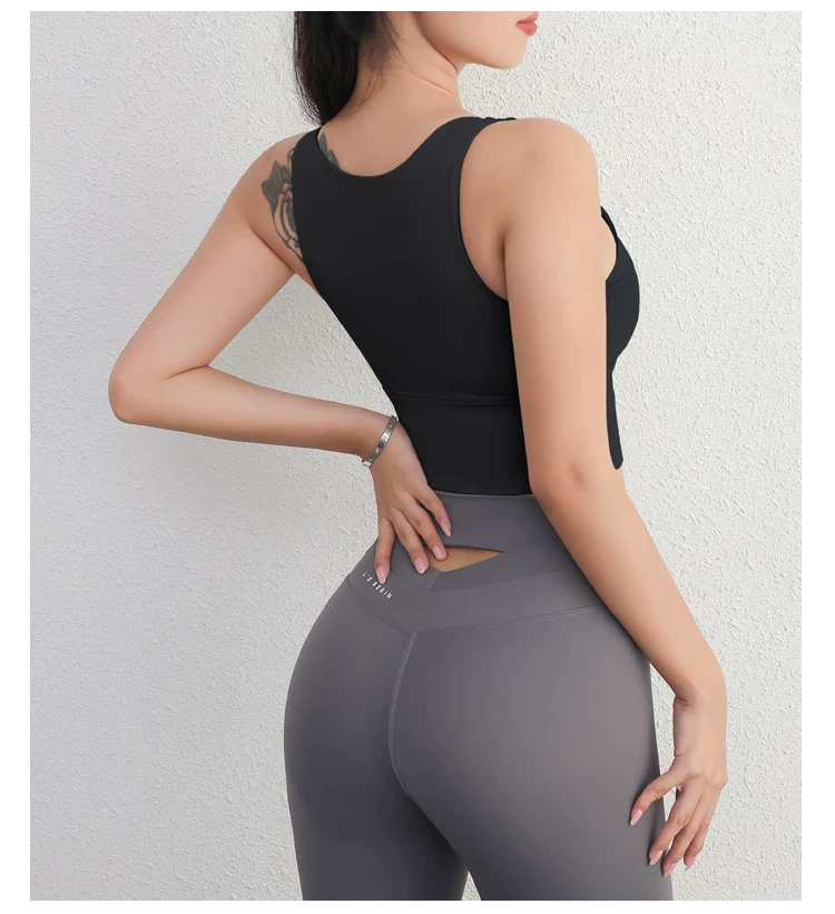 - Áo ngực thể thao chống sốc cường độ cao tất cả trong một, quần áo tập thể dục chạy bộ, trang phục tập yoga, kiểu dáng ngắn nhanh khô để mặc bên ngoài