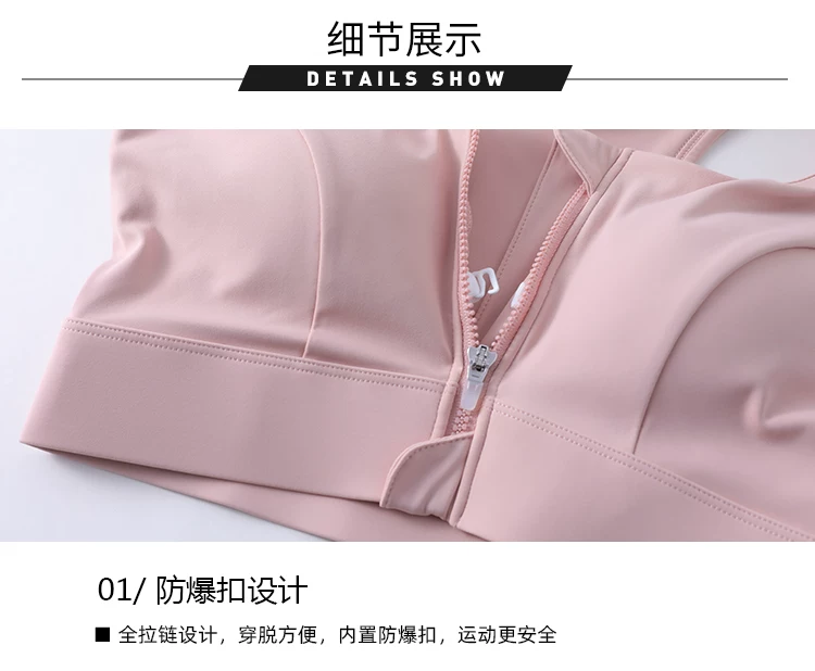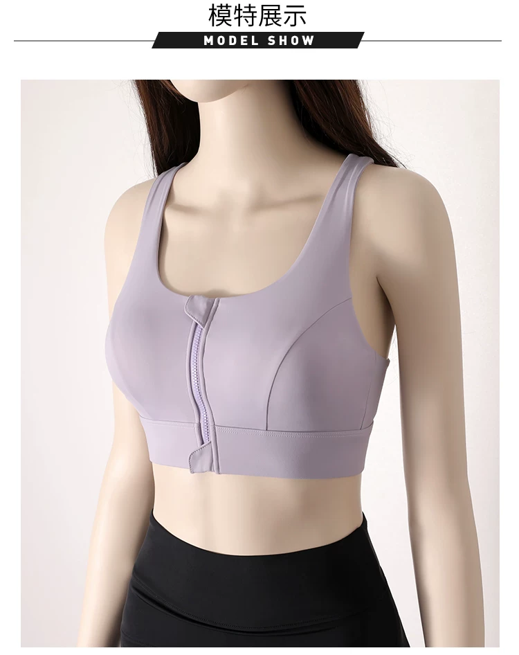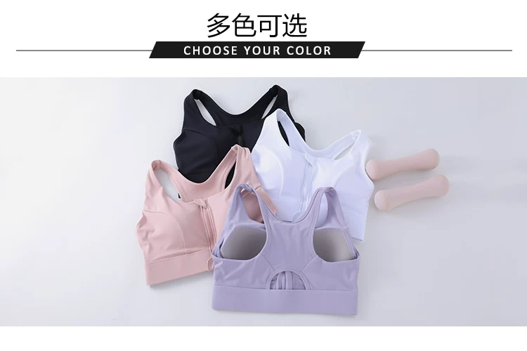 Áo ngực thể thao có khóa kéo phía trước, chống sốc chuyên nghiệp, tích hợp đệm ngực, dành cho nữ, dùng cho yoga và tập luyện thể dục.
