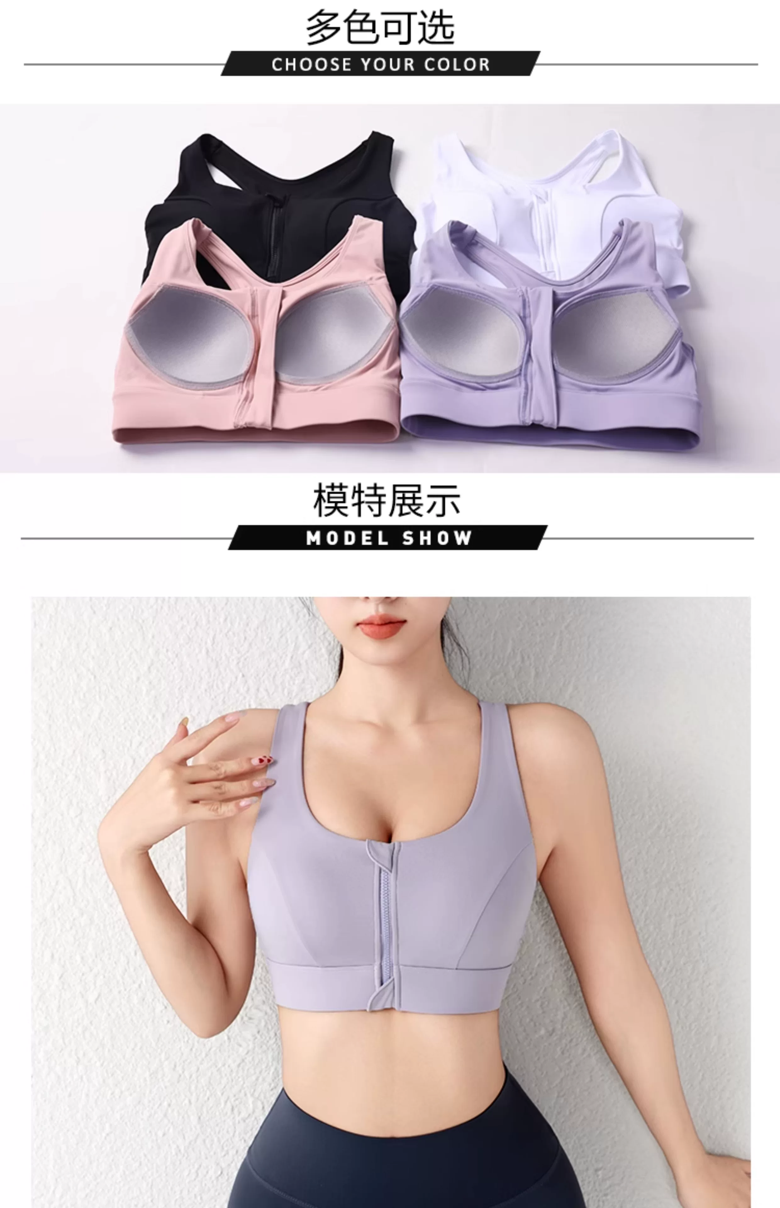 Áo ngực thể thao cỡ lớn có khóa kéo phía trước dành cho nữ, áo ngực tập yoga chống sốc và chống chảy xệ, áo tập thể dục chạy bộ tất cả trong một
