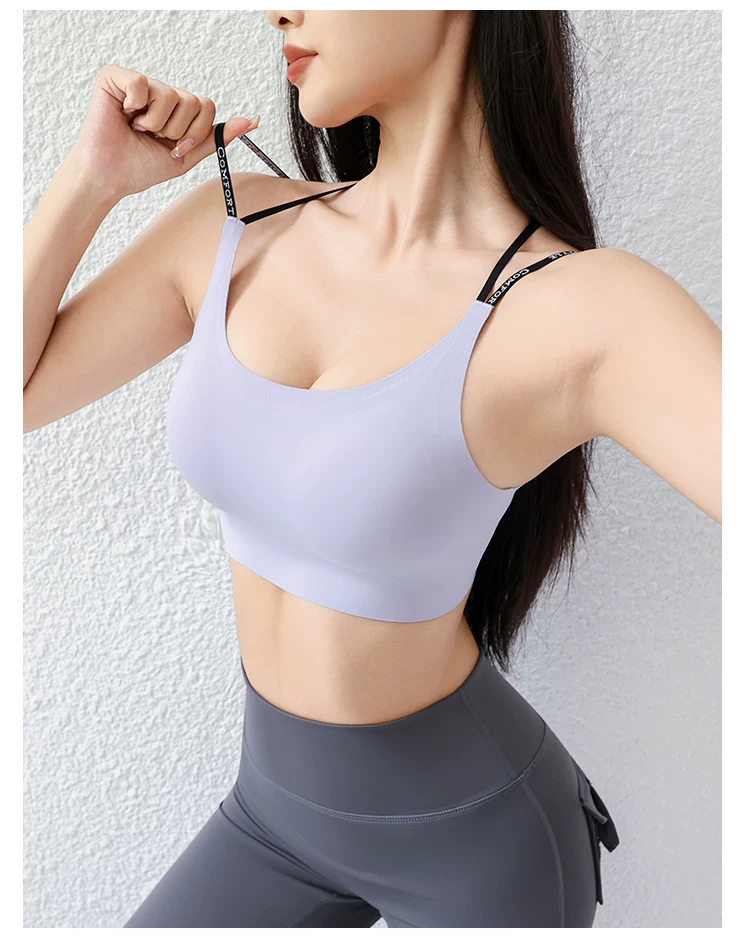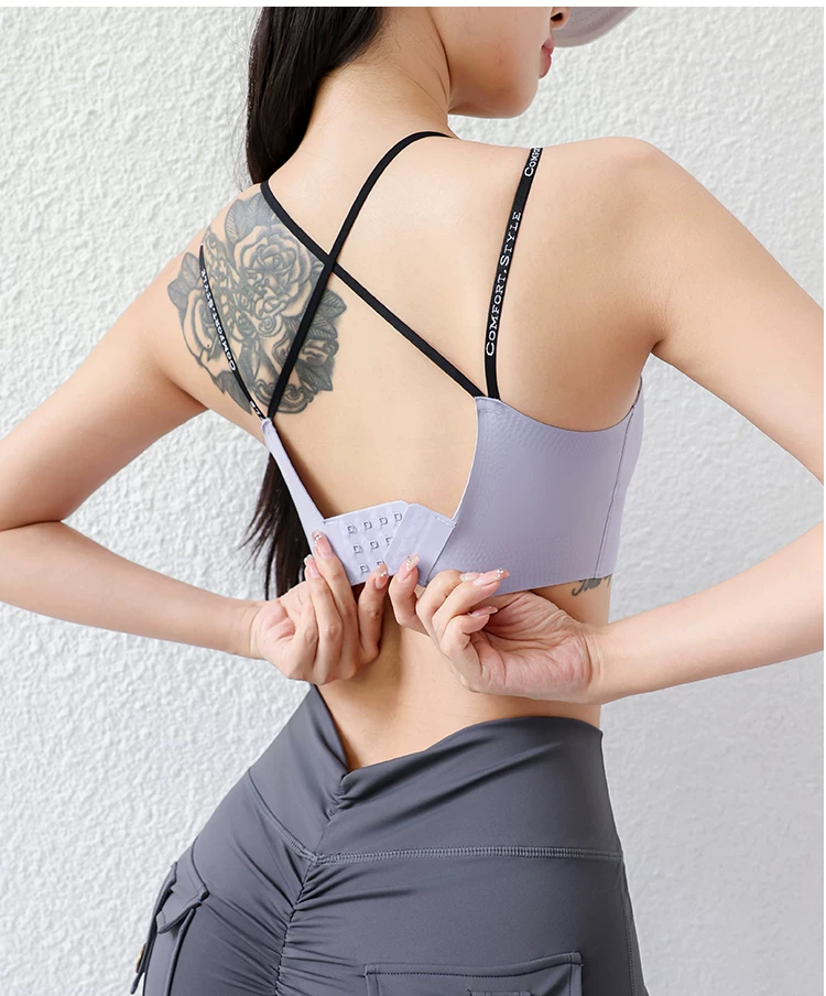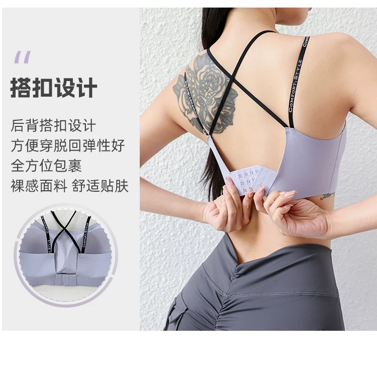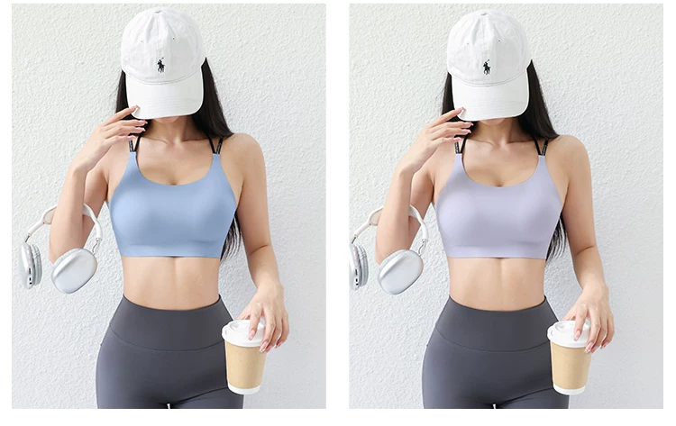 - Áo ngực thể thao dành cho nữ, thiết kế một mảnh lưng chéo, áo tập yoga chống sốc, áo tập gym mùa hè.