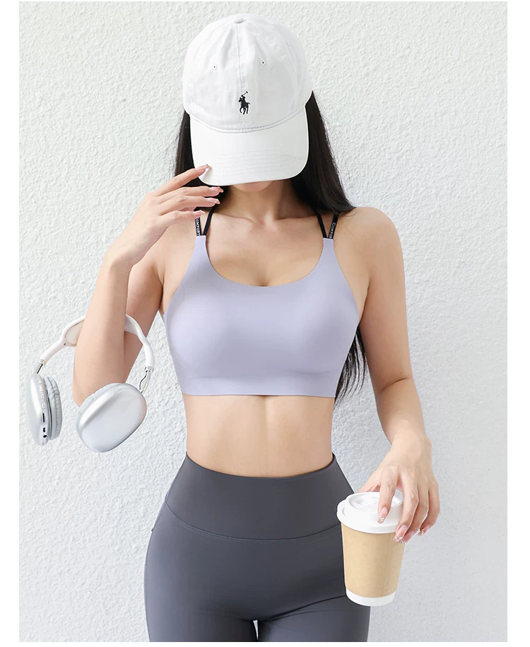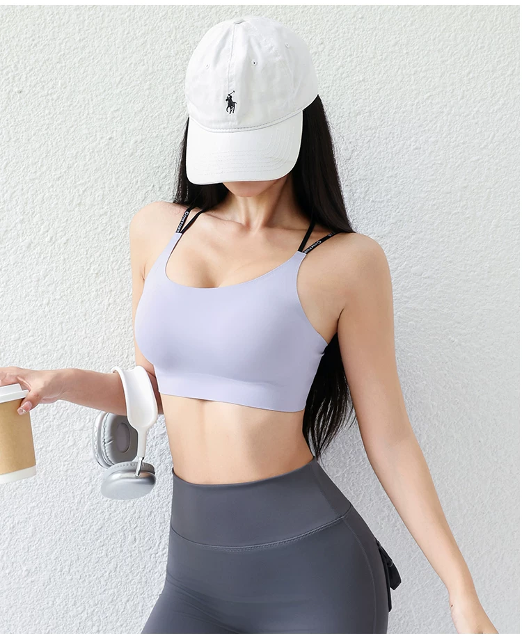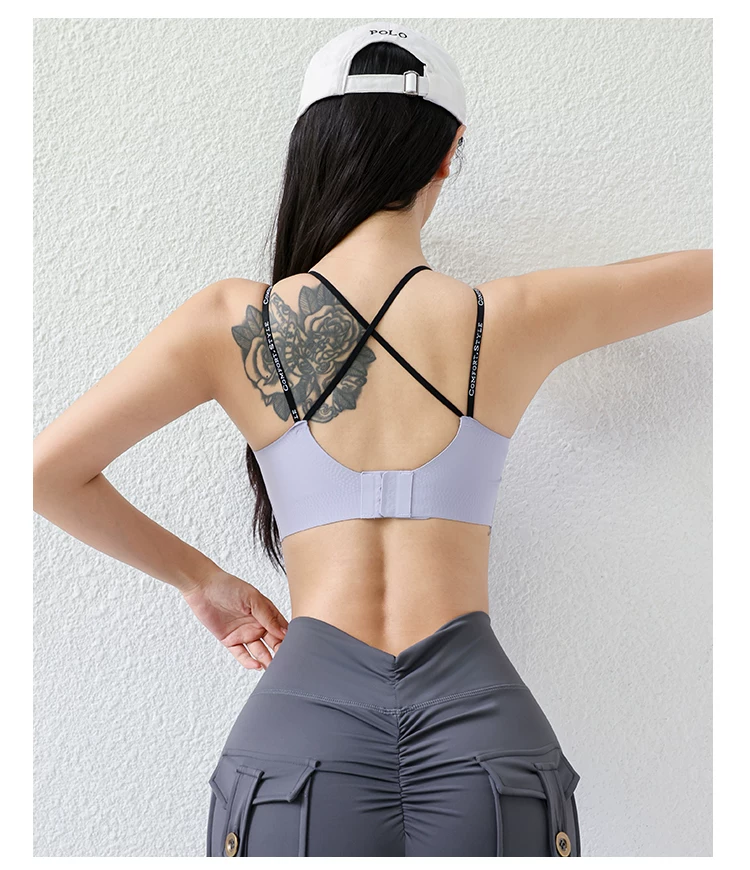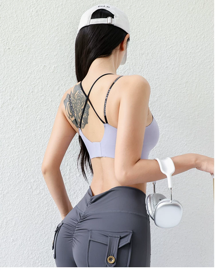Áo ngực thể thao dành cho nữ, thiết kế một mảnh lưng chéo, áo tập yoga chống sốc, áo tập gym mùa hè.