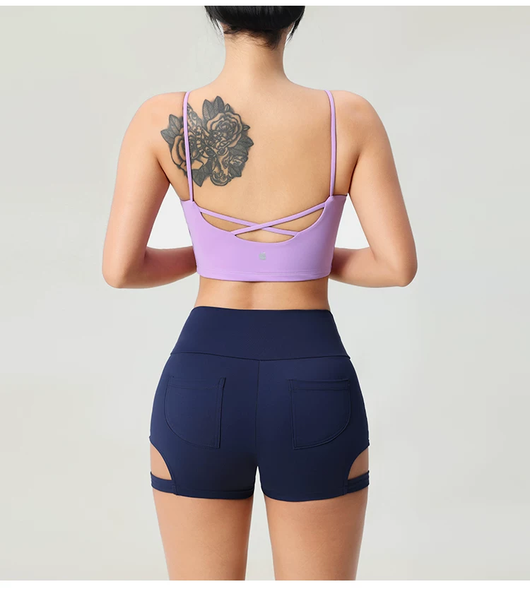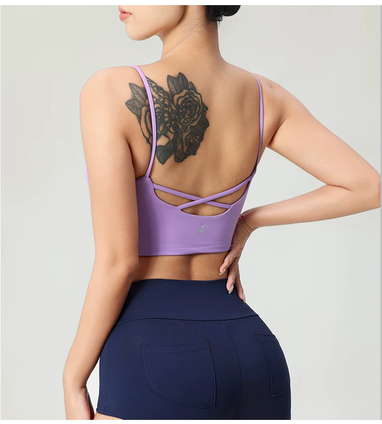 - Áo ngực thể thao tích hợp đệm ngực cường độ cao, thiết kế lưng chéo, chống sốc, nâng ngực, áo tập gym nhanh khô, đồ tập yoga dành cho nữ