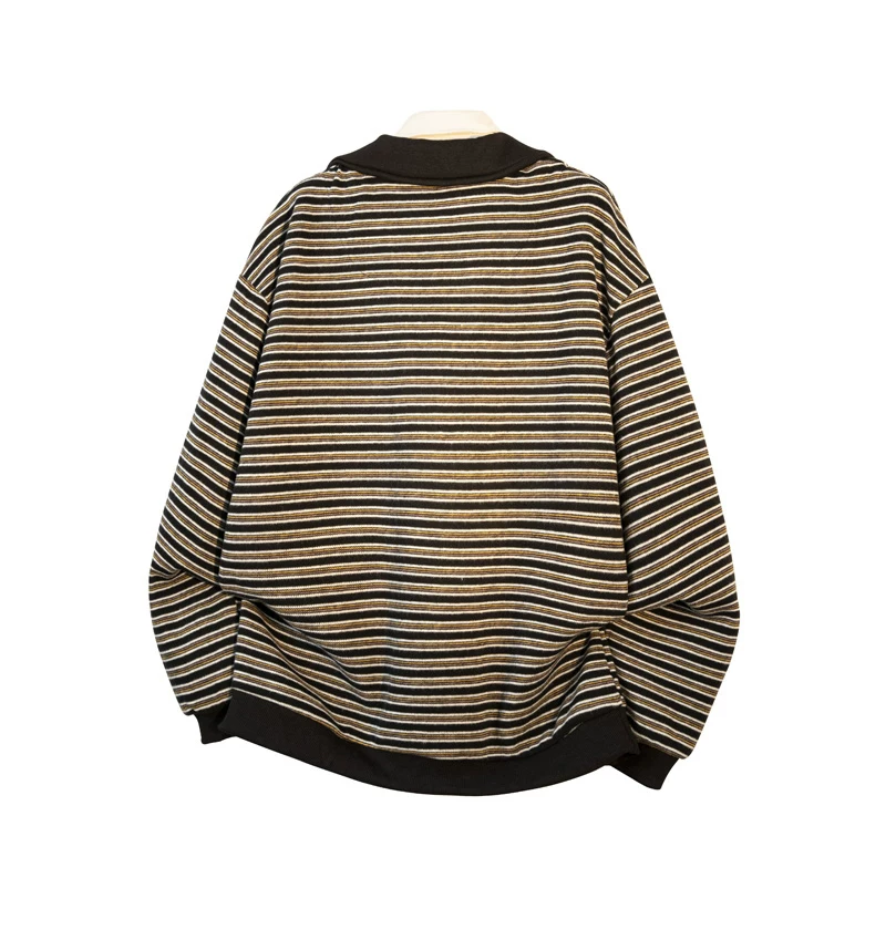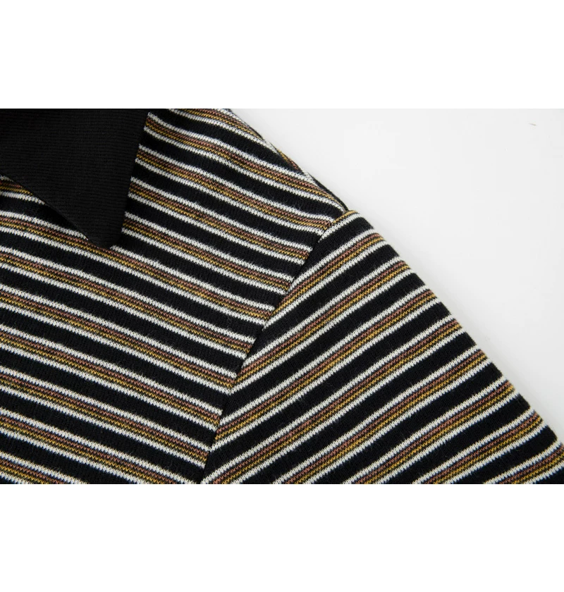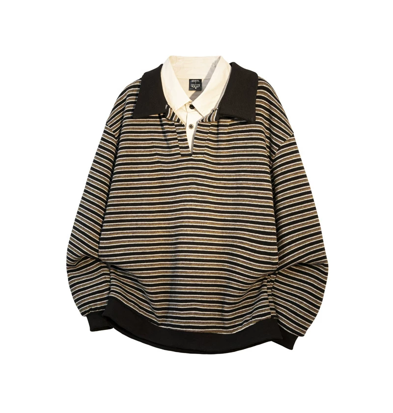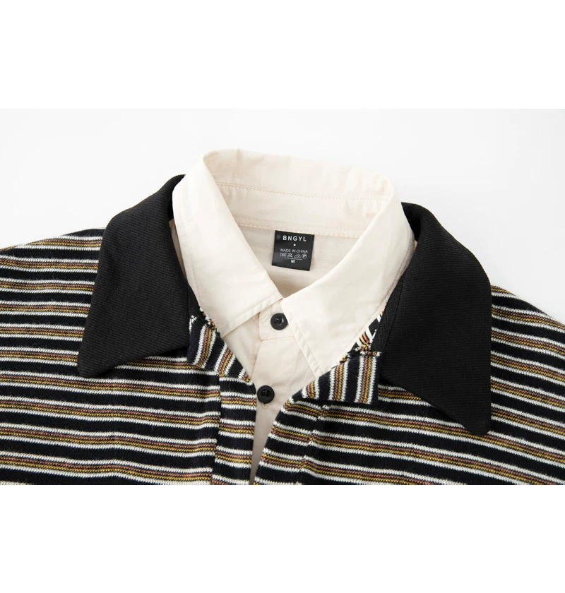 - Áo nỉ giả hai mảnh phong cách retro Nhật Bản dành cho nam, áo thun sọc phối màu thời thượng mùa thu, áo thun dài tay cổ polo cá tính.