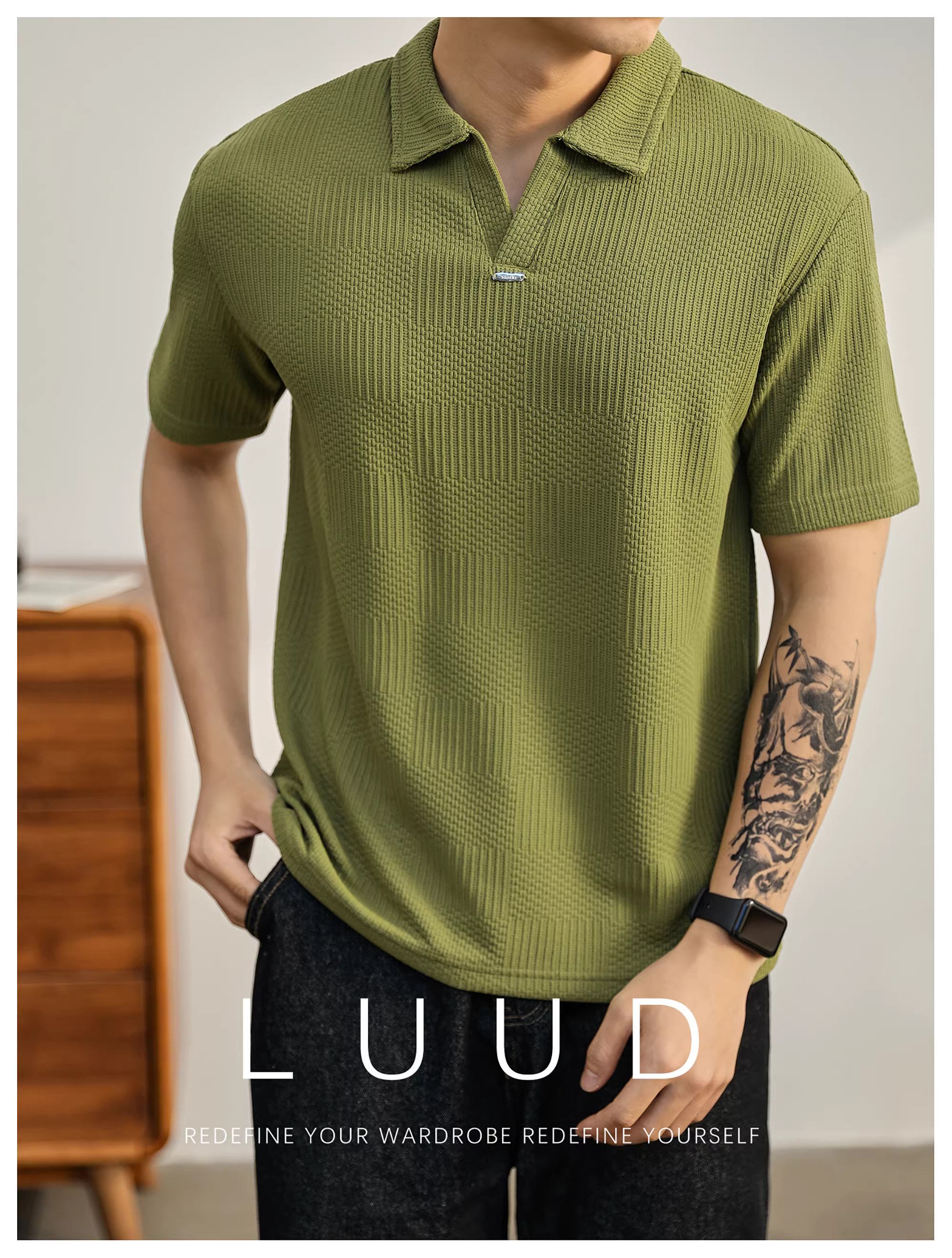 - Áo polo dệt kim họa tiết LUUD dành cho nam, thương hiệu hợp thời trang mùa hè, áo thun giản dị phong cách lười biếng, áo polo cổ bẻ thoáng khí