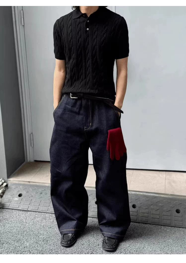 Áo polo dệt kim kiểu Mỹ, cổ trụ, chất liệu thoáng khí, tay ngắn, unisex, kiểu dáng rộng rãi, thời trang, dành cho cặp đôi.