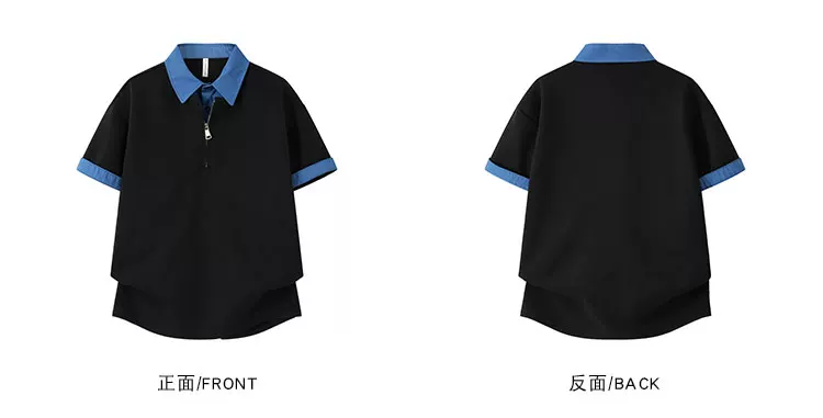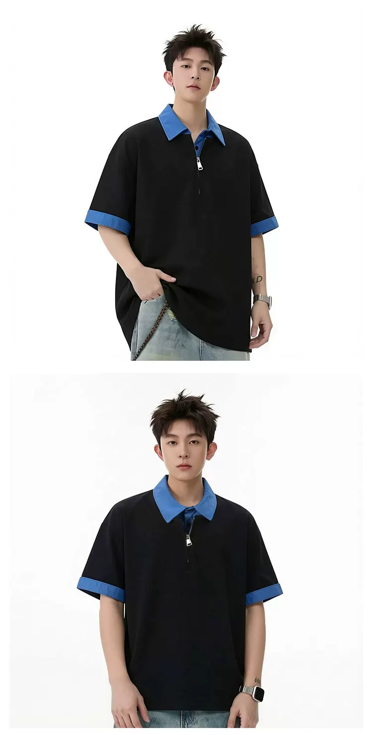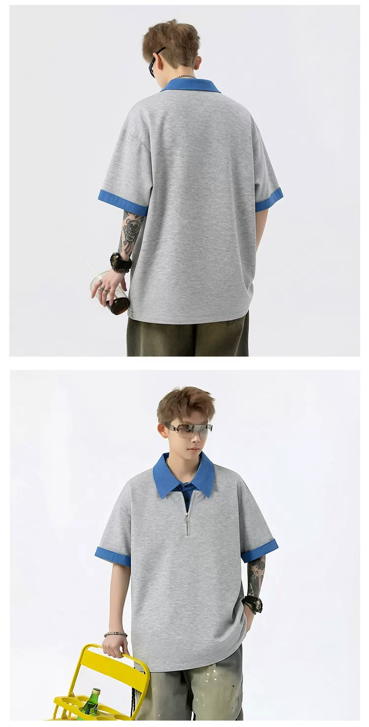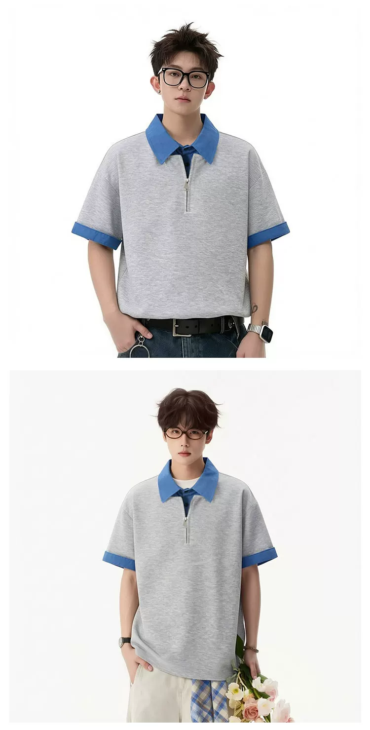 - Áo Polo giả hai mảnh kiểu Mỹ dành cho nam, áo nửa khóa kéo phối màu mùa hè, áo thun cao cấp dáng rộng thời thượng