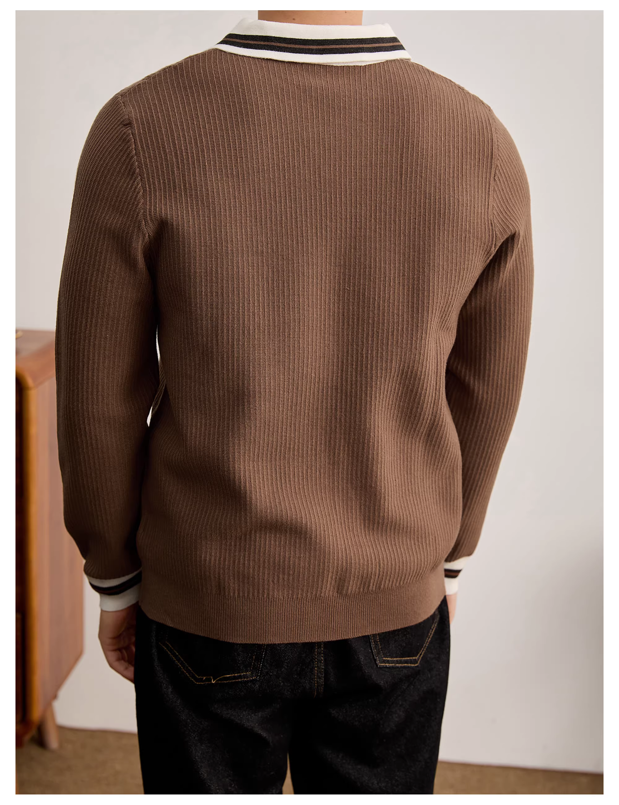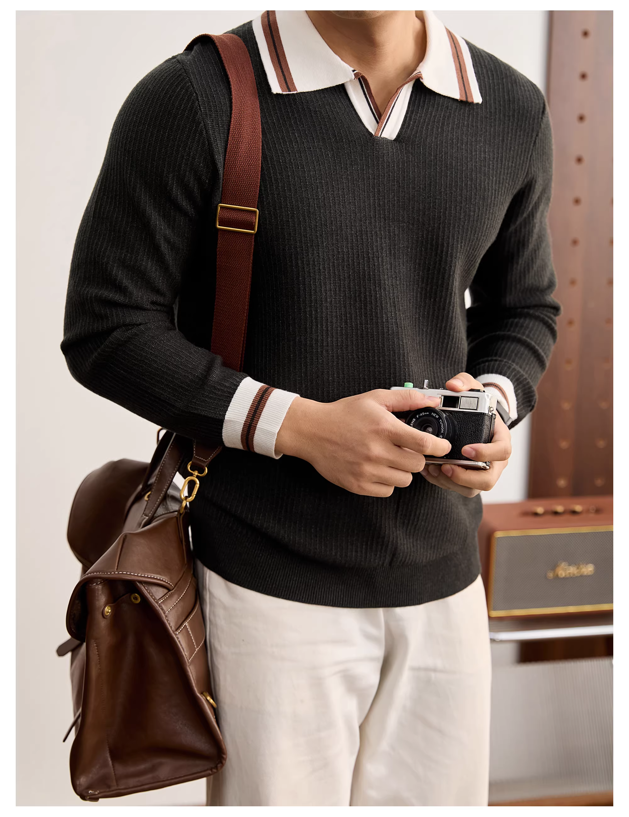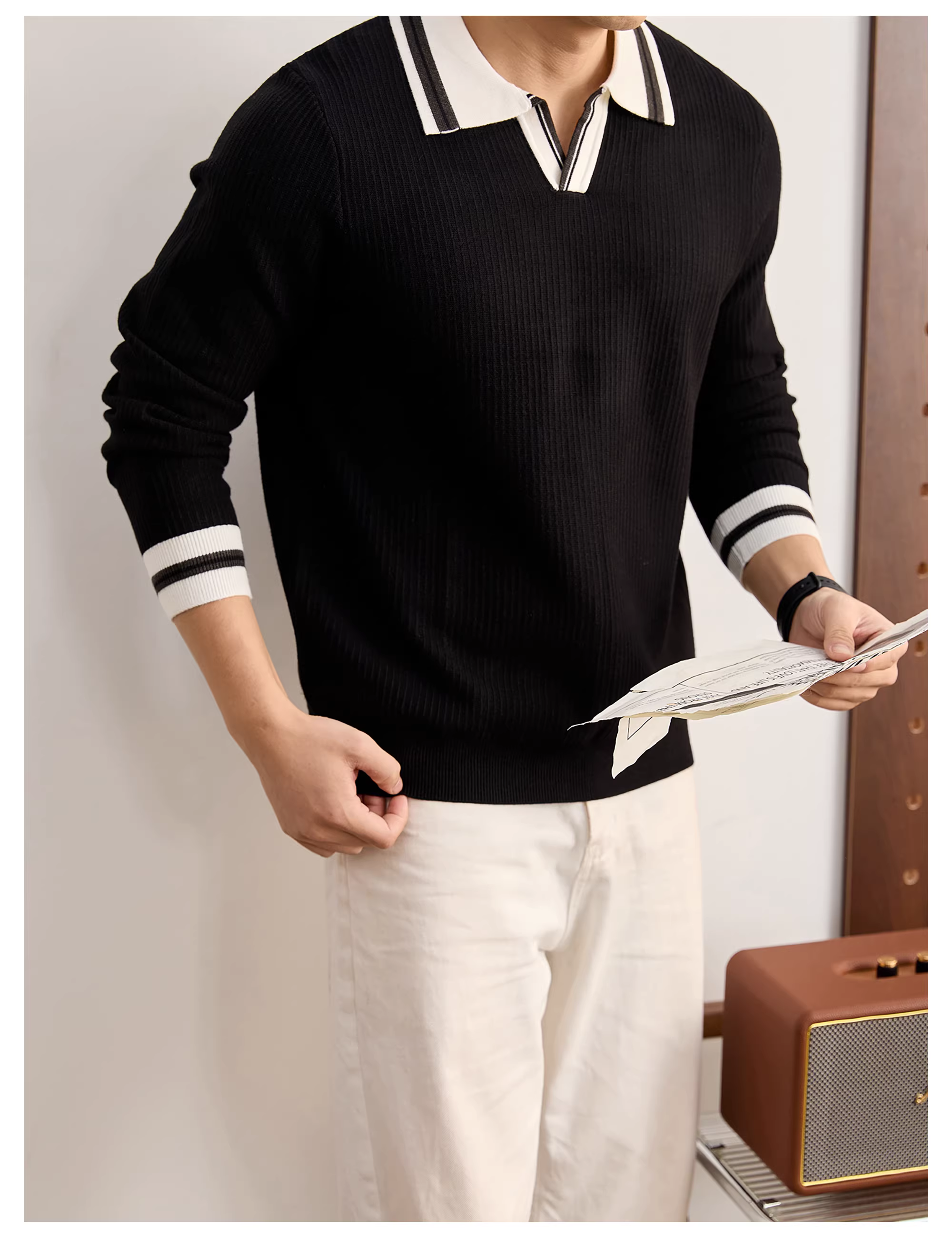 Áo polo nam chất liệu dệt kim kiểu dáng tiền cổ điển Mỹ, chất liệu modal core-spun, phối màu cổ áo.