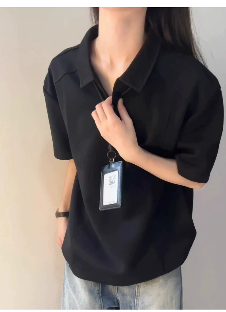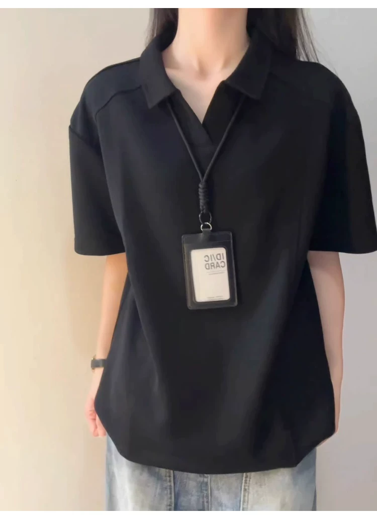 - Áo polo nam cổ V kiểu Mỹ, tay ngắn, chất liệu mềm mại, kiểu dáng rộng rãi, phối màu thời trang, áo thun cơ bản phong cách cặp đôi đơn giản, hợp xu hướng.