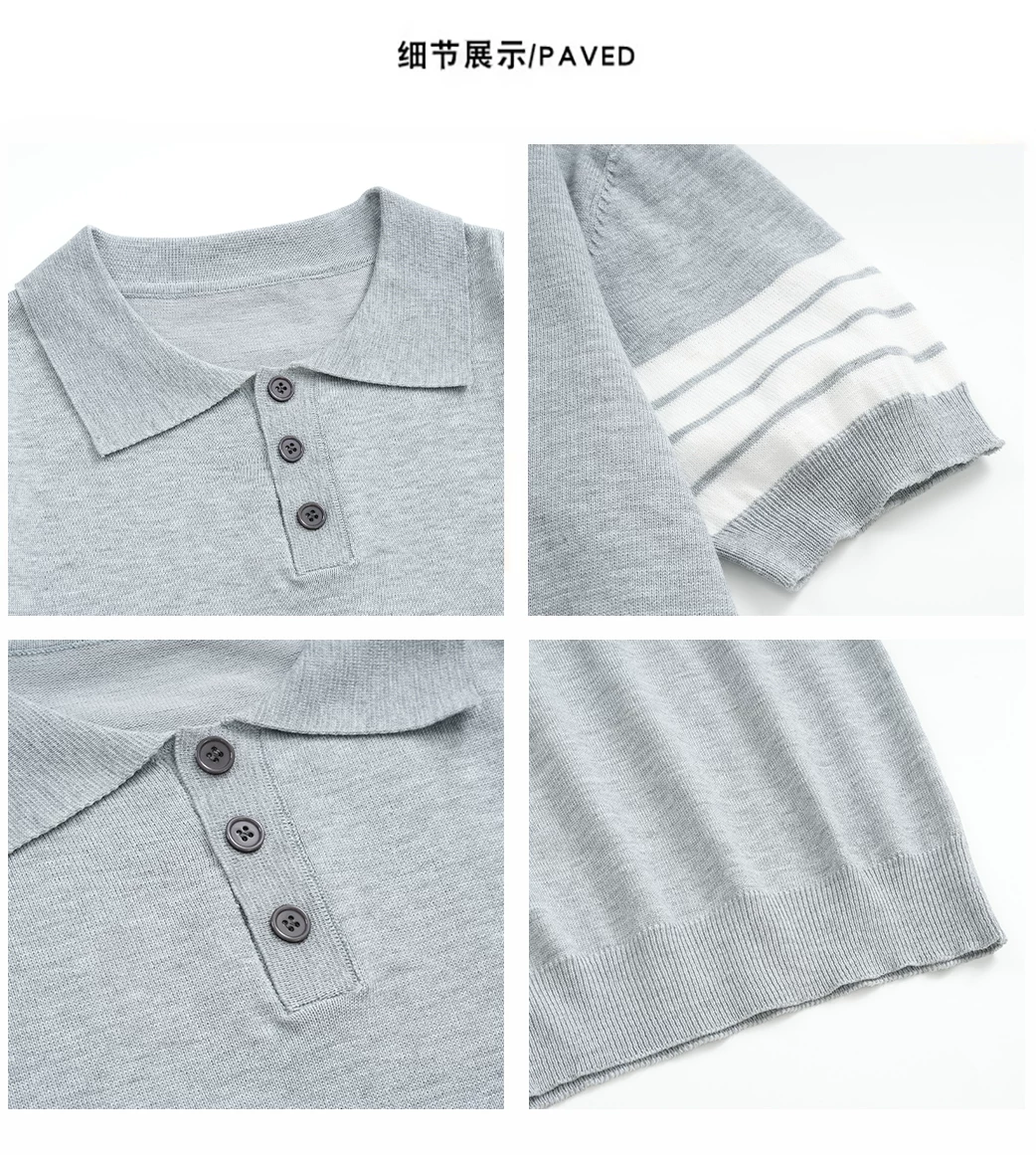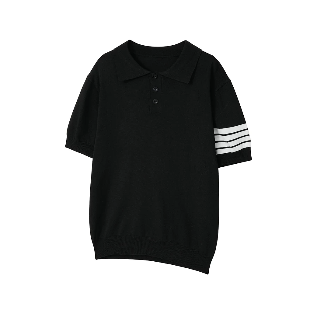 Áo Polo nam kiểu Mỹ, tay ngắn, chất liệu thun thoáng mát, kiểu dáng rộng rãi, thương hiệu thời trang với thiết kế bốn sọc.