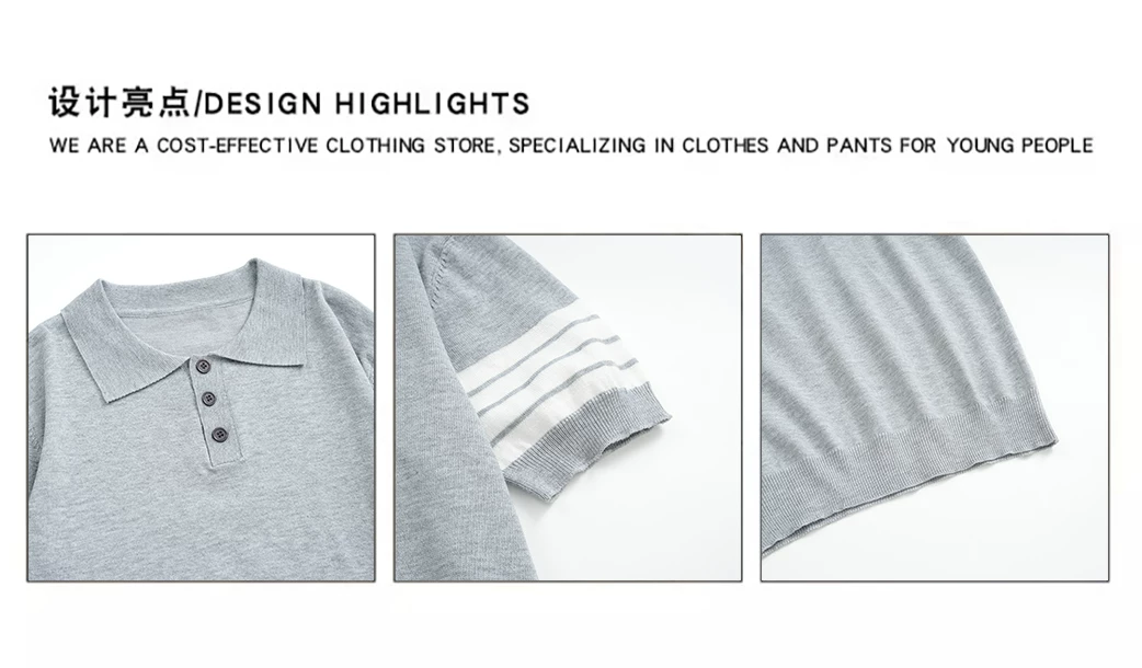 - Áo Polo nam kiểu Mỹ, tay ngắn, chất liệu thun thoáng mát, kiểu dáng rộng rãi, thương hiệu thời trang với thiết kế bốn sọc.