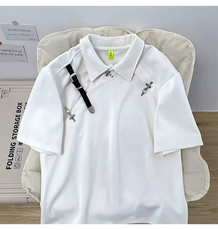 - Áo polo nam phong cách retro Mỹ, áo thun cơ bản rộng rãi thoải mái mùa hè, thương hiệu thời thượng với thiết kế khóa thắt lưng.