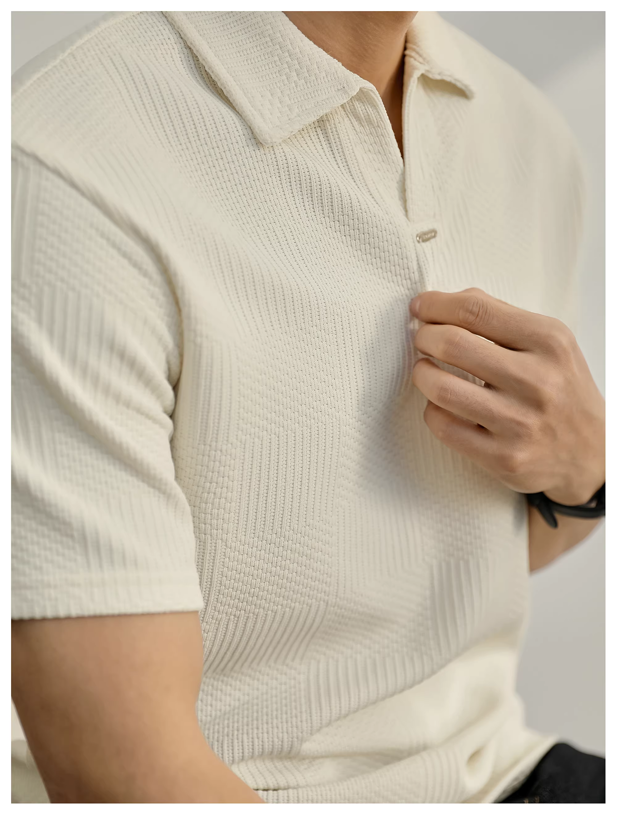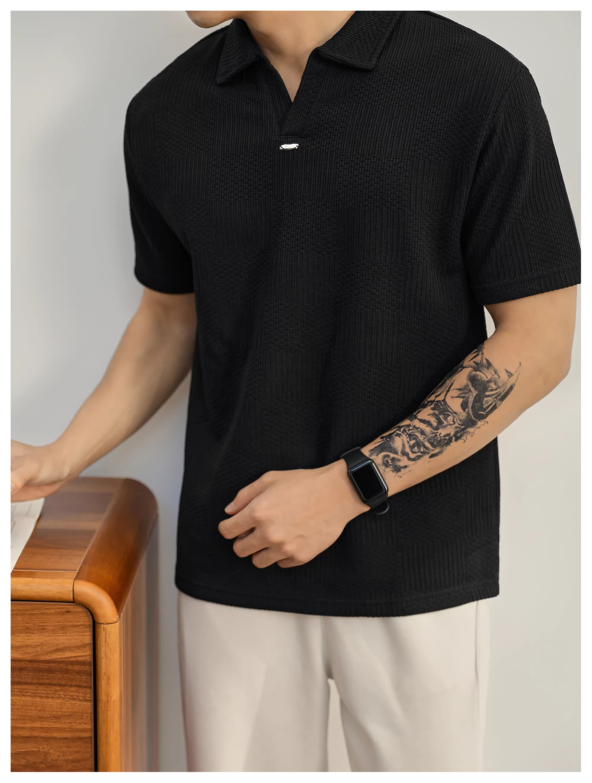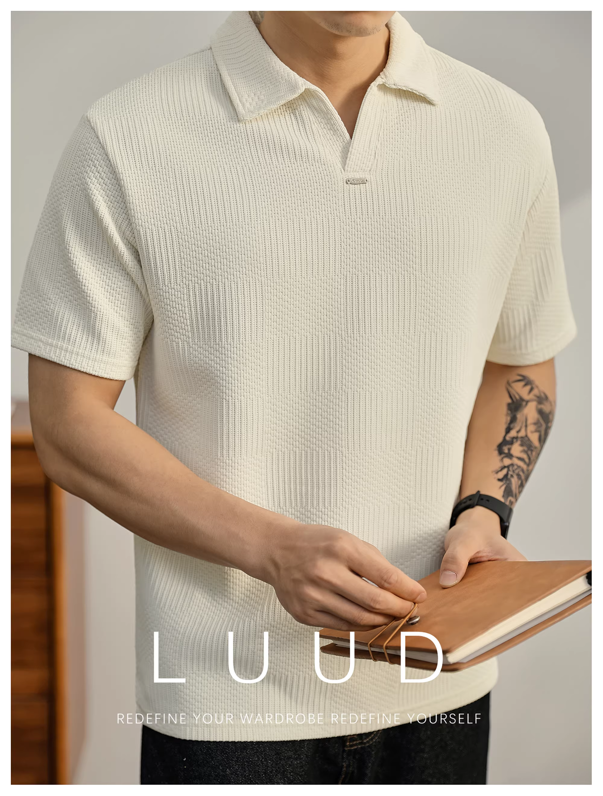 - Áo polo ngắn tay họa tiết jacquard LUUD dành cho nam, áo thun dệt kim cổ chữ V nhỏ phong cách mùa hè mới, áo polo thông thường