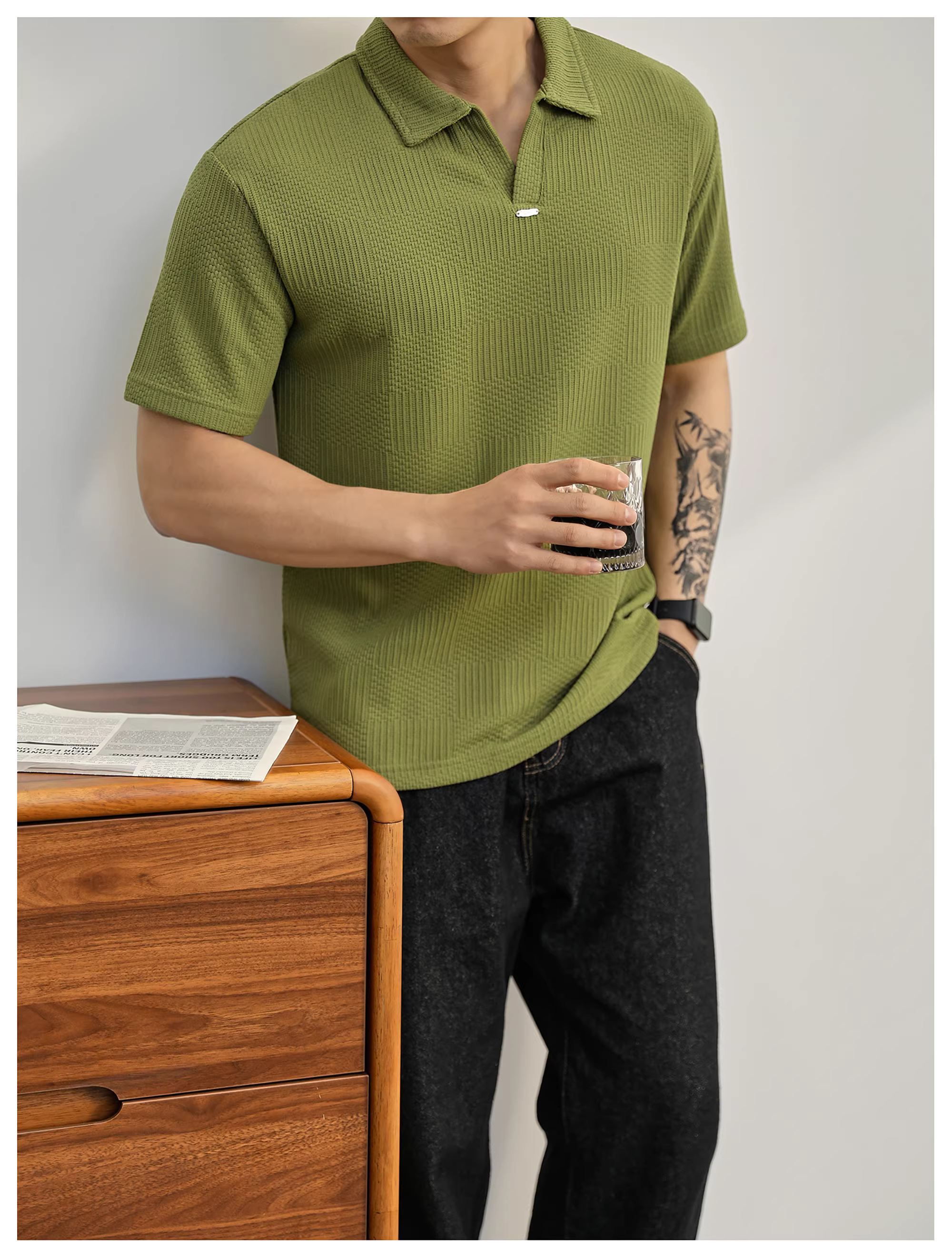 Áo polo ngắn tay họa tiết jacquard LUUD dành cho nam, áo thun dệt kim cổ chữ V nhỏ phong cách mùa hè mới, áo polo thông thường