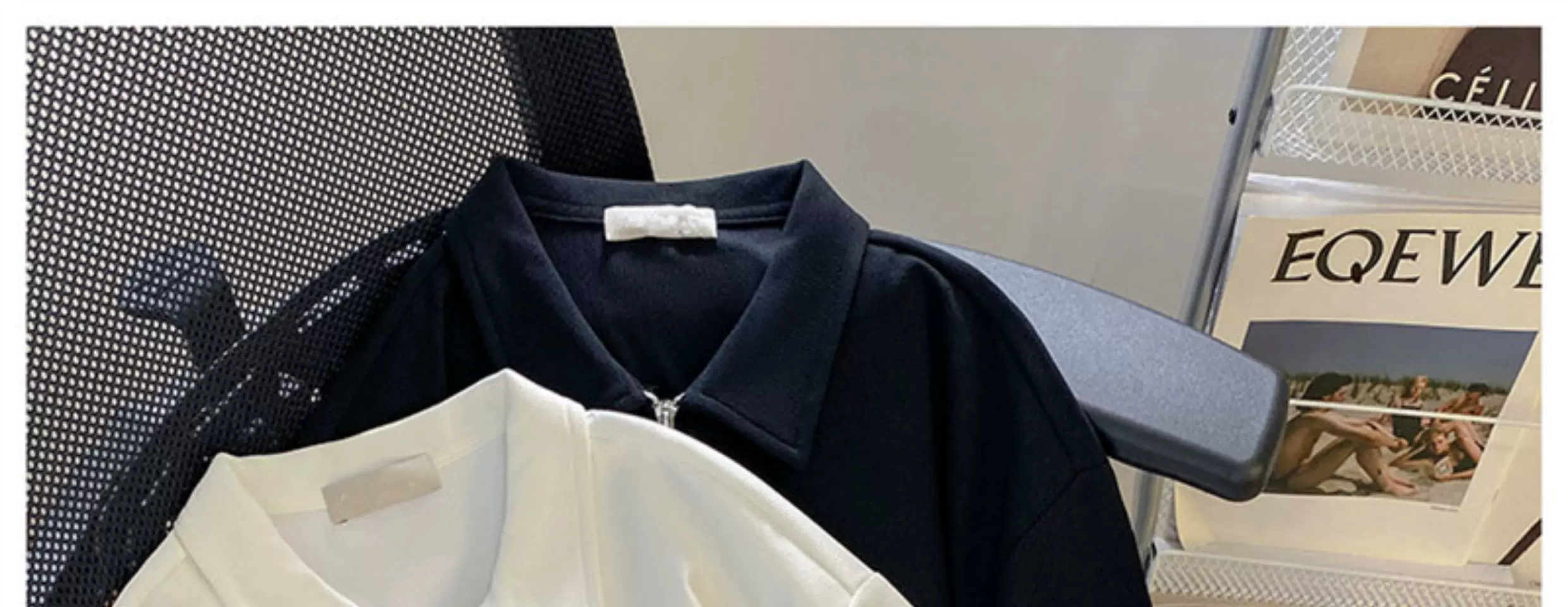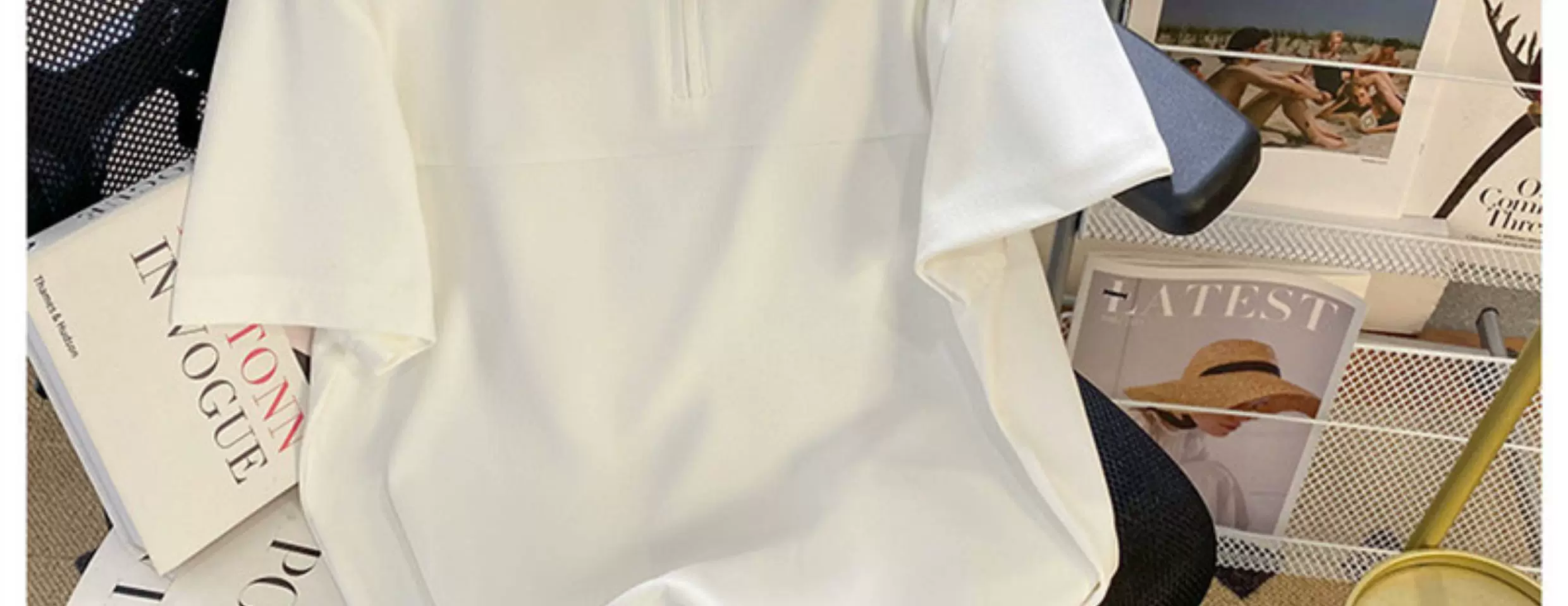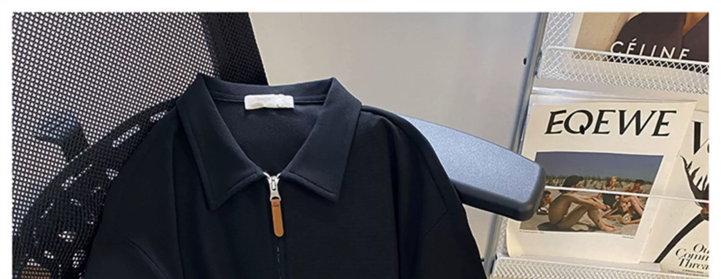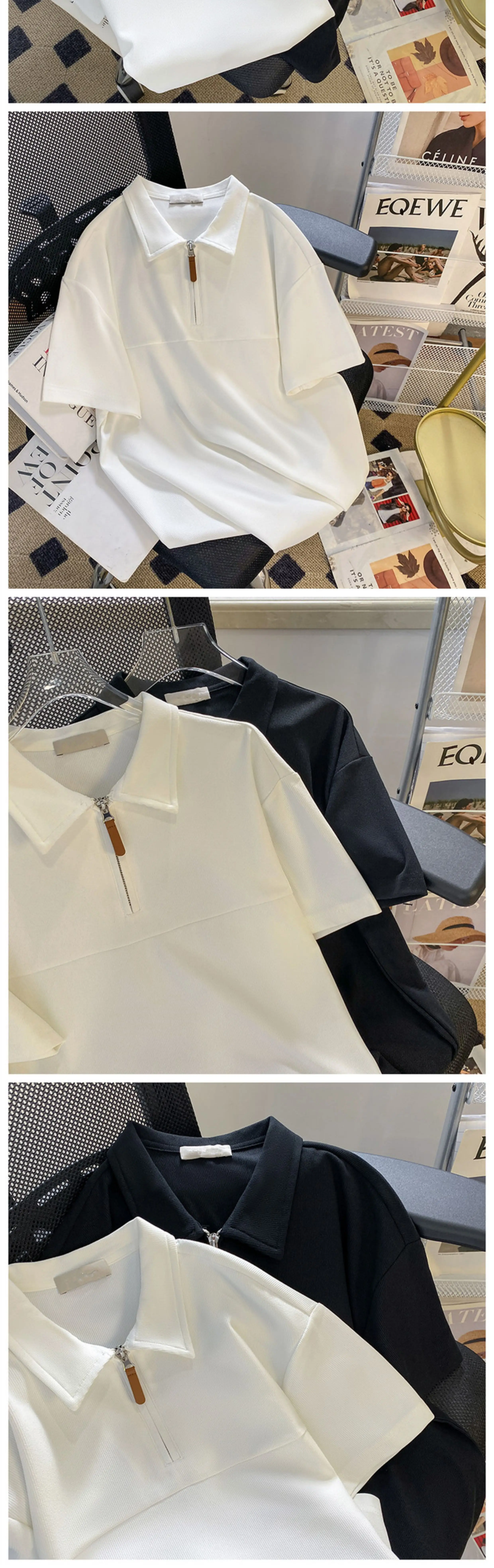 Áo polo nửa khóa kéo dành cho nam, phong cách Nhật Bản, cổ bẻ đơn giản, áo thun ngắn tay, trang phục nửa tay ngắn đa năng hợp thời trang mùa hè.