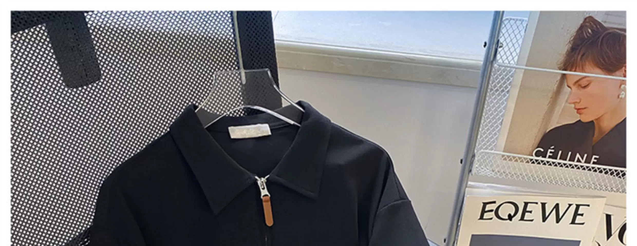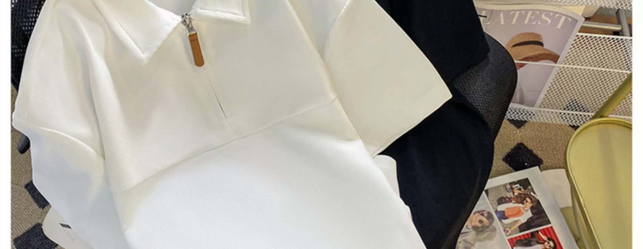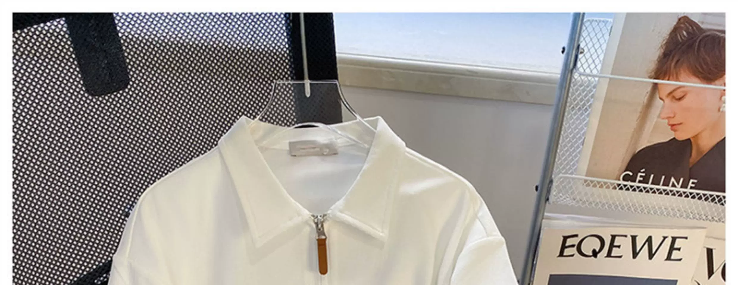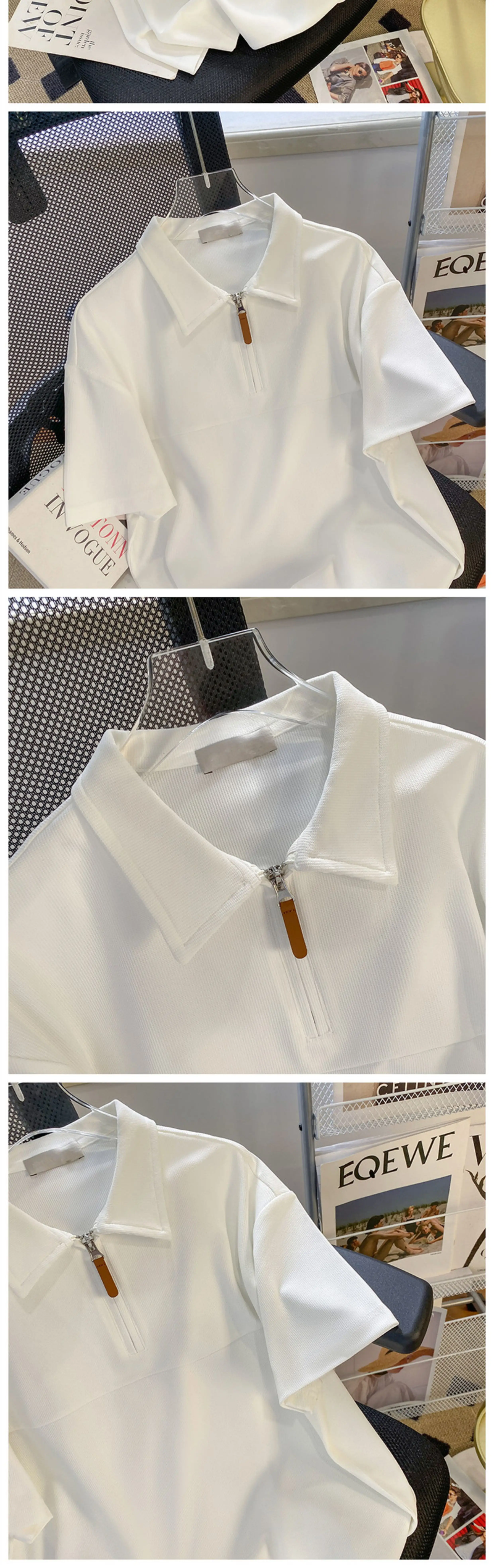 Áo polo nửa khóa kéo dành cho nam, phong cách Nhật Bản, cổ bẻ đơn giản, áo thun ngắn tay, trang phục nửa tay ngắn đa năng hợp thời trang mùa hè.