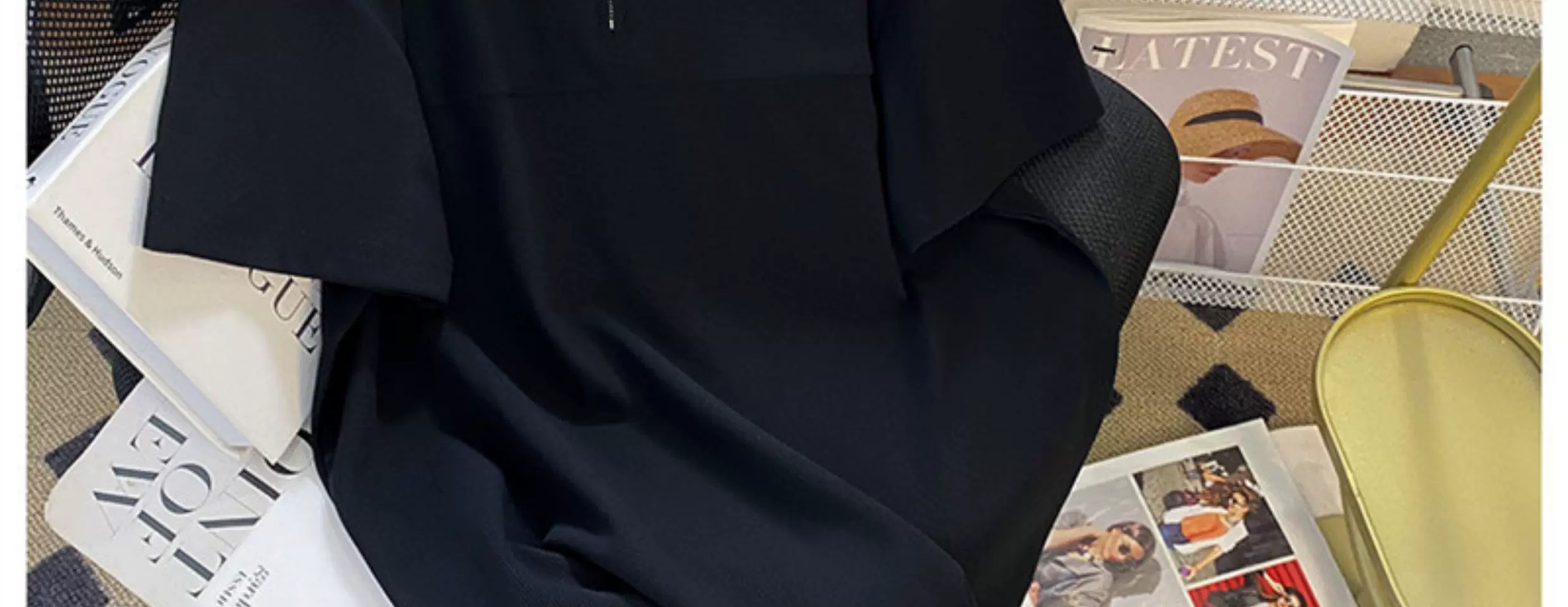 - Áo polo nửa khóa kéo dành cho nam, phong cách Nhật Bản, cổ bẻ đơn giản, áo thun ngắn tay, trang phục nửa tay ngắn đa năng hợp thời trang mùa hè.