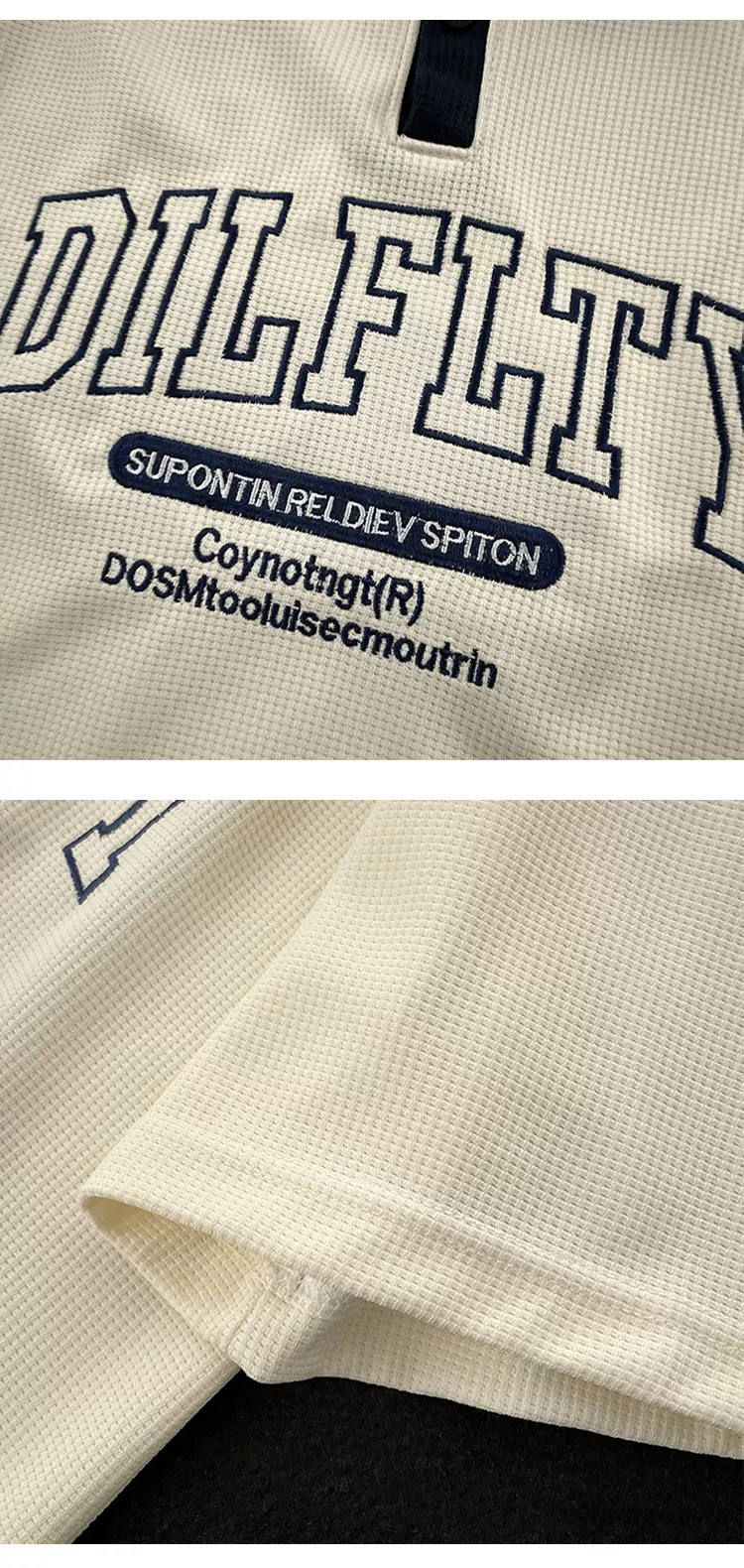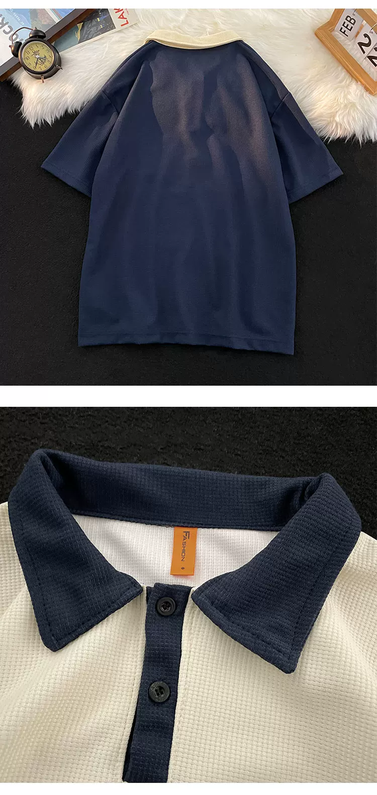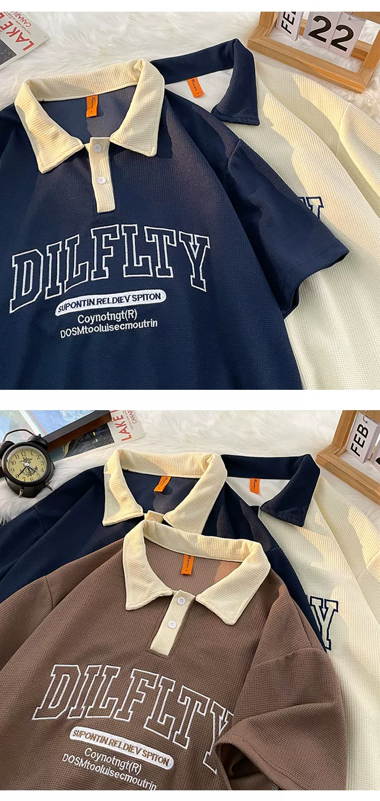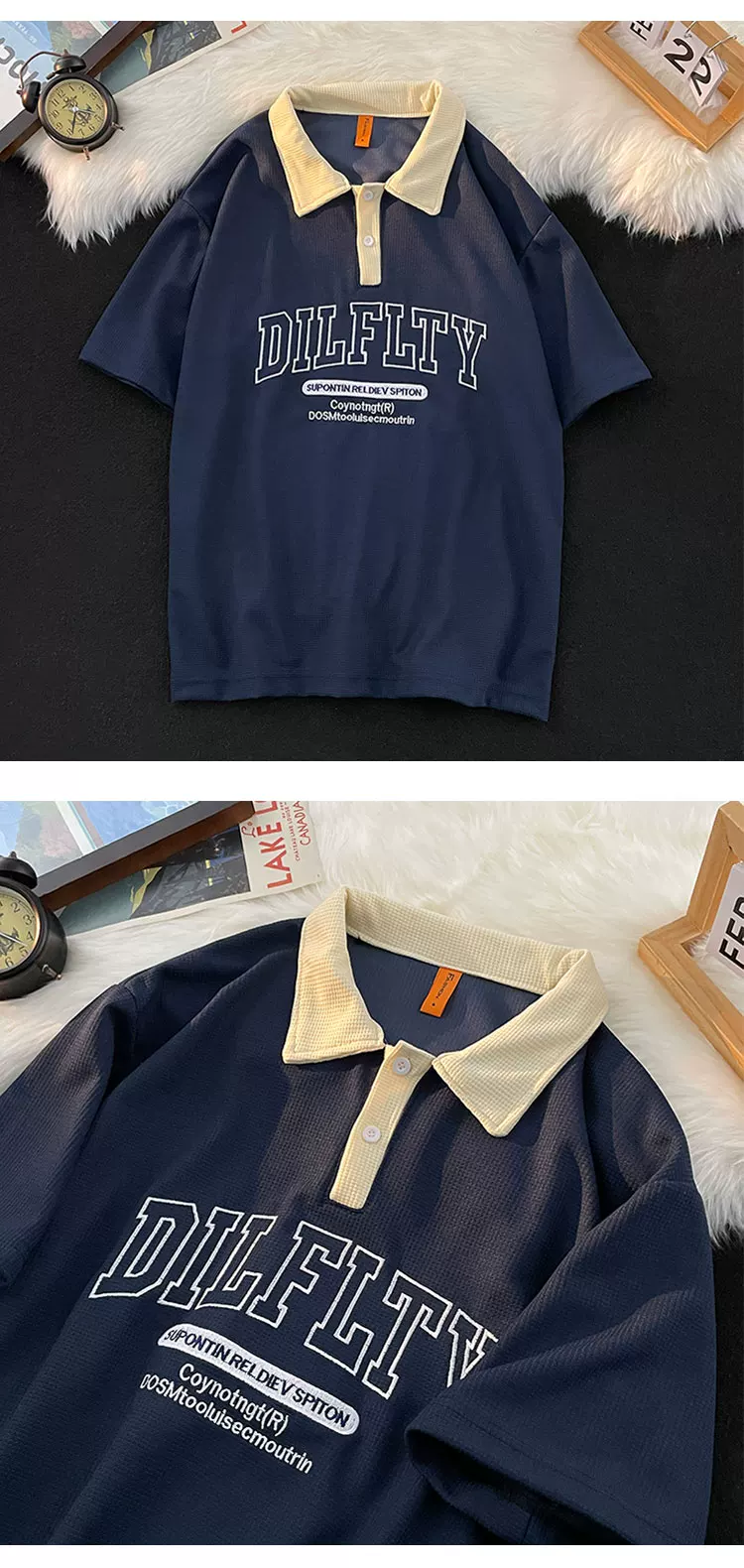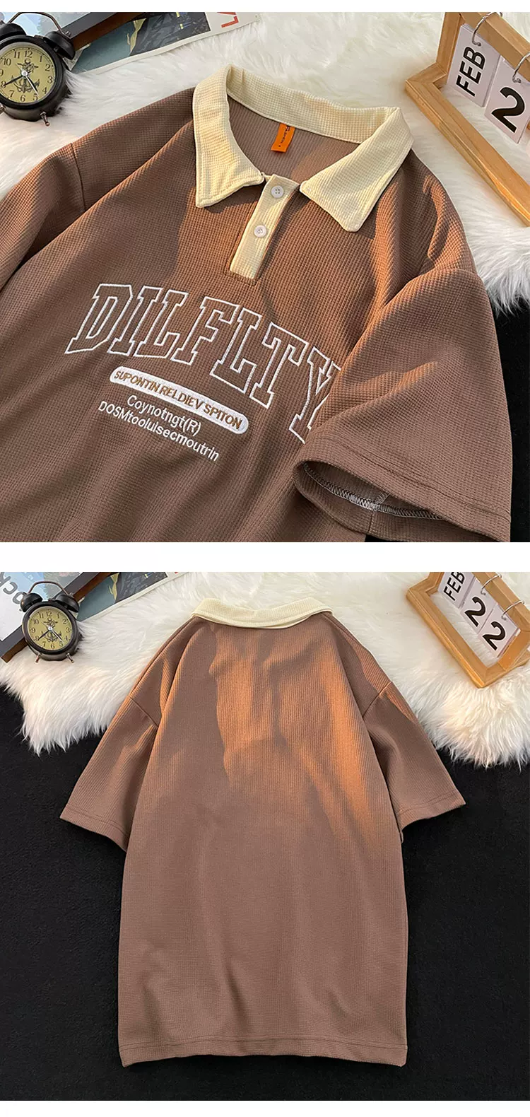 - Áo polo retro Mỹ dành cho nam, tay ngắn, thương hiệu thời trang mùa hè, áo thun dệt kim waffle, dáng rộng, đa năng, phong cách cặp đôi, tay áo lửng.
