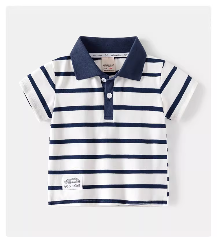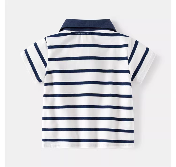 - Áo polo sọc trẻ em kiểu mới hè 2025, áo thun bé trai cổ Đức tay ngắn, áo bé sơ sinh tay ngắn mỏng thời trang