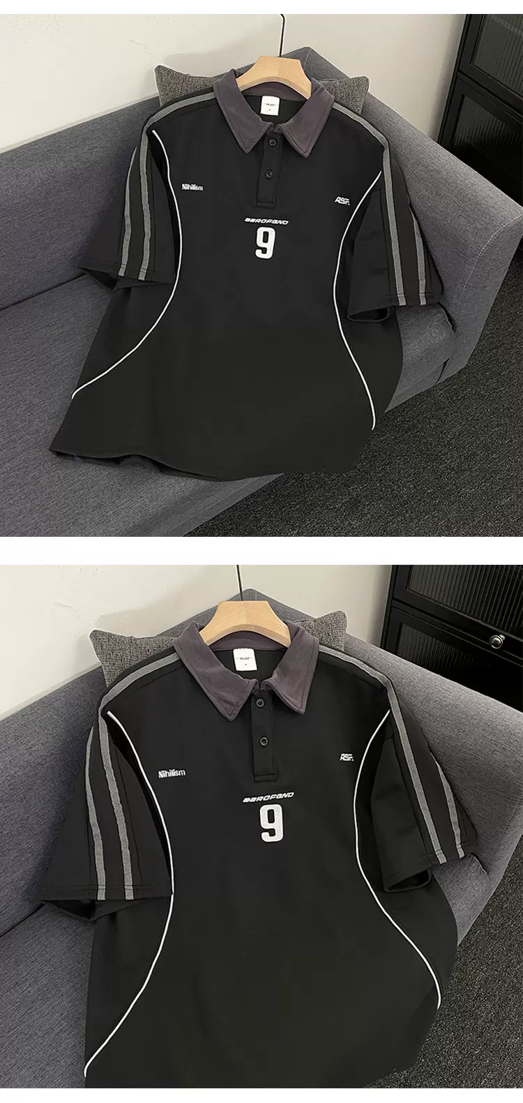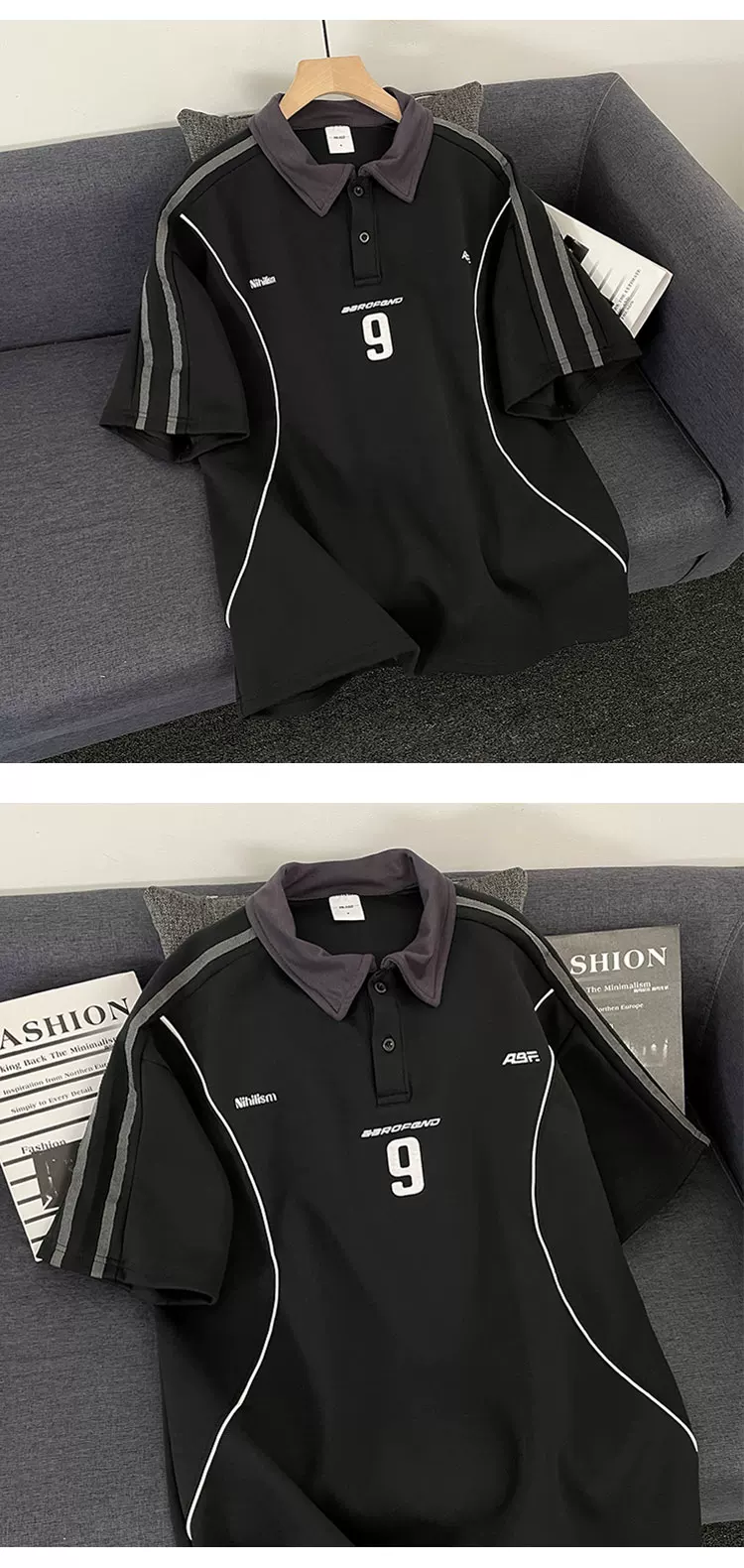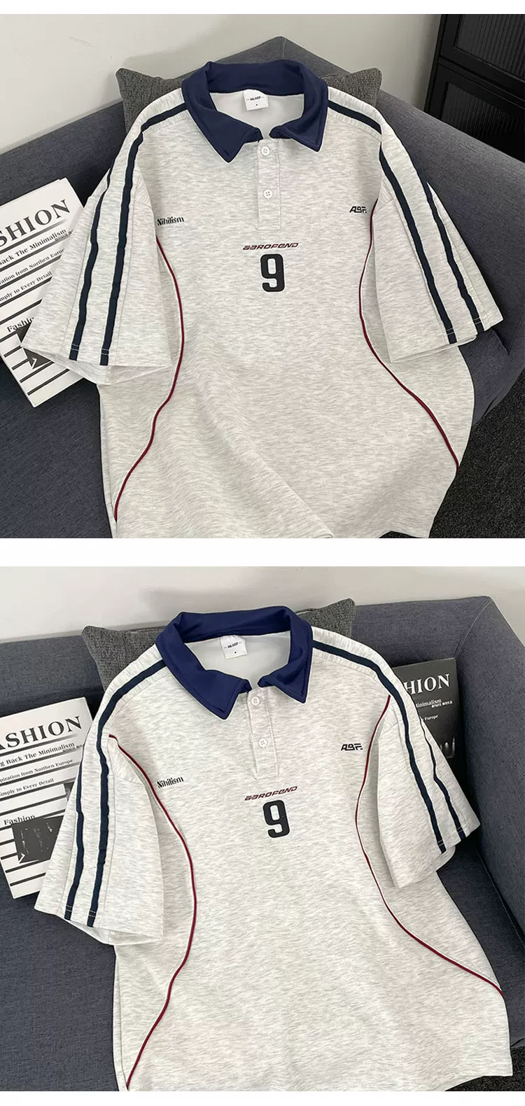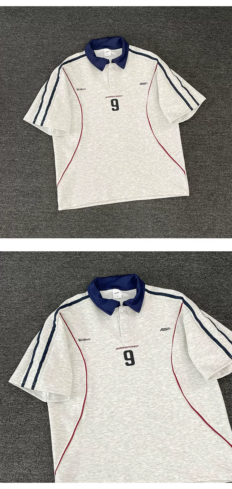 - Áo polo thể thao kiểu Mỹ dành cho nam và nữ, phối màu, có cổ, tay ngắn, thiết kế thời thượng, áo bóng rổ dáng rộng.