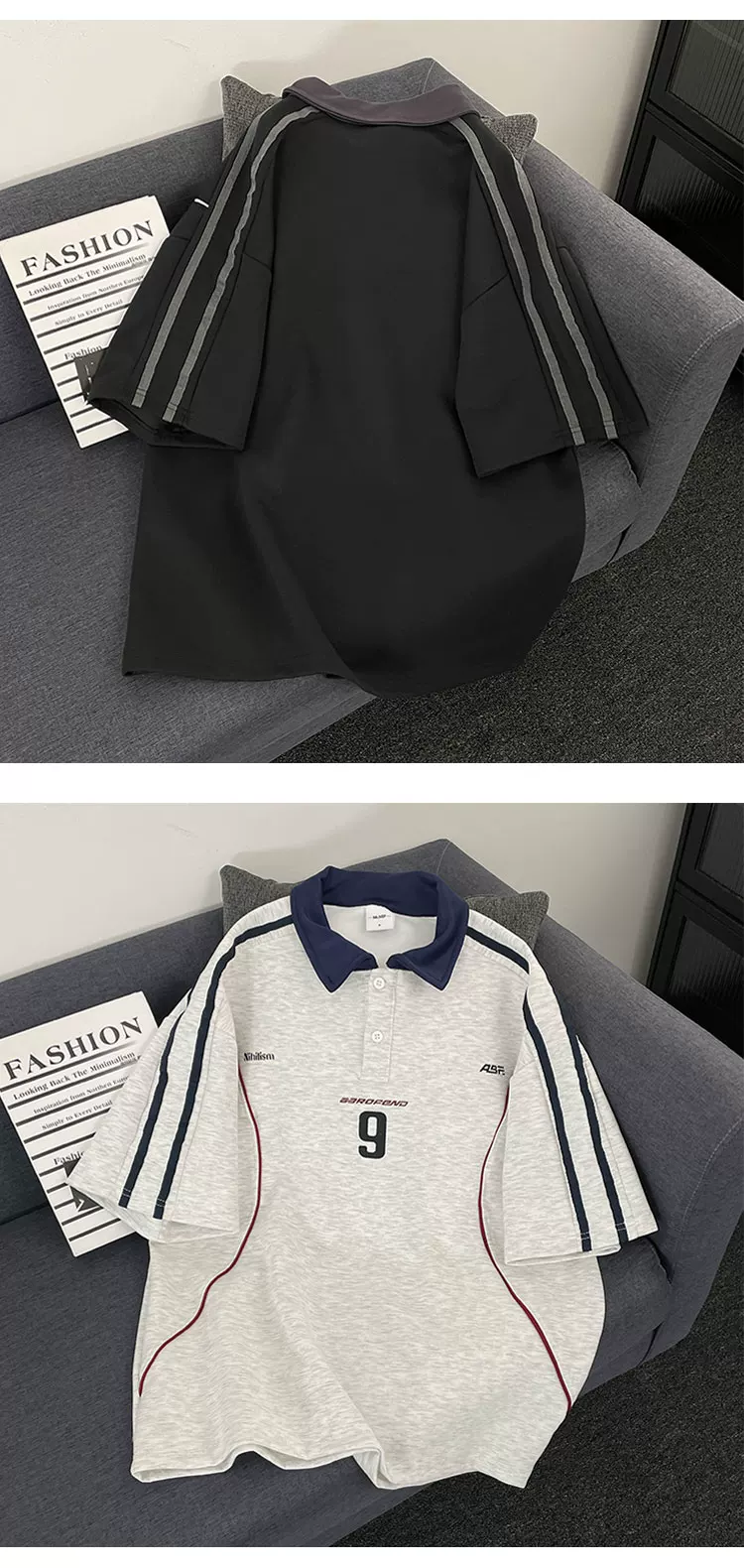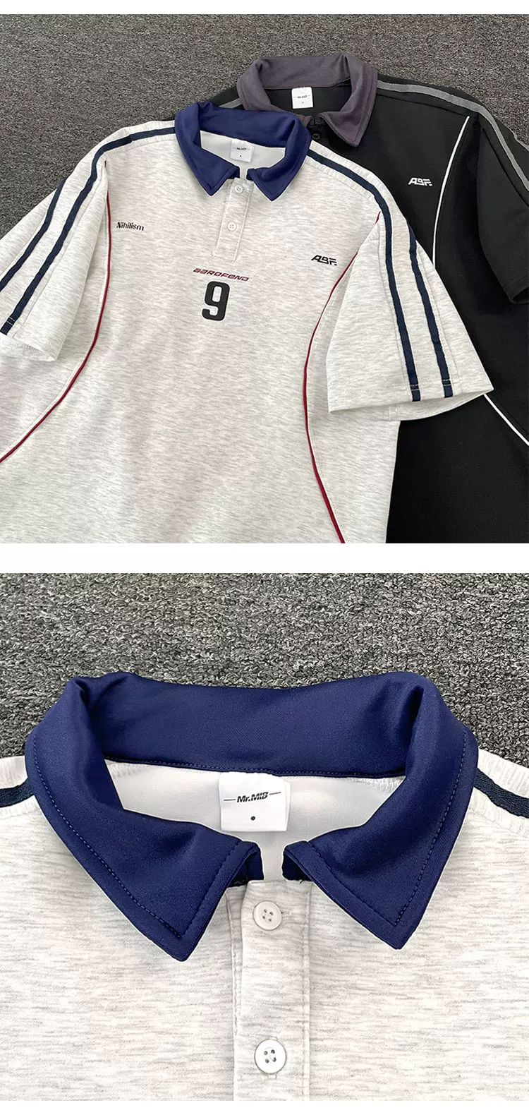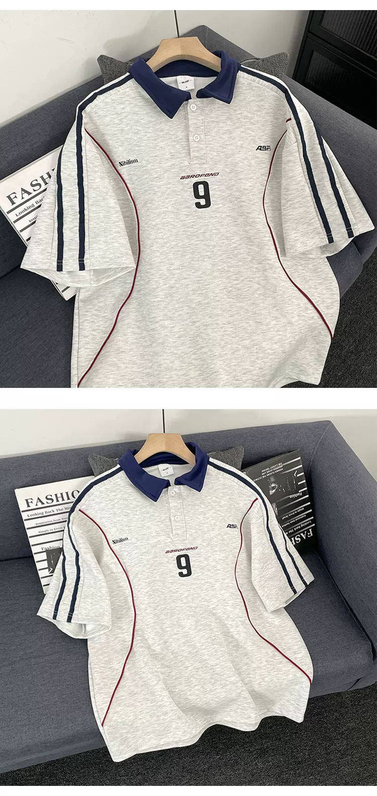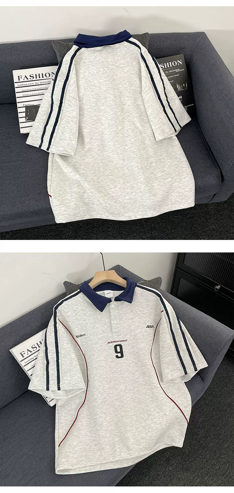 - Áo polo thể thao kiểu Mỹ dành cho nam và nữ, phối màu, có cổ, tay ngắn, thiết kế thời thượng, áo bóng rổ dáng rộng.