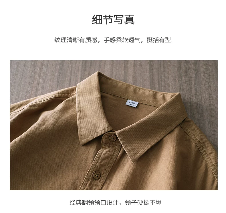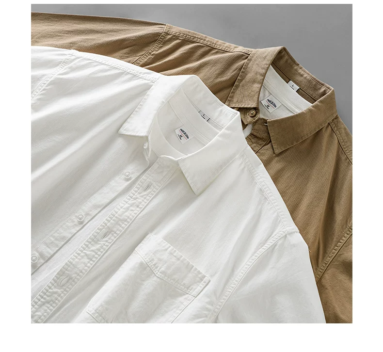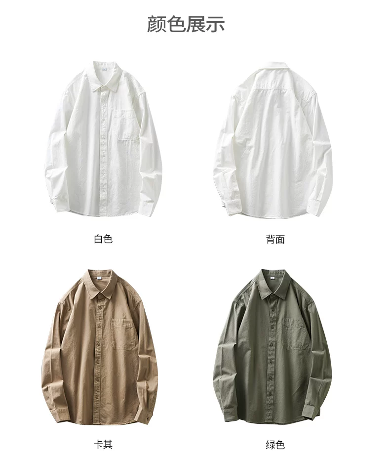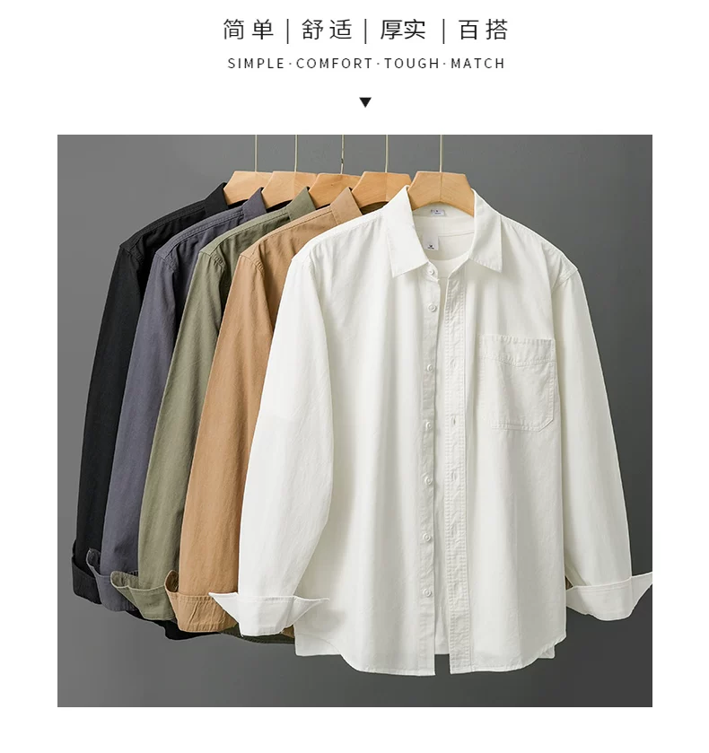 - Áo sơ mi cotton nguyên chất 350G dày dặn dành cho nam, tay dài, mùa xuân thu, màu trắng, kiểu dáng cổ điển Mỹ.