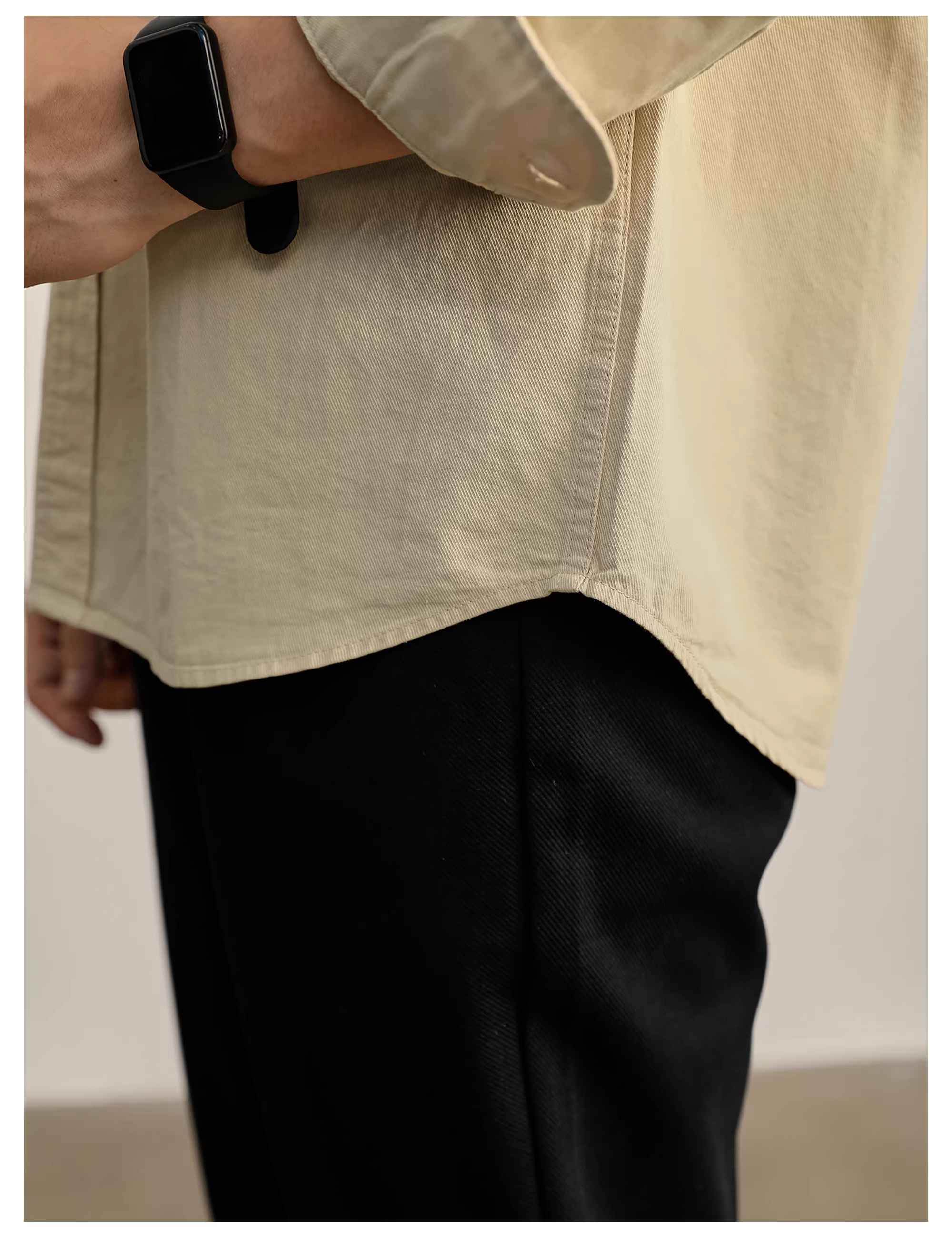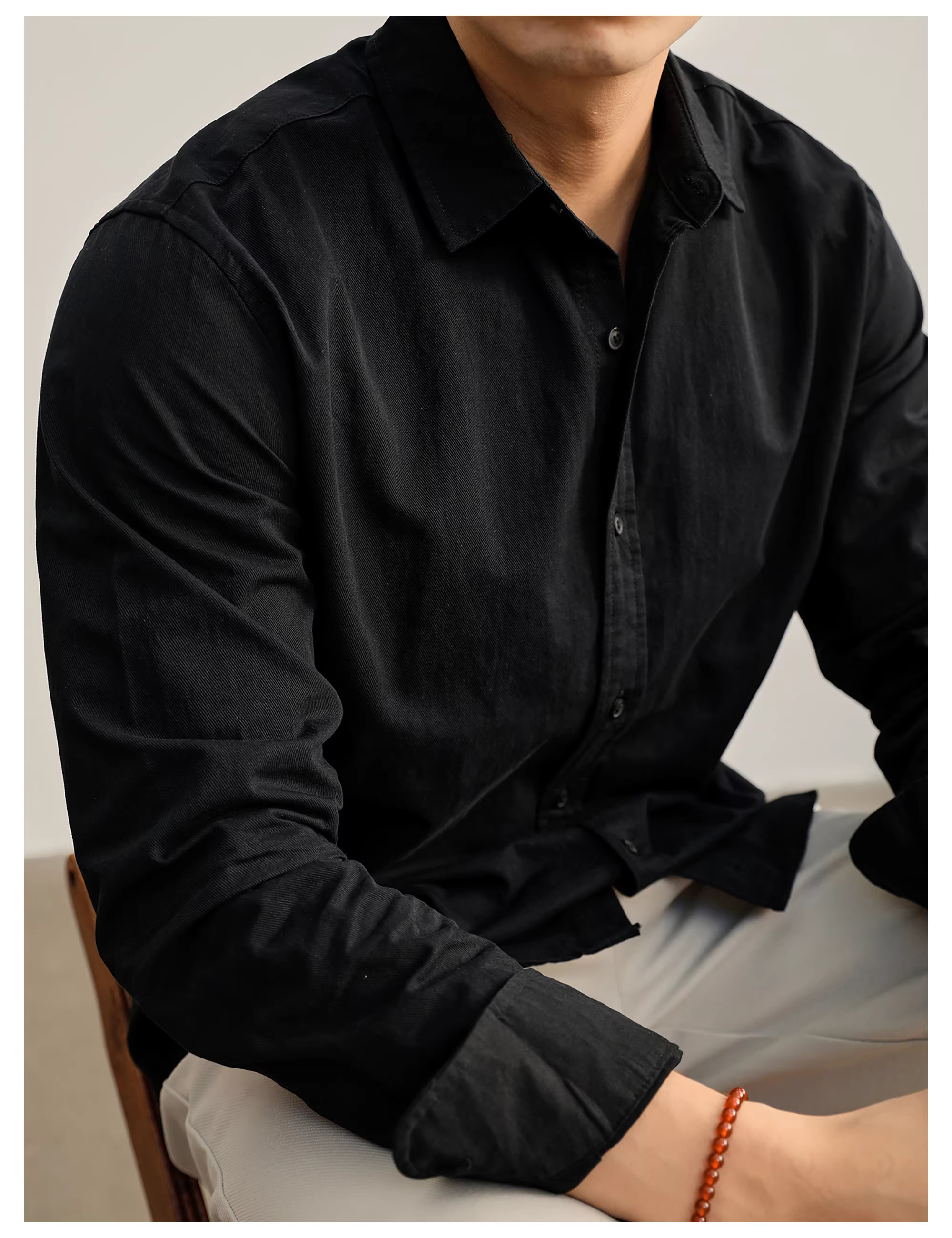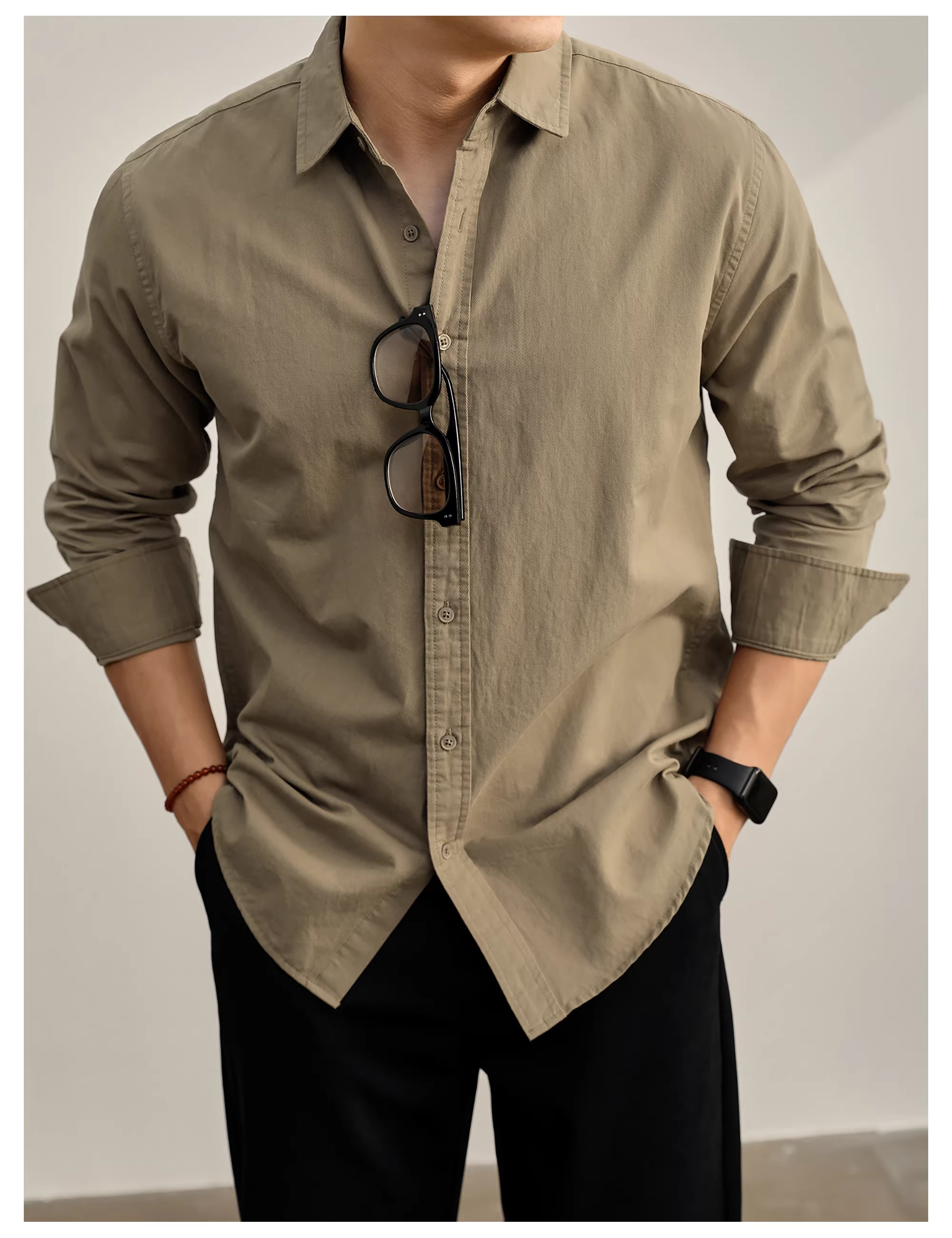 - Áo sơ mi dài tay chất liệu cotton nguyên chất, kiểu dáng nhiều lớp, phong cách mùa thu, thoải mái, nghệ thuật, phong cách Old Money, cổ trụ dành cho nam.