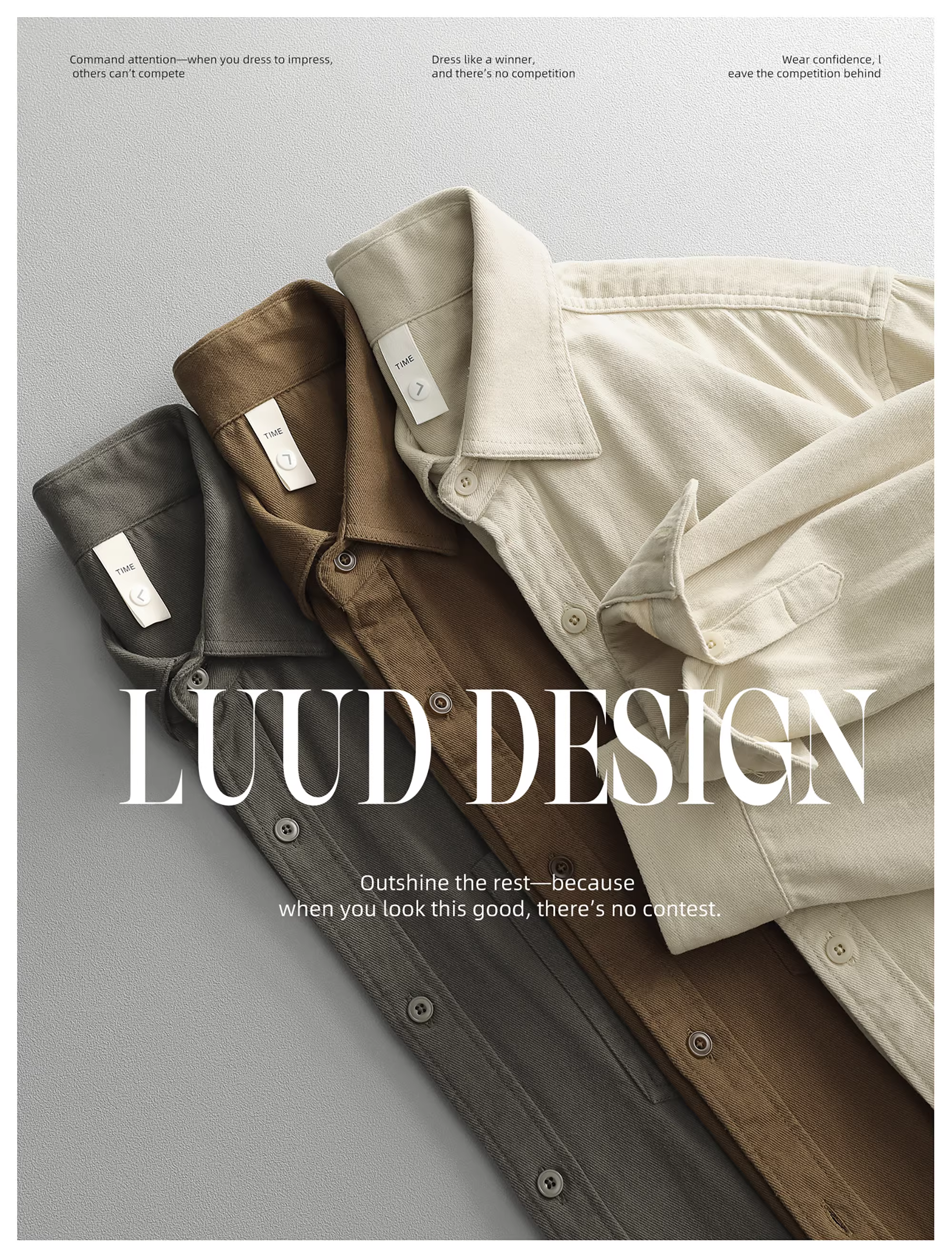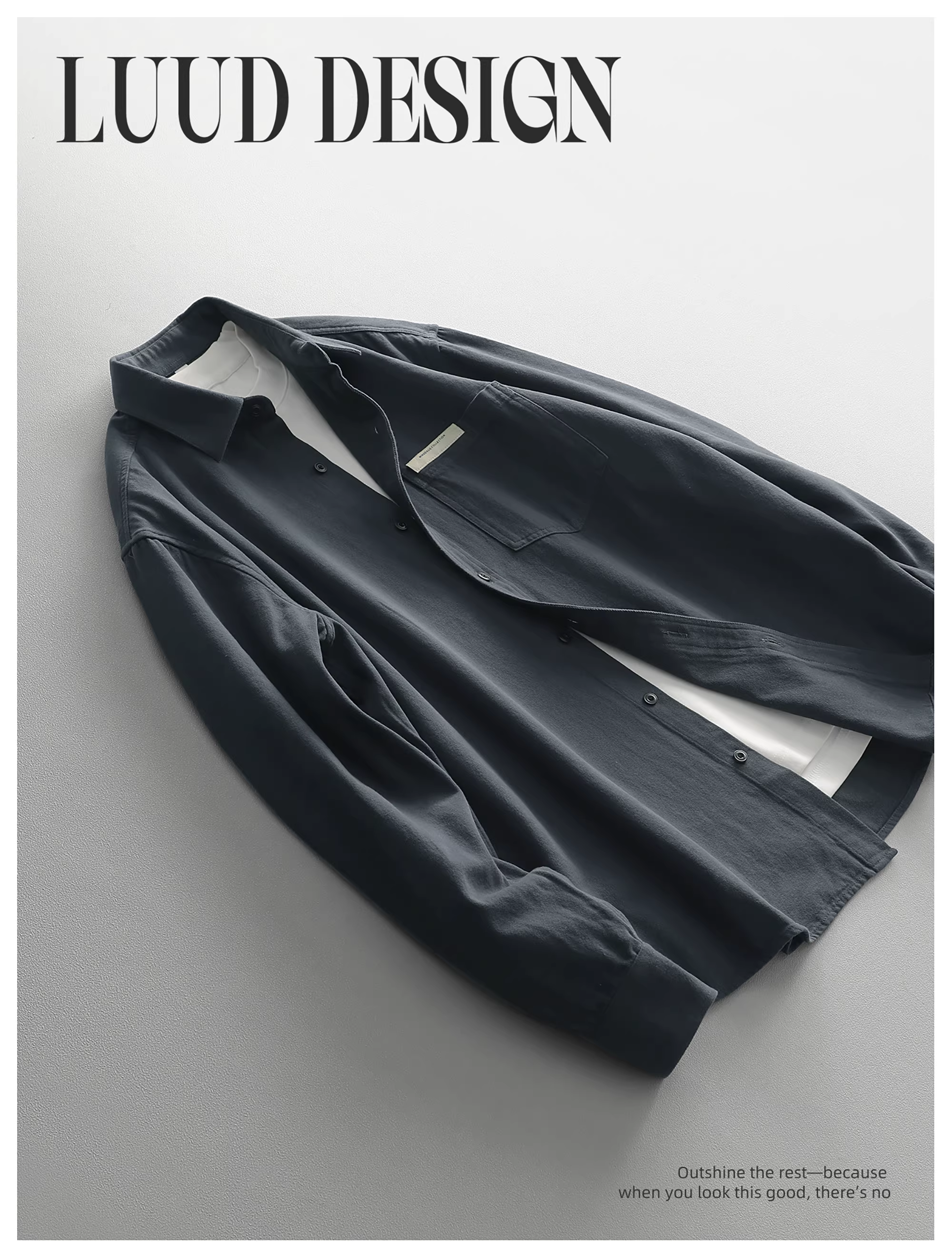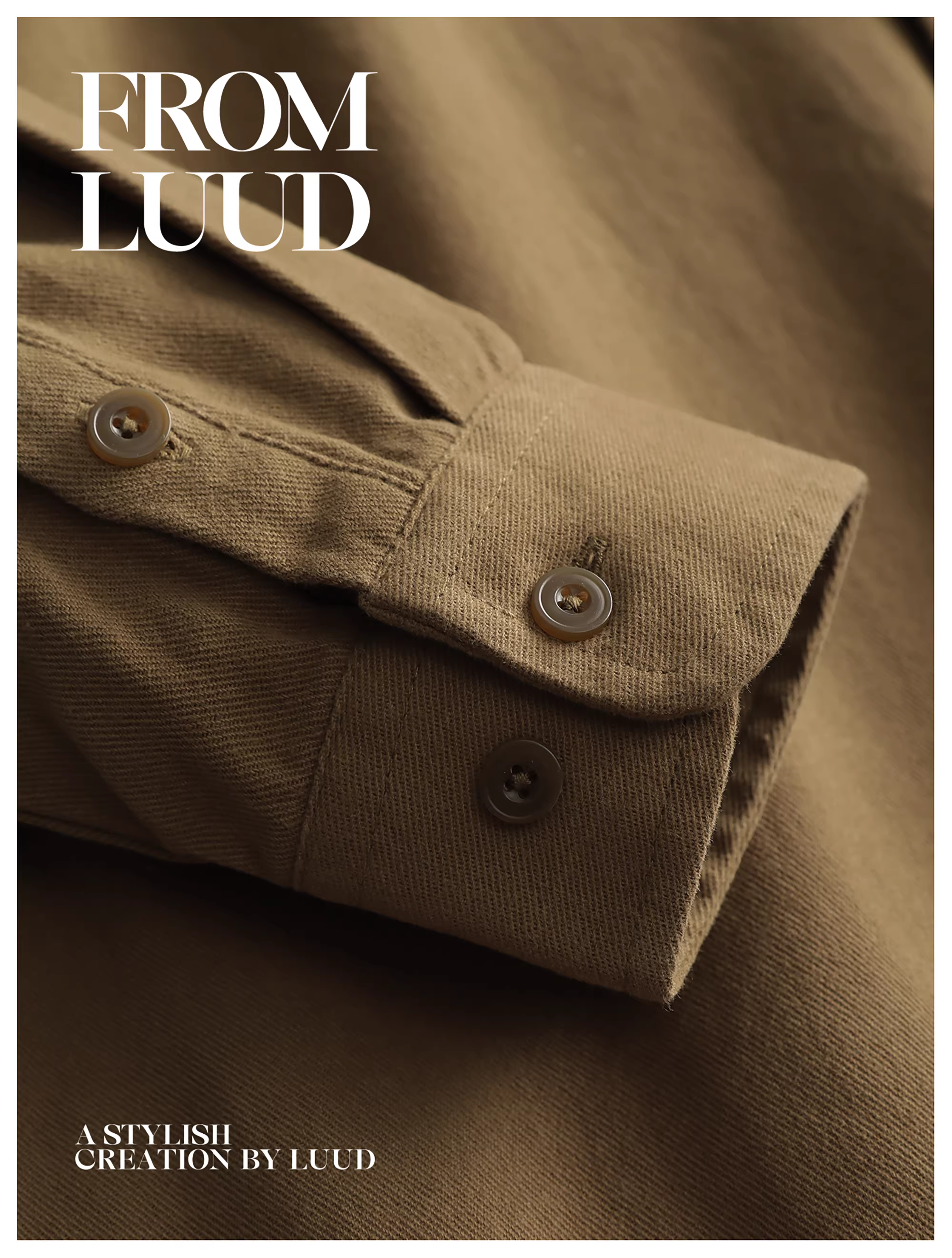 Áo sơ mi dài tay chất liệu cotton nguyên chất màu trơn LUUD dành cho nam, kiểu dáng đơn giản mới năm 2025, có túi, phong cách áo khoác thường ngày