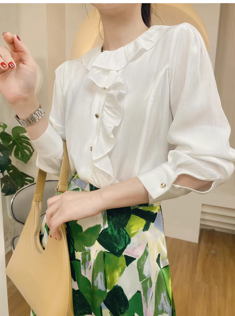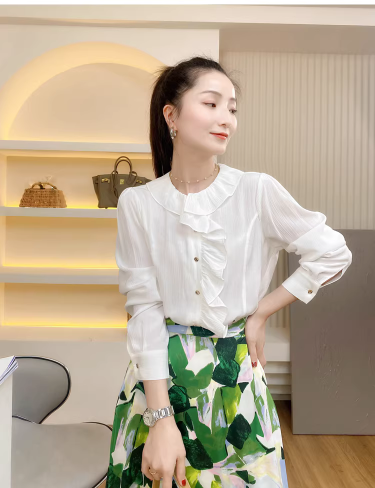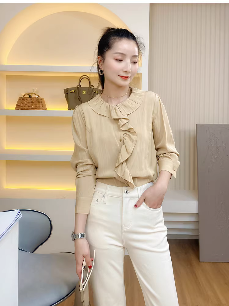 闭眼可入的一款法式荷叶领小衫