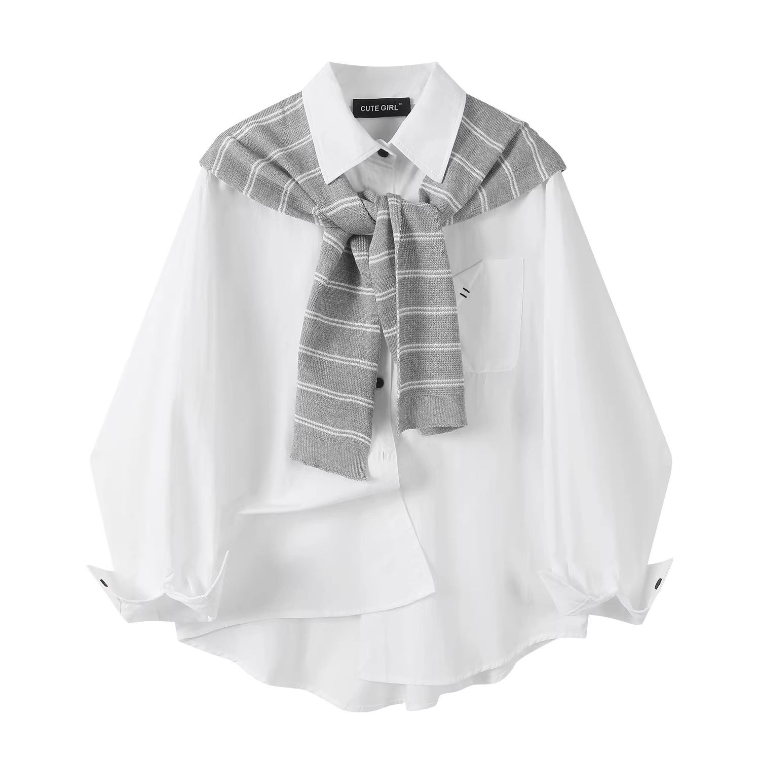 - Áo sơ mi dài tay cổ polo sọc phong cách Hàn Quốc dễ thương dành cho nữ đầu thu dáng rộng giản dị đa năng áo sơ mi độc đáo
