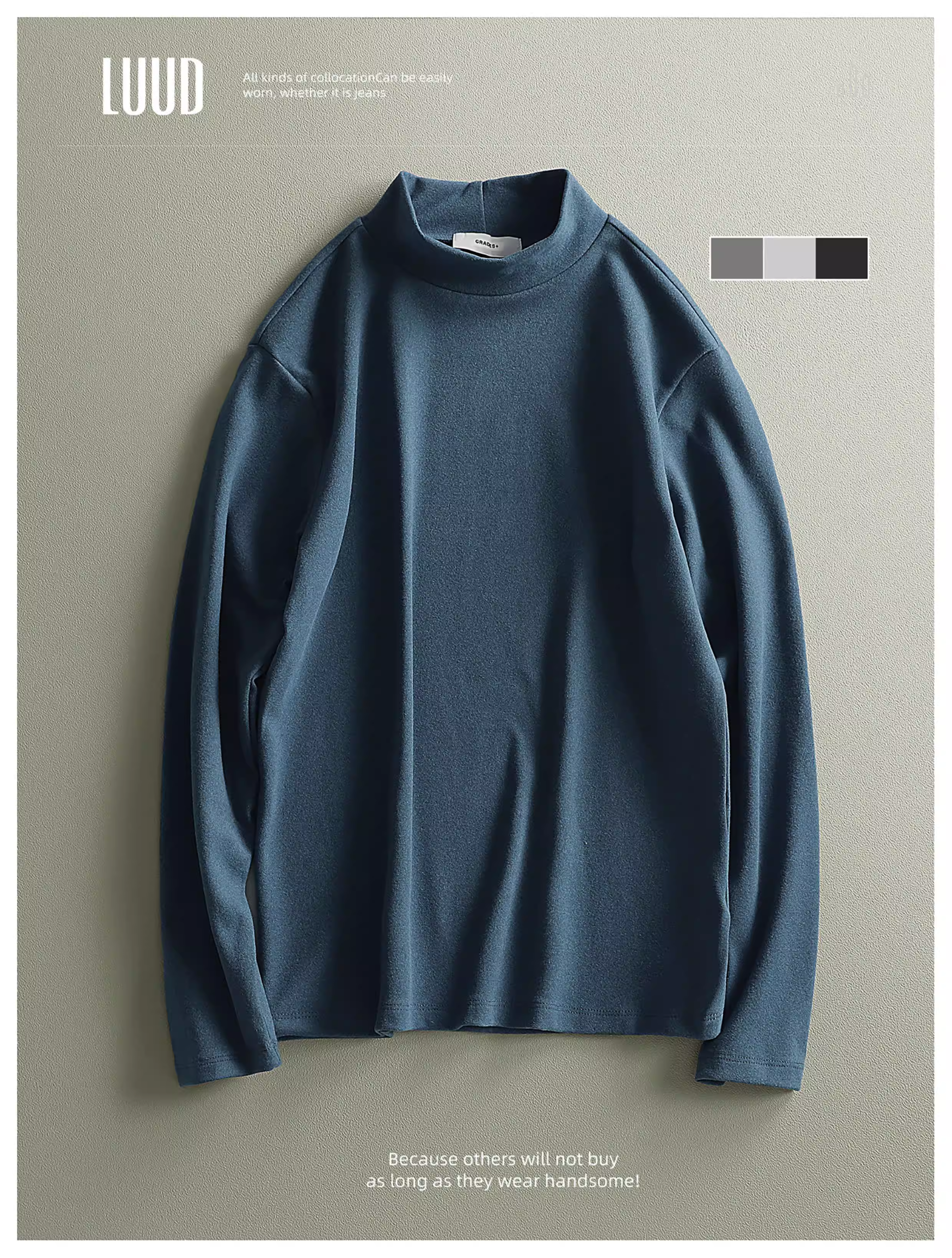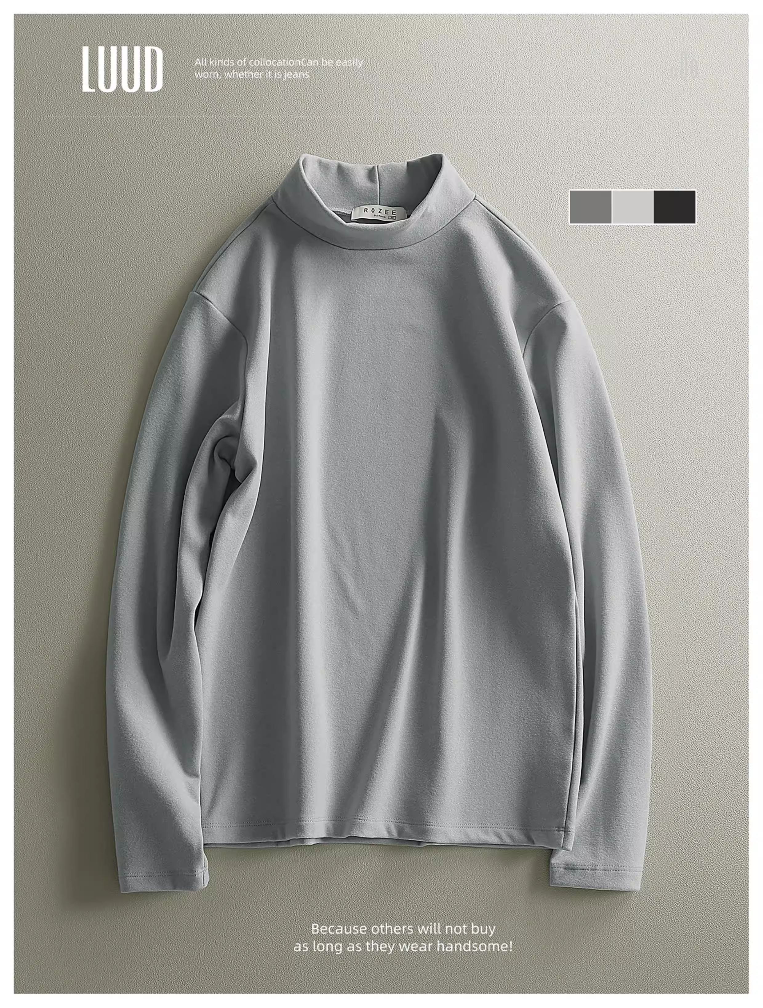Áo sơ mi dài tay công nghệ đen tuần hoàn nhiệt thế hệ mới LUUD dành cho nam giới trong mùa thu đông, áo thun dáng ôm cổ cao nửa cổ bằng nhung Đức ấm áp