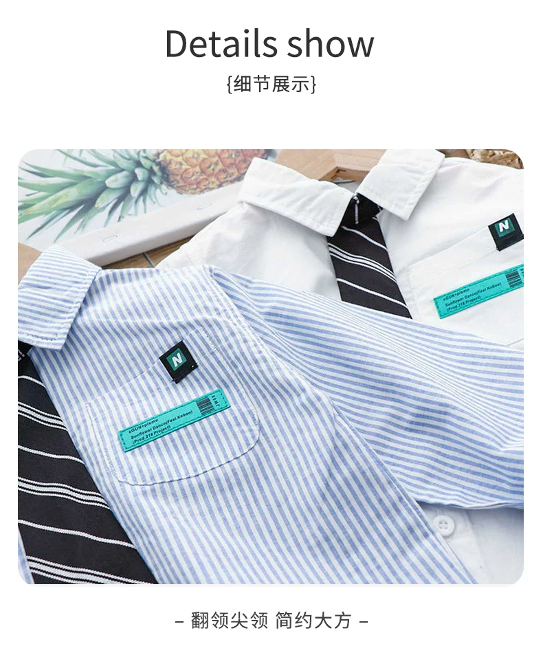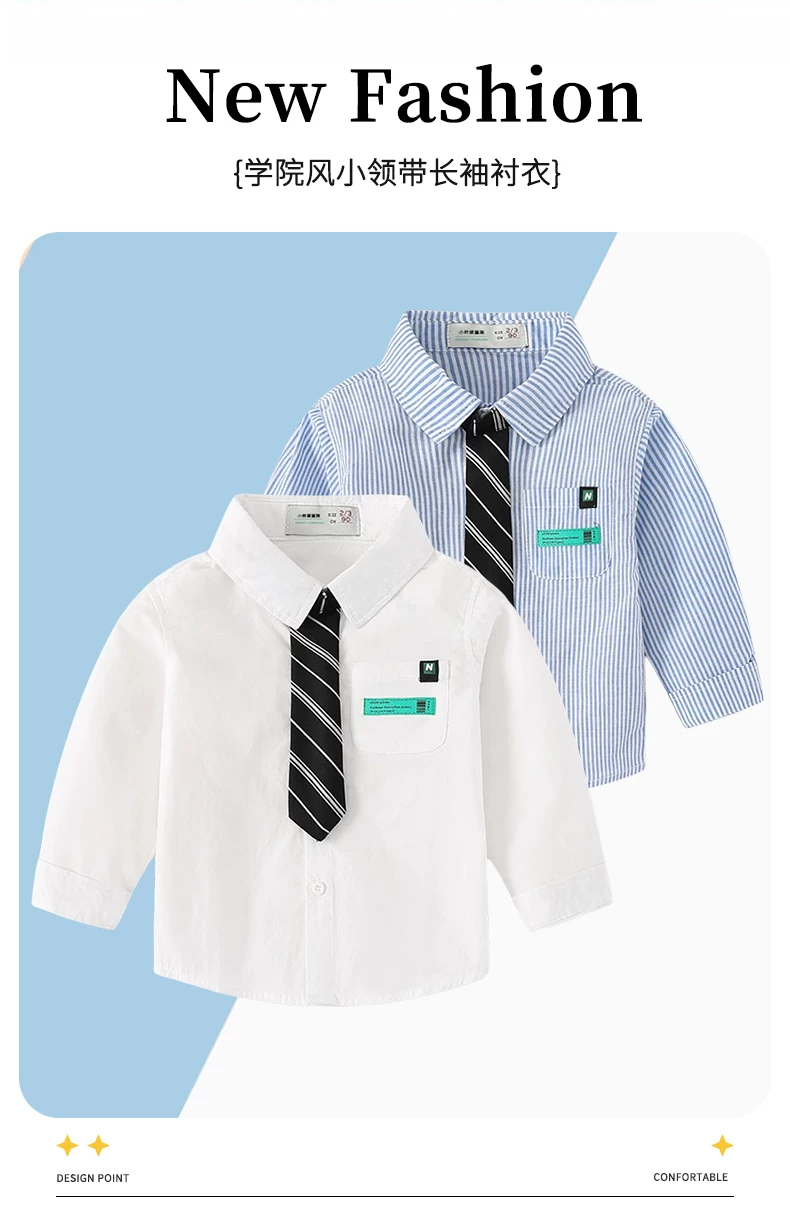 - Áo sơ mi dài tay kẻ sọc cho bé trai, kiểu xuân thu, thời trang mới năm 2025, áo sơ mi trẻ em có cổ kèm cà vạt nhỏ