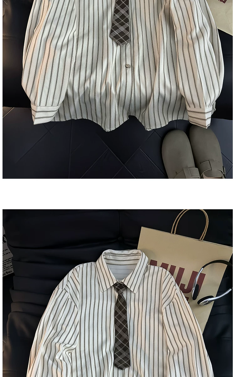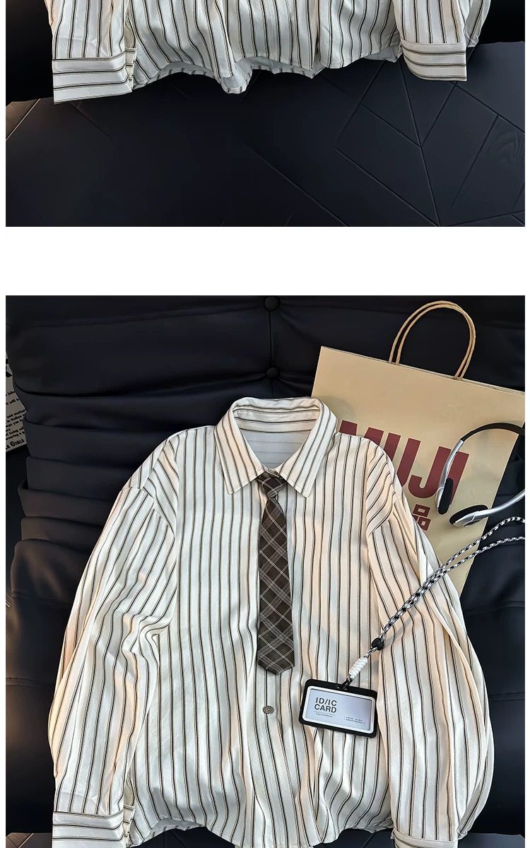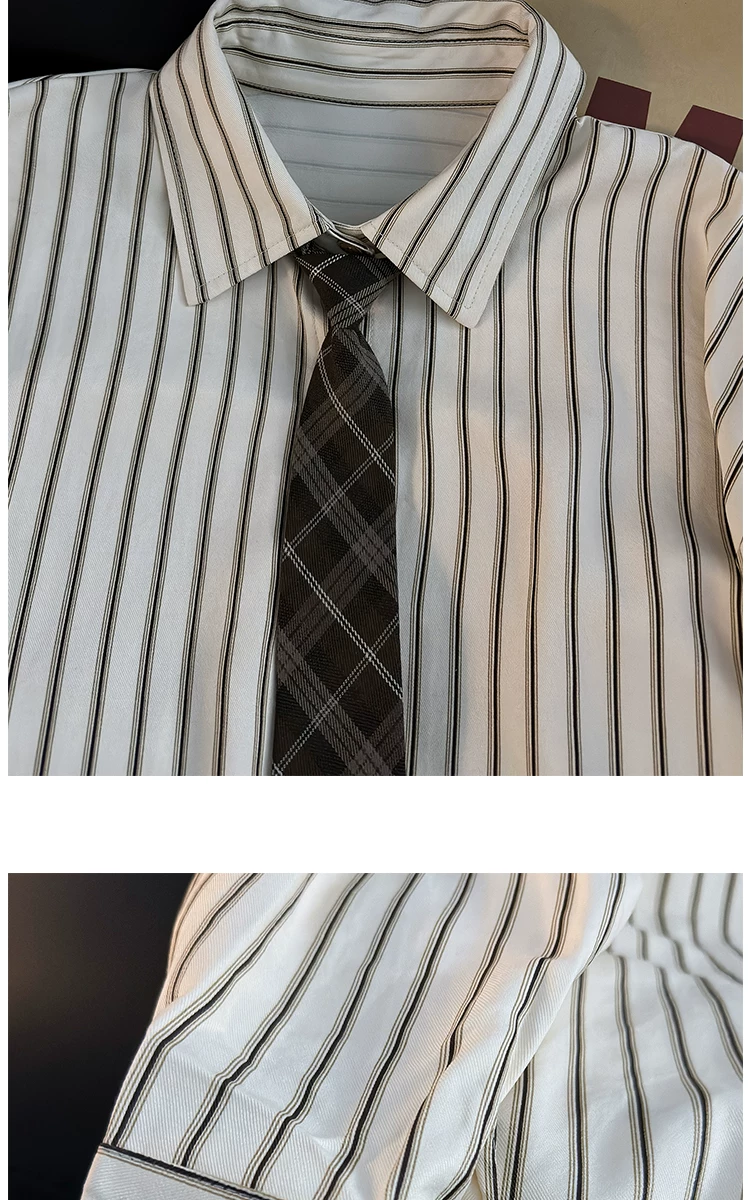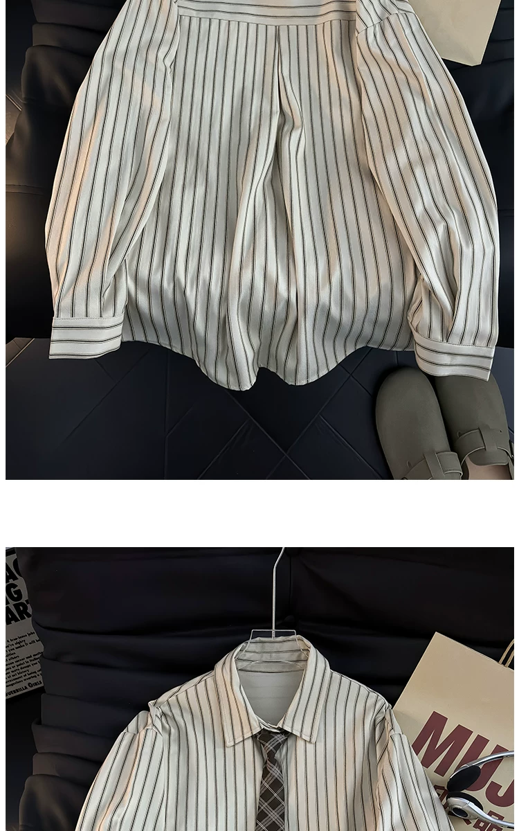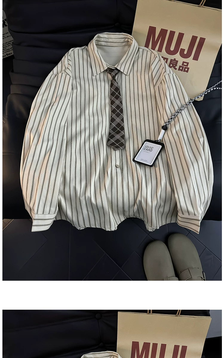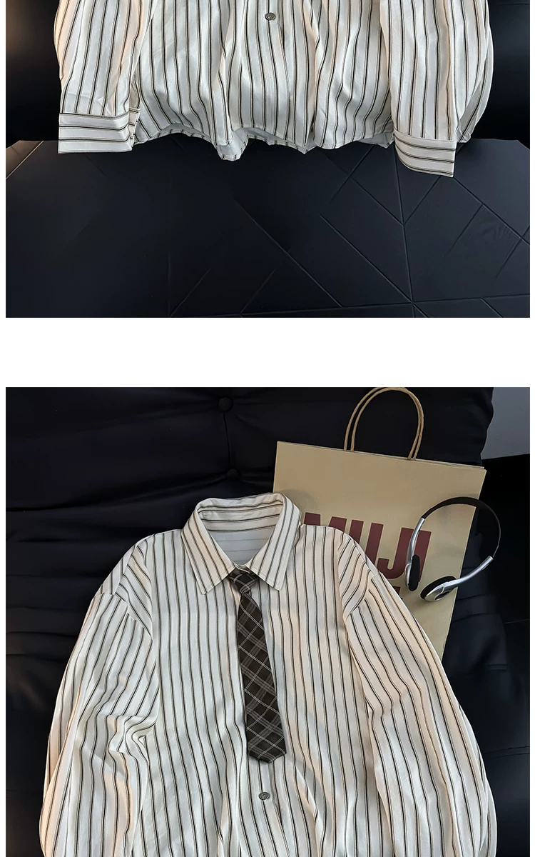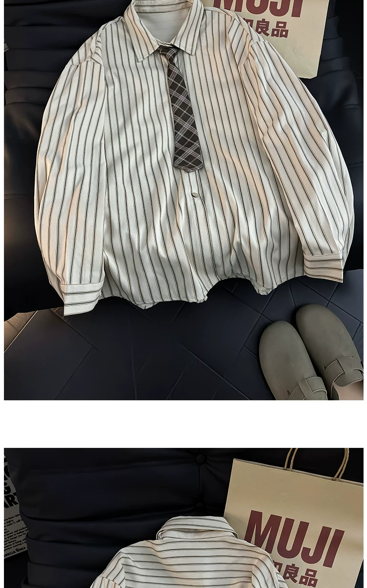 - Áo sơ mi dài tay kẻ sọc phong cách Nhật Bản dành cho nam, áo kiểu dáng rộng hợp thời trang mùa hè, áo khoác sơ mi kiểu cổ điển.