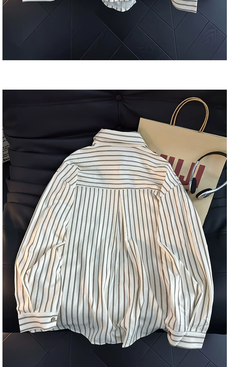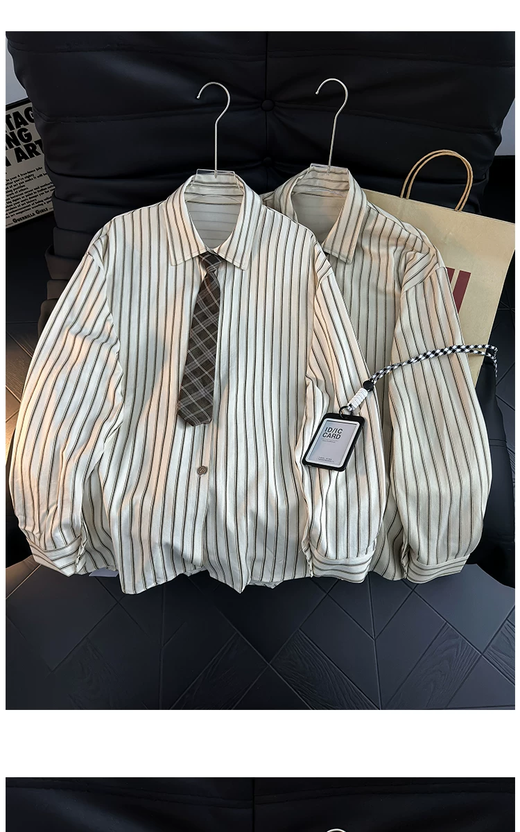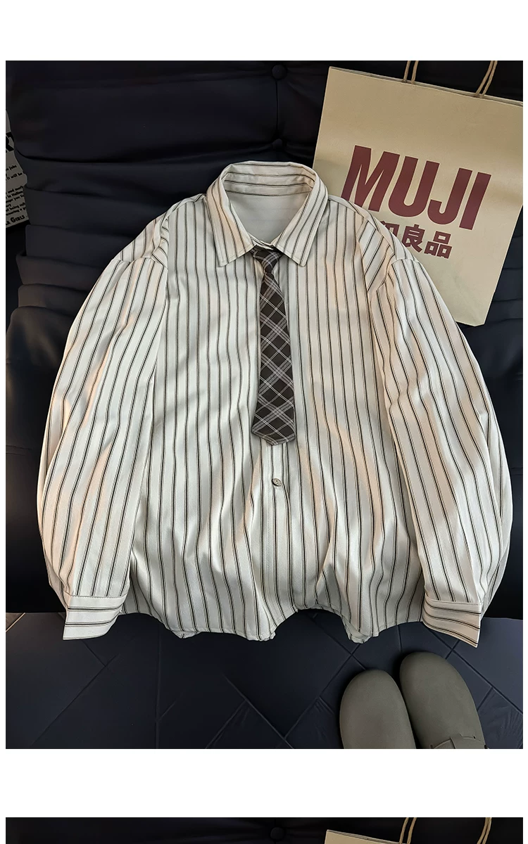 Áo sơ mi dài tay kẻ sọc phong cách Nhật Bản dành cho nam, áo kiểu dáng rộng hợp thời trang mùa hè, áo khoác sơ mi kiểu cổ điển.