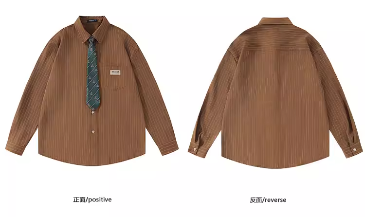 Áo sơ mi dài tay kiểu dáng cổ điển Mỹ, sọc, phong cách đại học, dành cho nam và nữ, thiết kế oversize, áo khoác đôi.