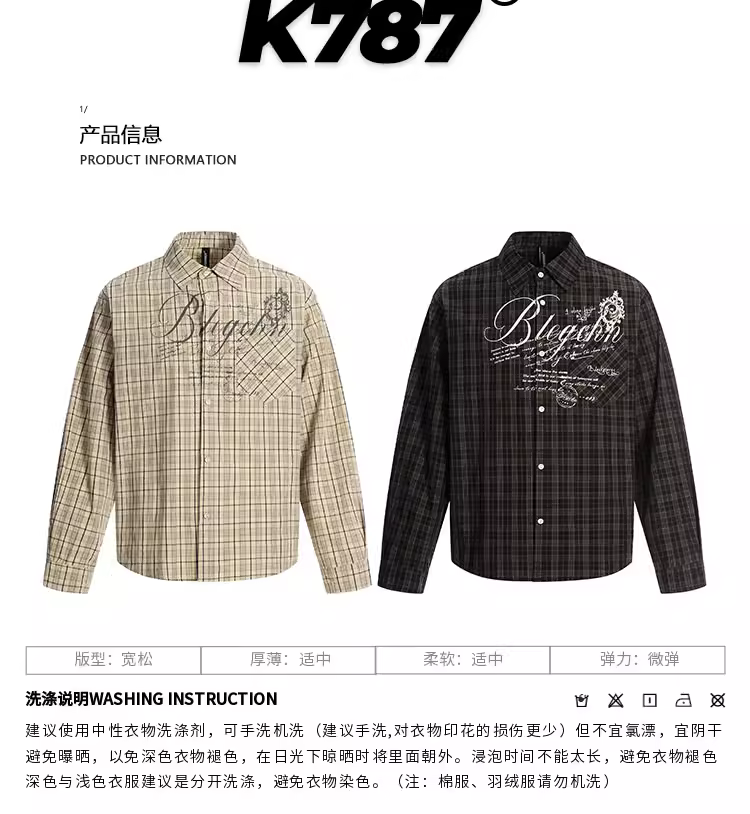 - Áo sơ mi dài tay kiểu graffiti cổ điển kiểu Mỹ K787 dành cho nam và nữ, áo khoác cặp đôi hip-hop giản dị cho mùa thu.