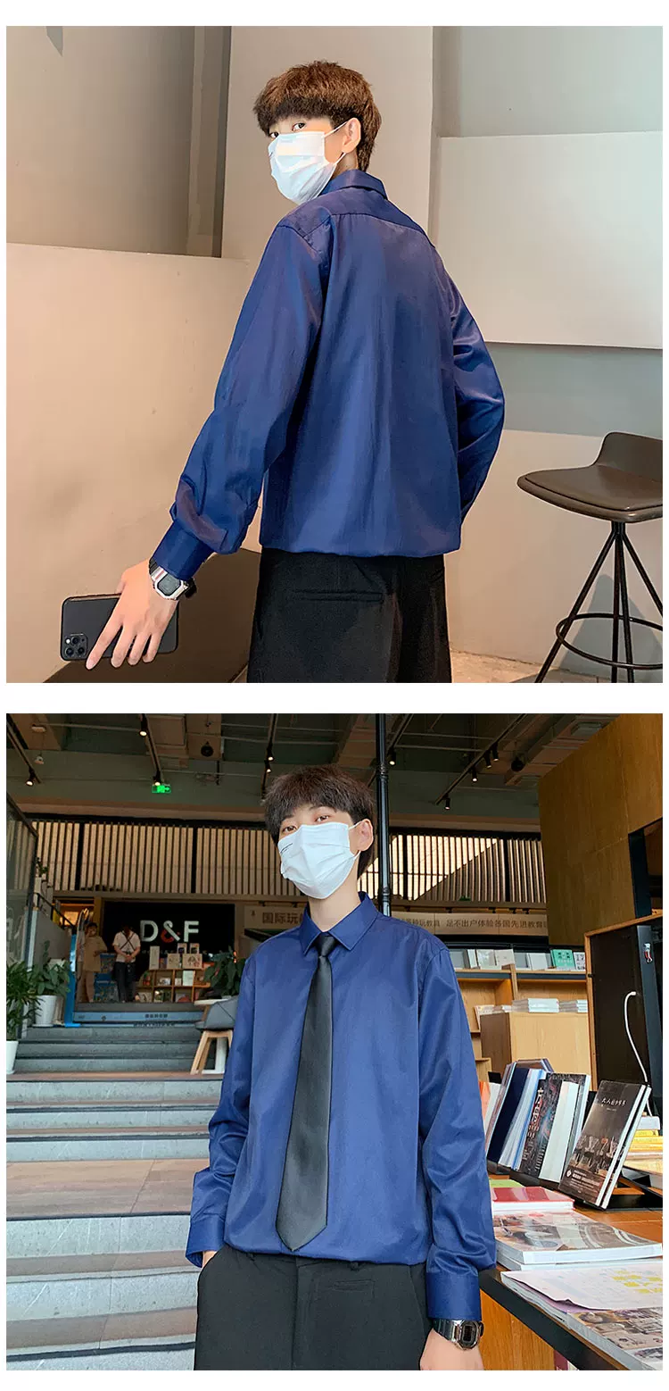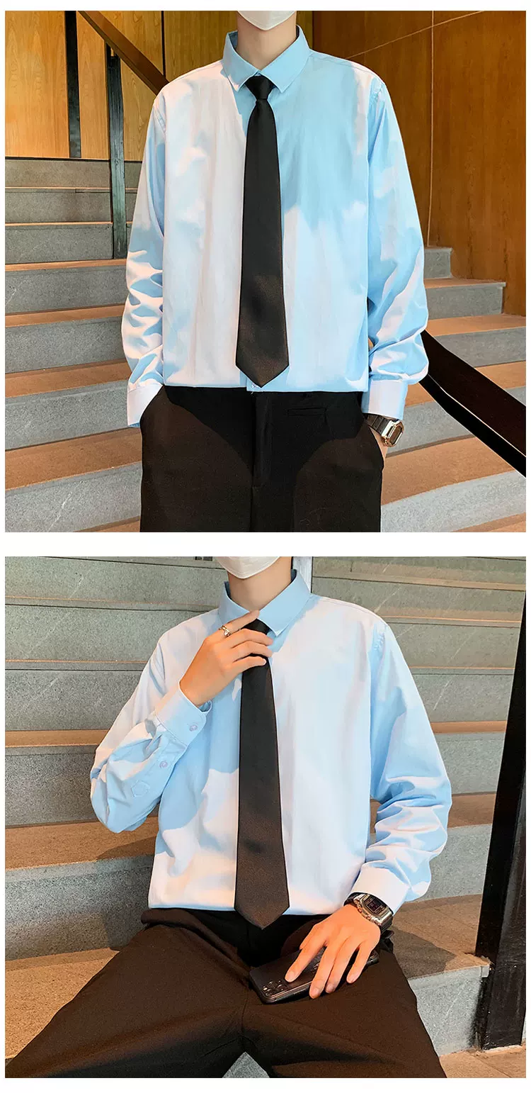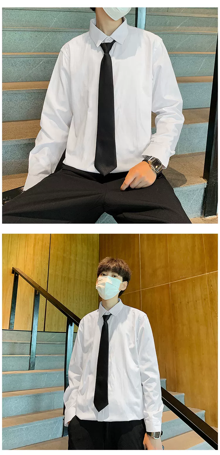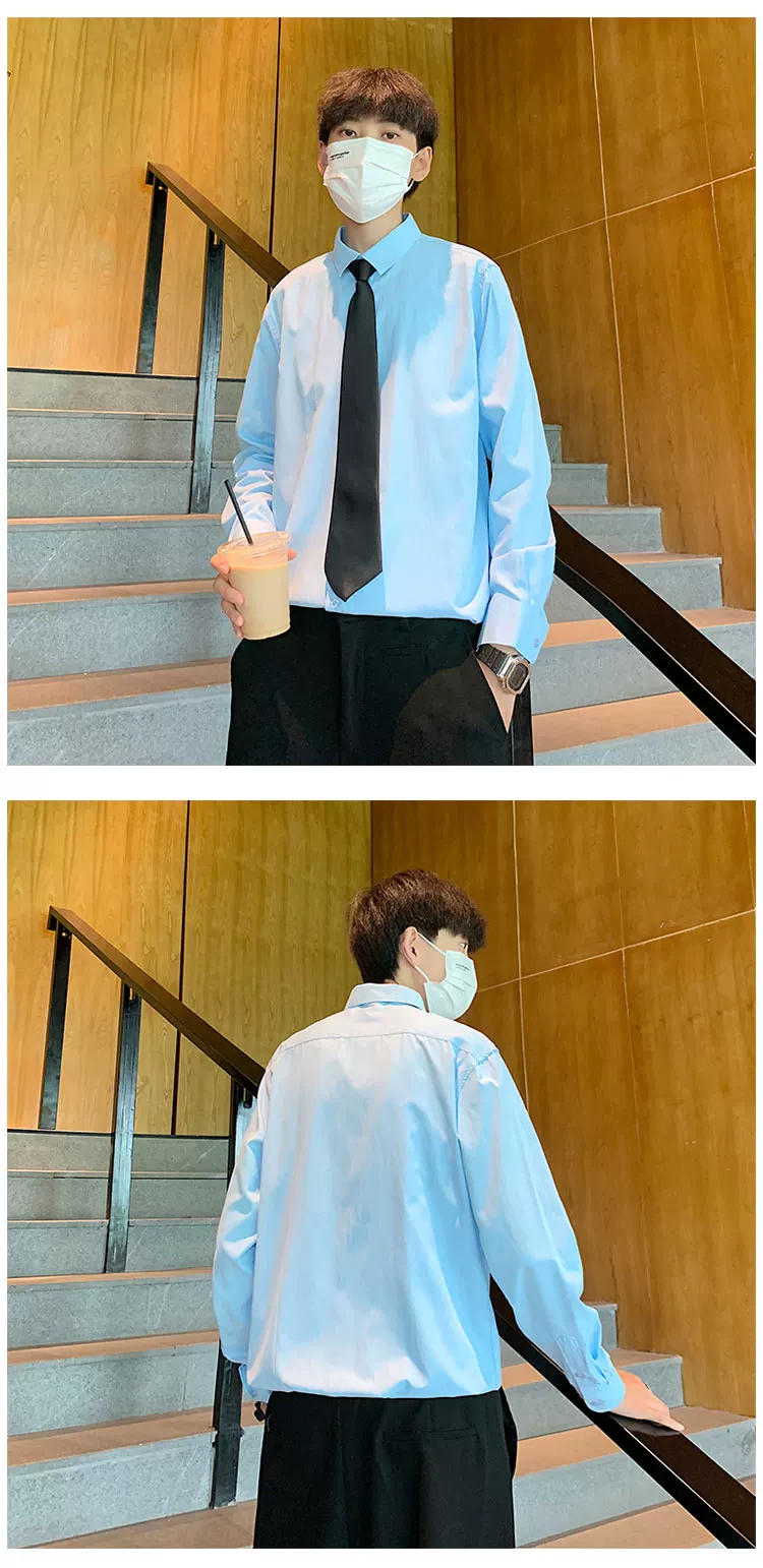 - Áo sơ mi dài tay mùa hè dành cho nam, áo sơ mi trắng trơn dáng rộng, phong cách Hàn Quốc thời thượng và đẹp trai.
