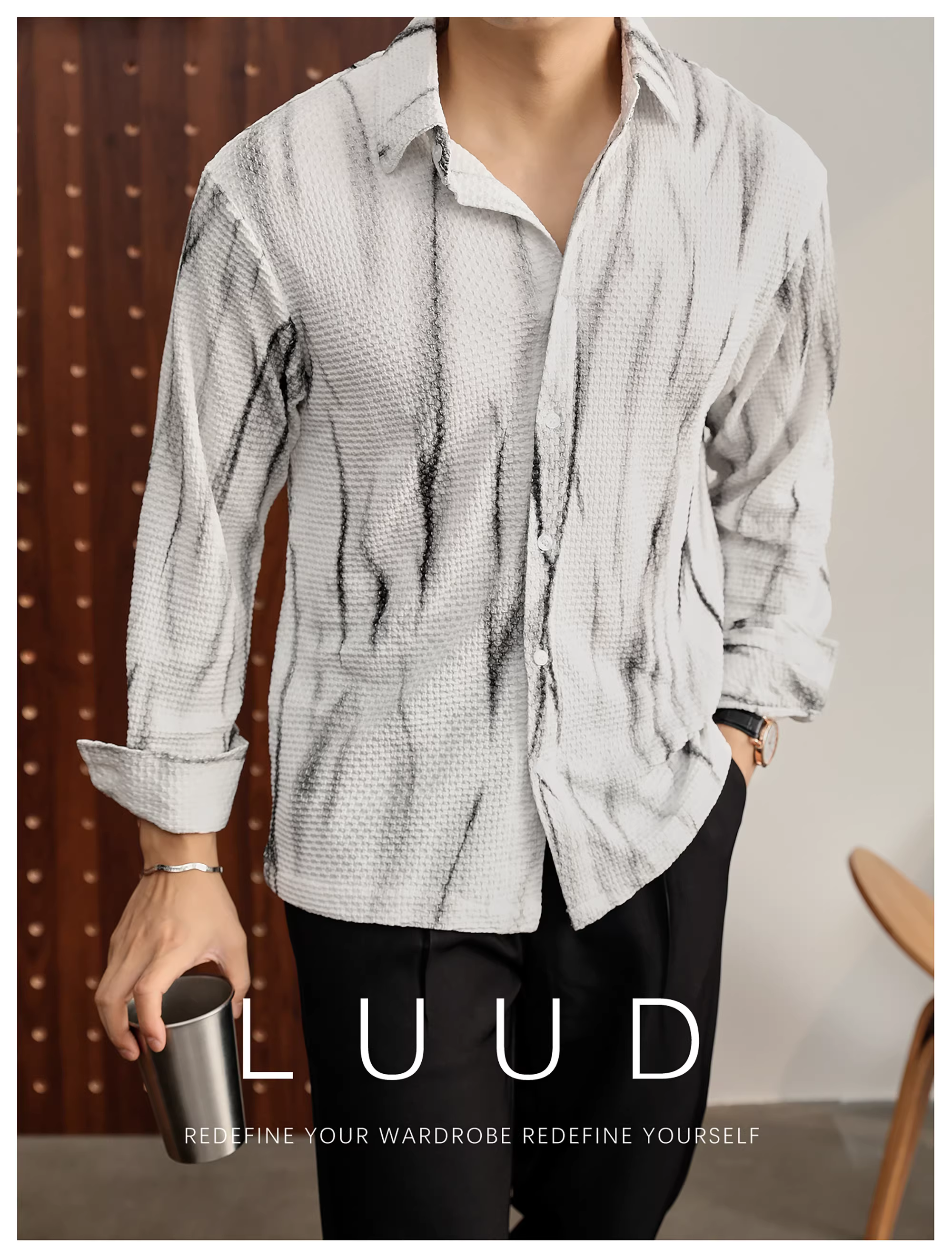 - Áo sơ mi dài tay nam in họa tiết mực nước phong cách độc đáo, họa tiết nổi bồng bềnh