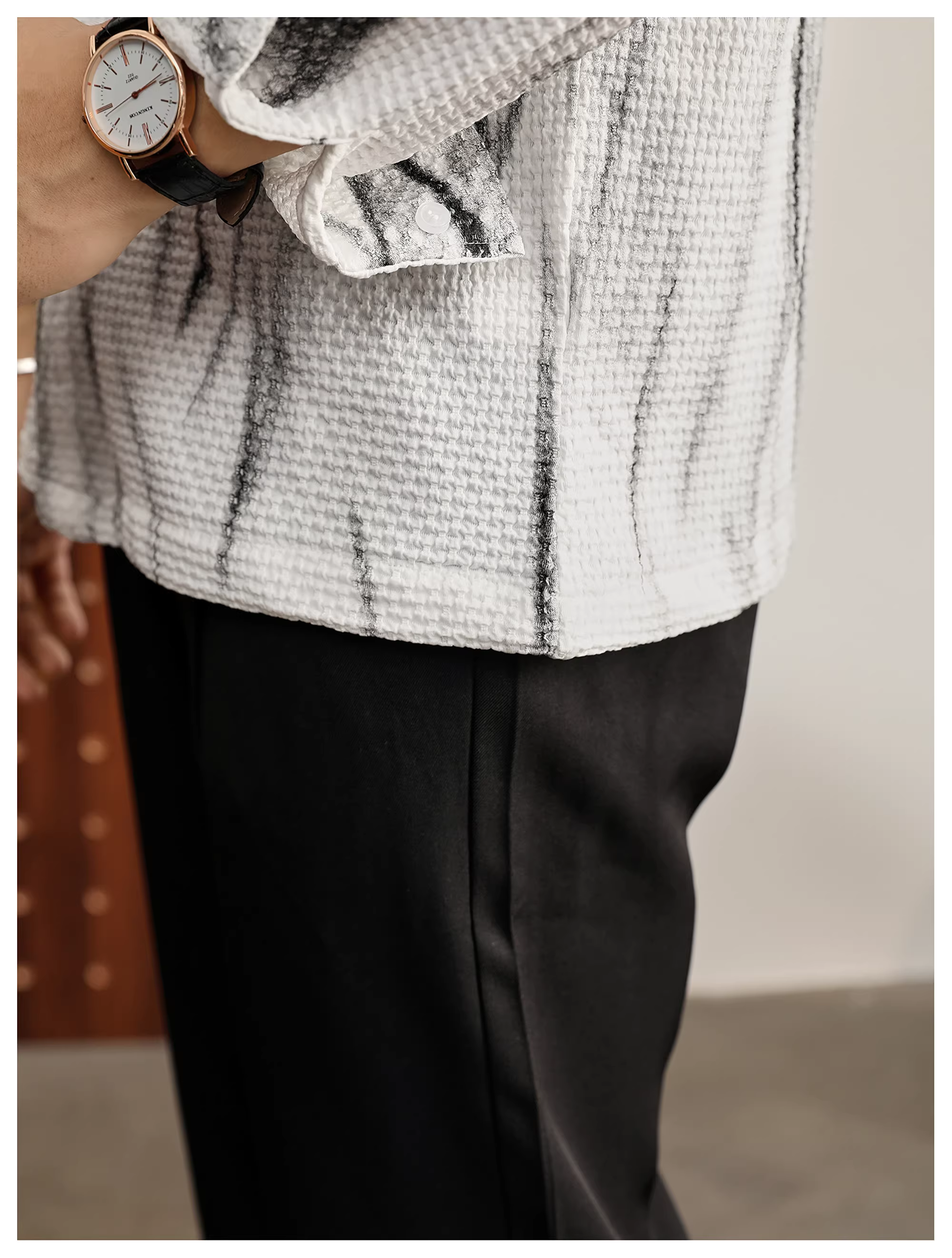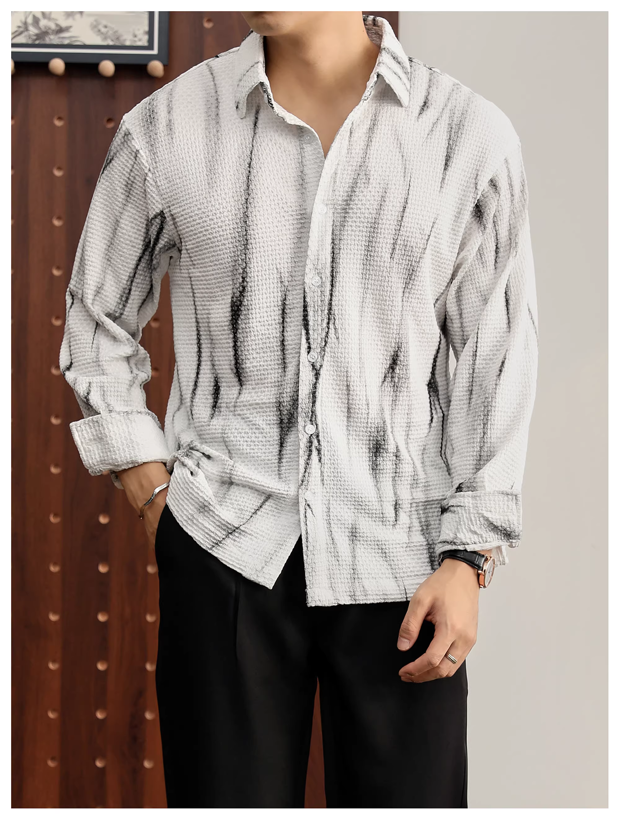 Áo sơ mi dài tay nam in họa tiết mực nước phong cách độc đáo, họa tiết nổi bồng bềnh