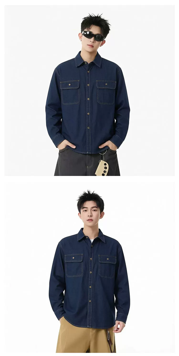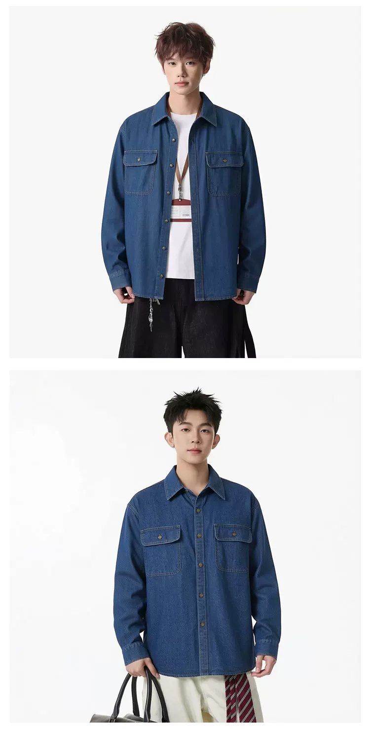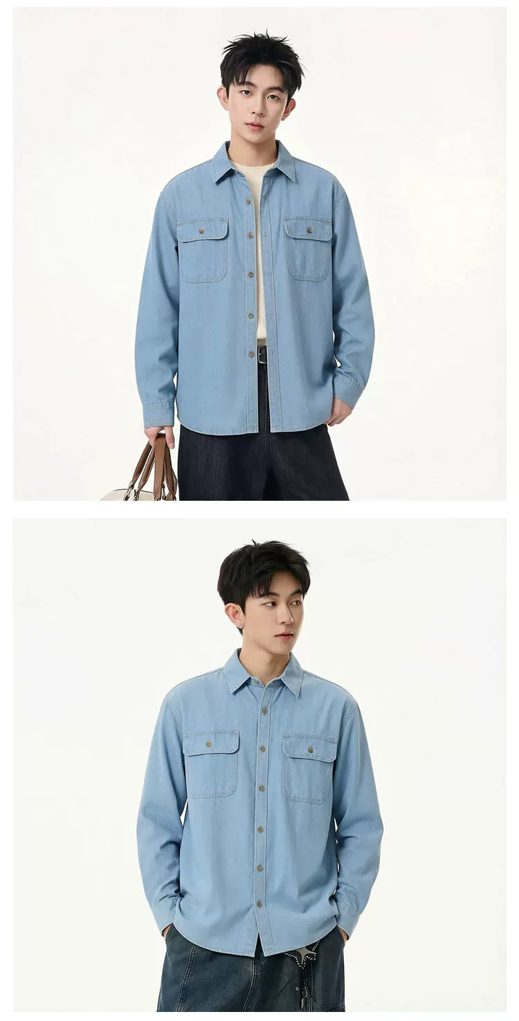 - Áo sơ mi denim kiểu Nhật dành cho nam, áo đa năng thường ngày mùa xuân thu, áo khoác sơ mi nhiều túi rộng rãi, hợp thời trang.