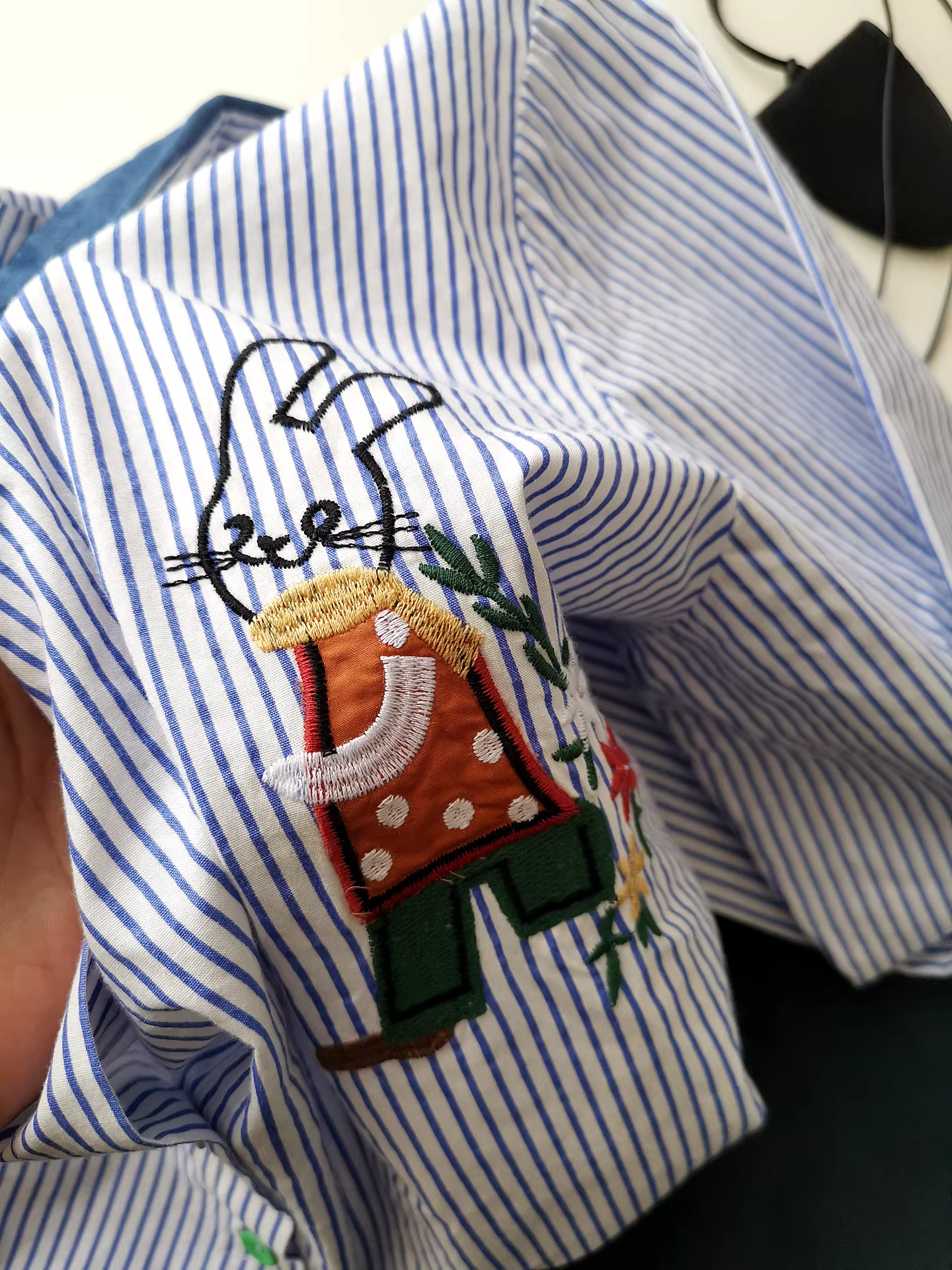 - Áo sơ mi denim phối màu, thêu hình thỏ, áo sơ mi dáng rộng, áo sơ mi dài tay đa năng để phối đồ mùa thu.