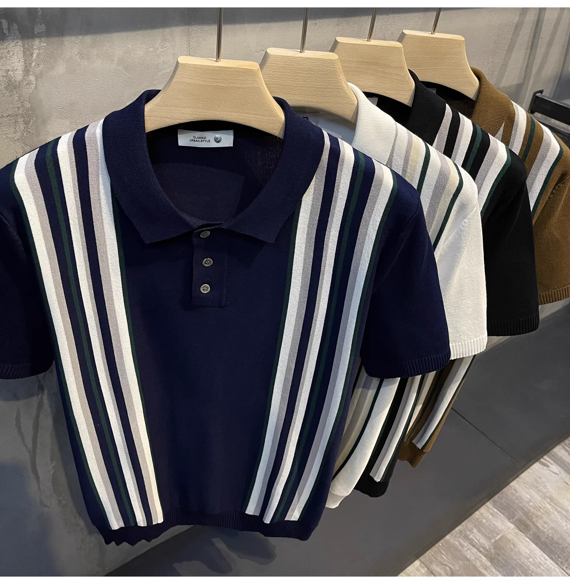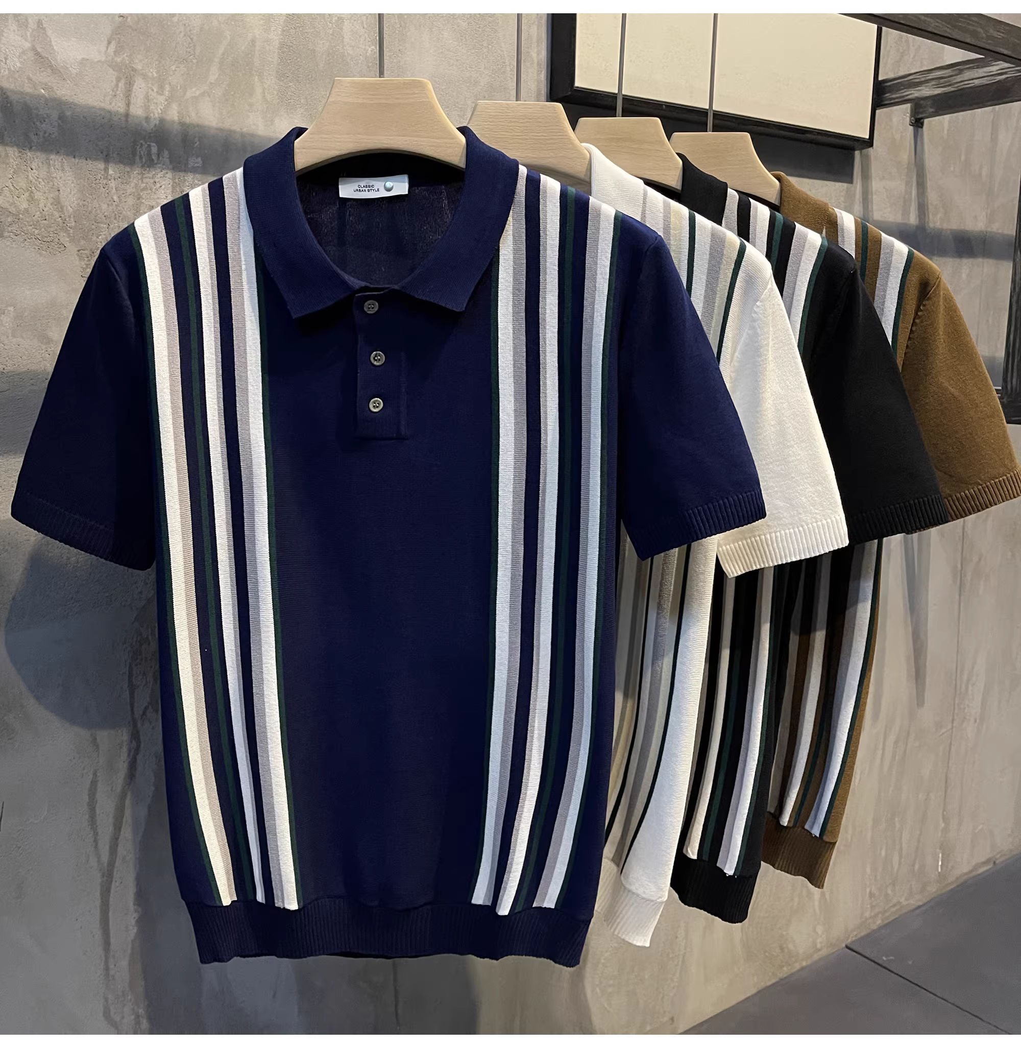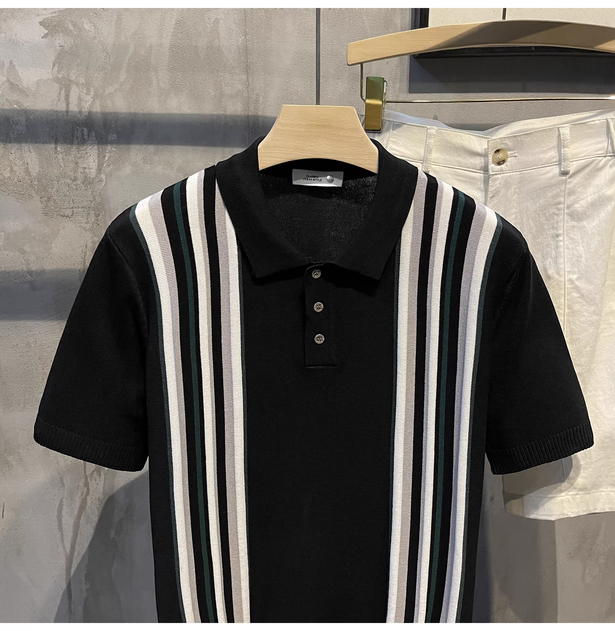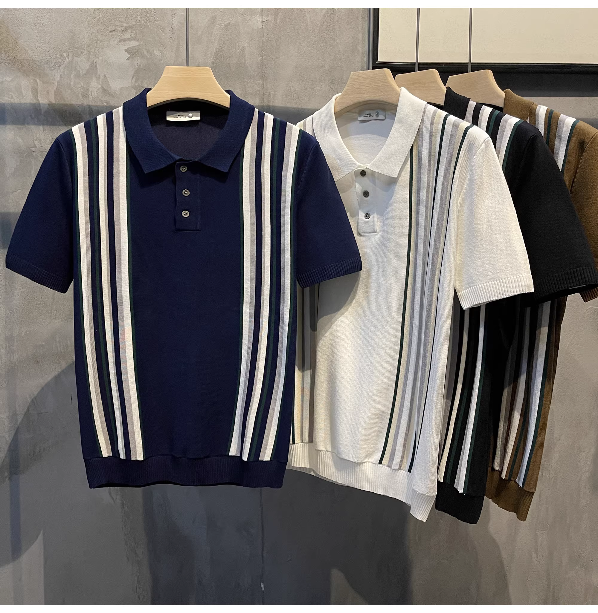- Áo sơ mi dệt kim ngắn tay kiểu Anh trưởng thành LUUD, phối màu theo phong cách retro, sọc dọc, thời thượng, nam tính, hơi rộng, kiểu POLO.
