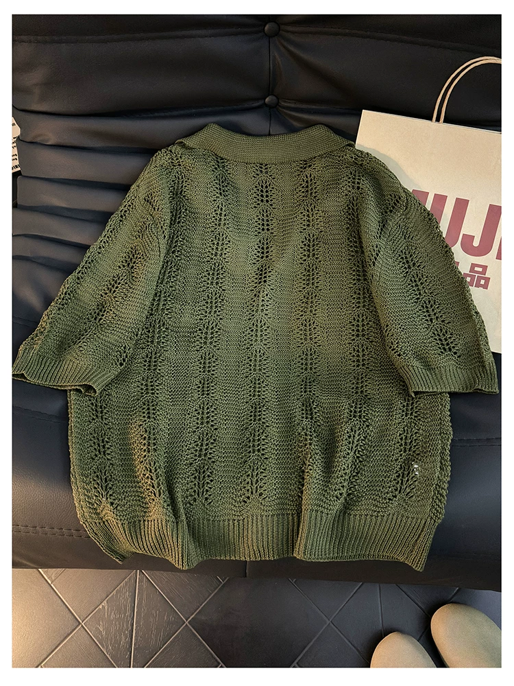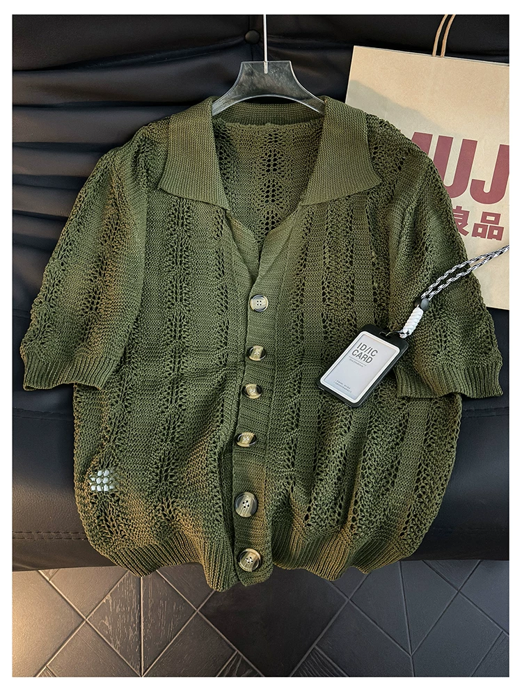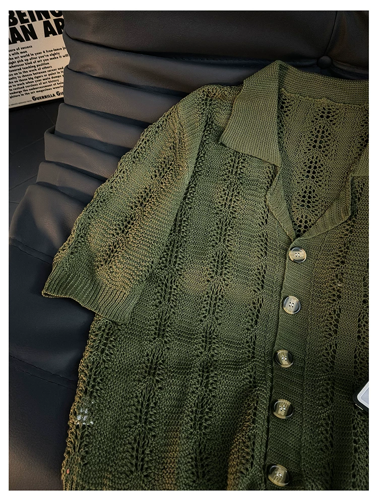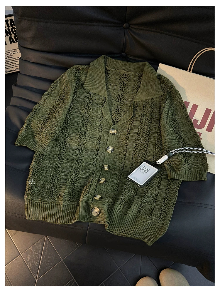 - Áo sơ mi dệt kim ngắn tay thoáng khí mùa hè dành cho nam, áo cardigan dáng rộng thương hiệu thời thượng, áo thun nửa tay phong cách Mỹ.