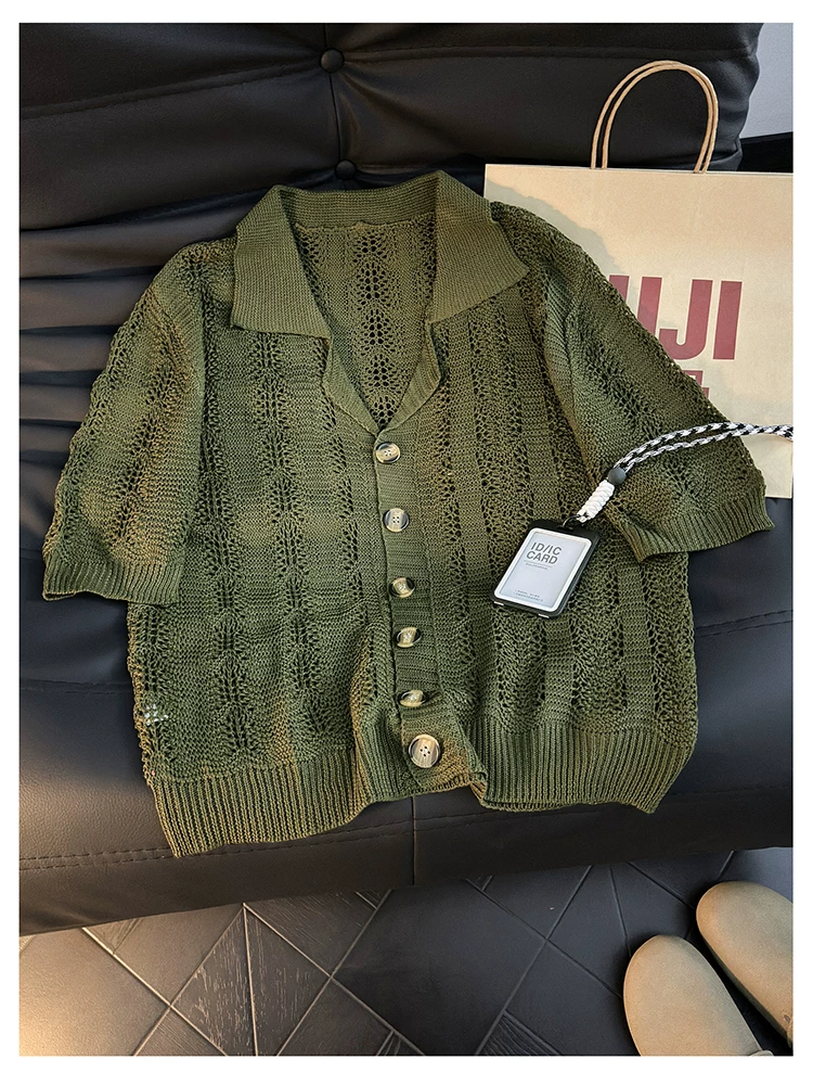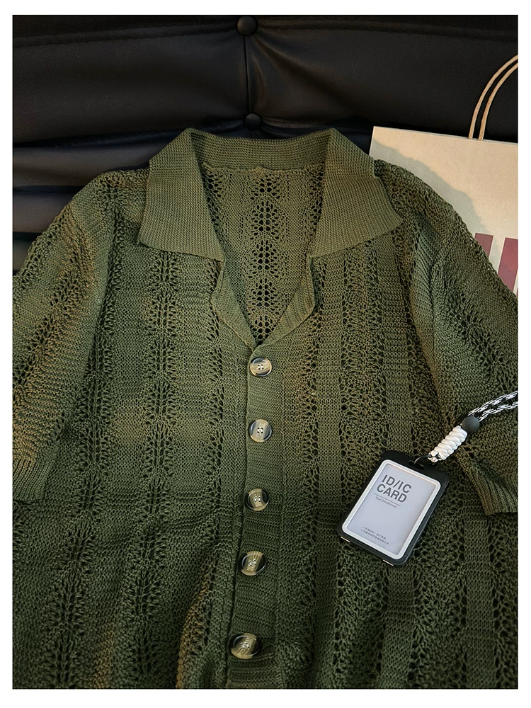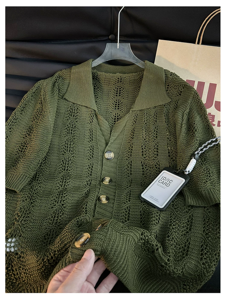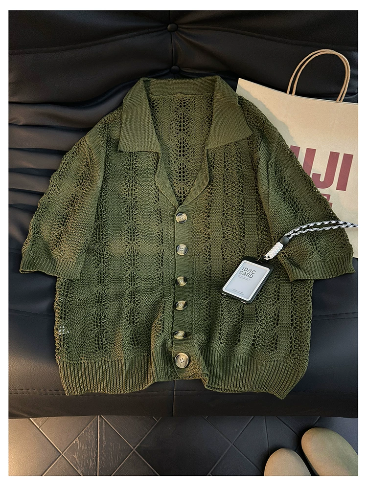 Áo sơ mi dệt kim ngắn tay thoáng khí mùa hè dành cho nam, áo cardigan dáng rộng thương hiệu thời thượng, áo thun nửa tay phong cách Mỹ.